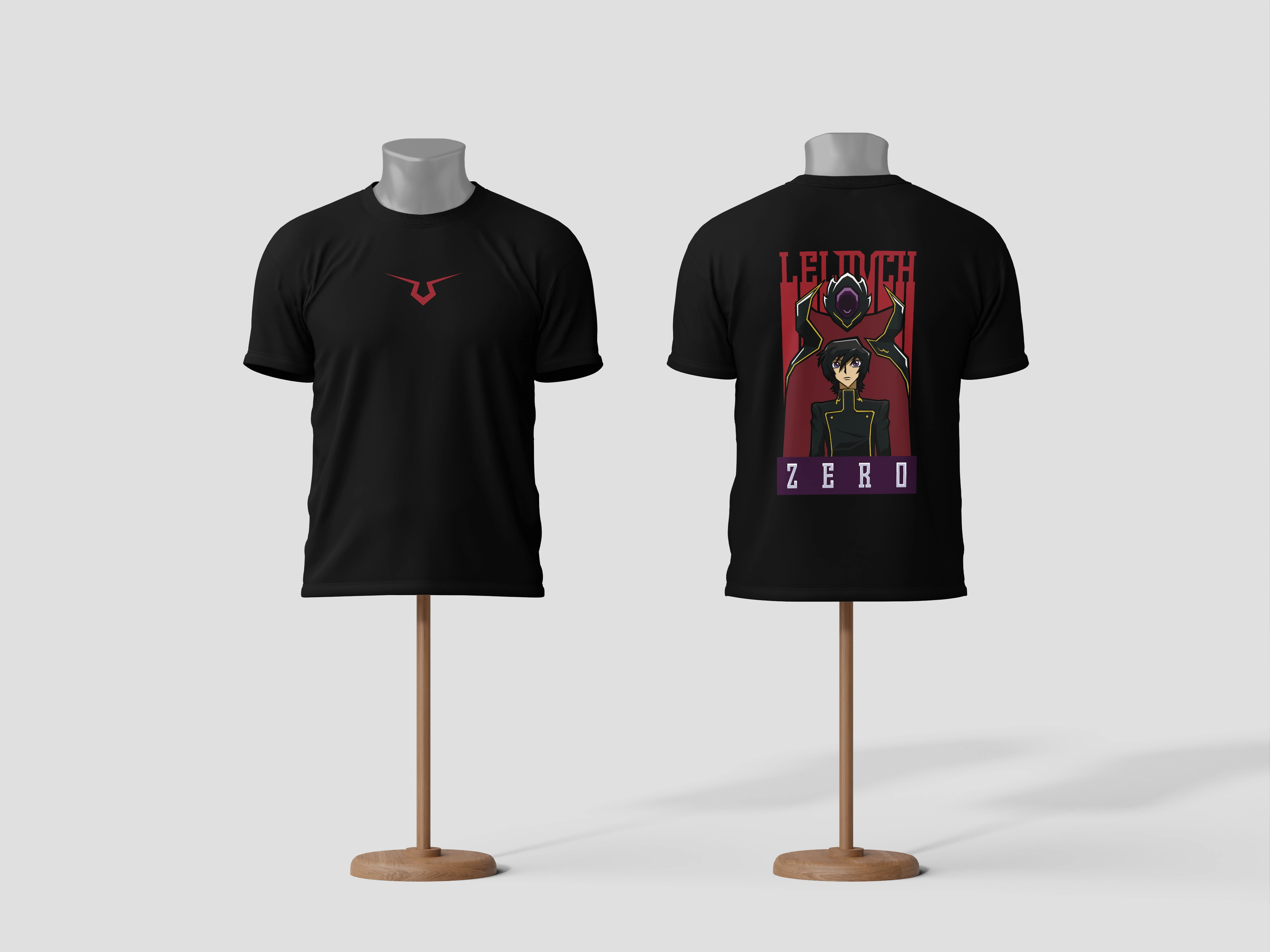 A t-shirt design with fanart of Lelouch vi Britania/Zero from code geass.