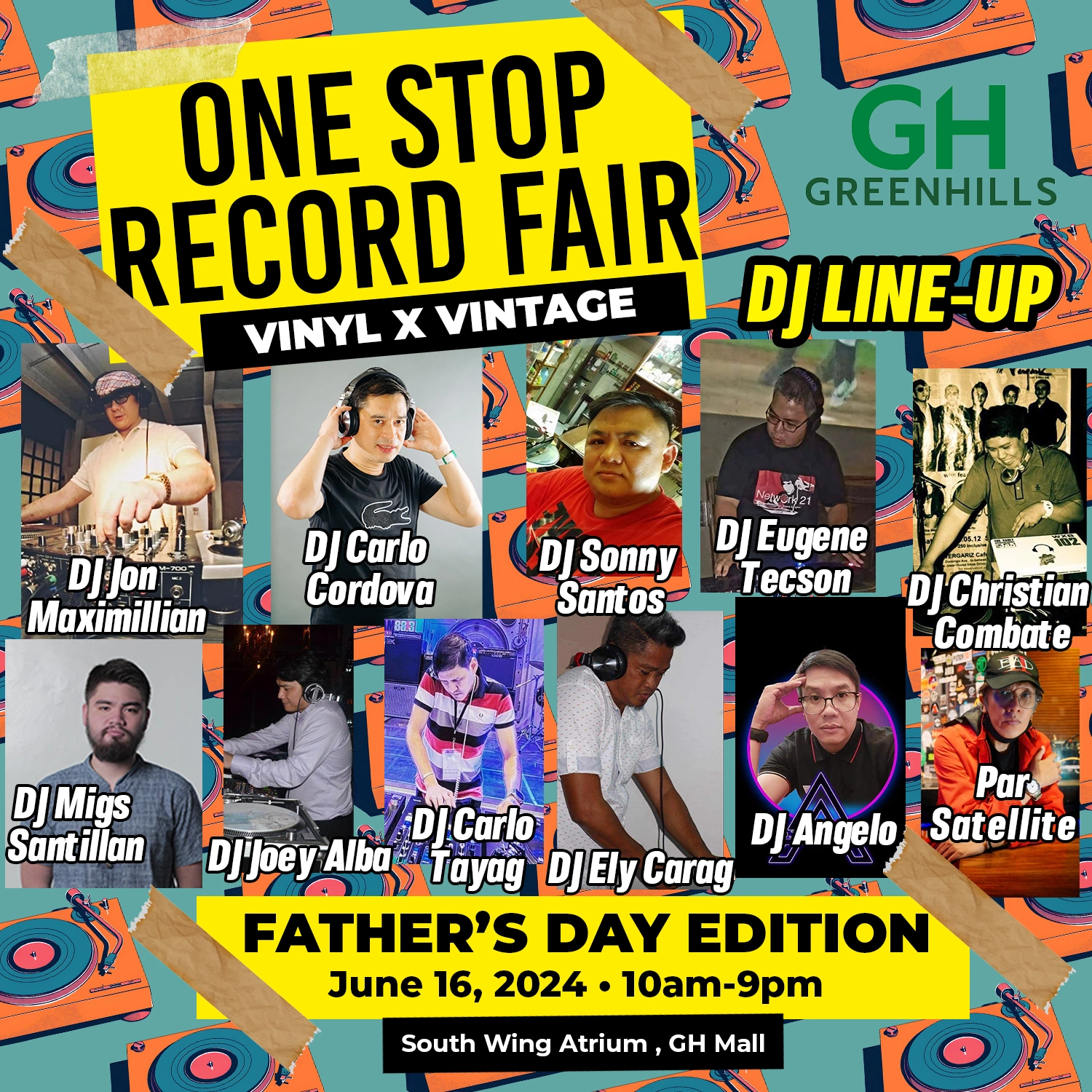 The One Stop Record Fair: Father's Day Edition, held at Greenhills Mall, features 30 sellers offering vinyl records and vintage items. Celebrating Father's Day,