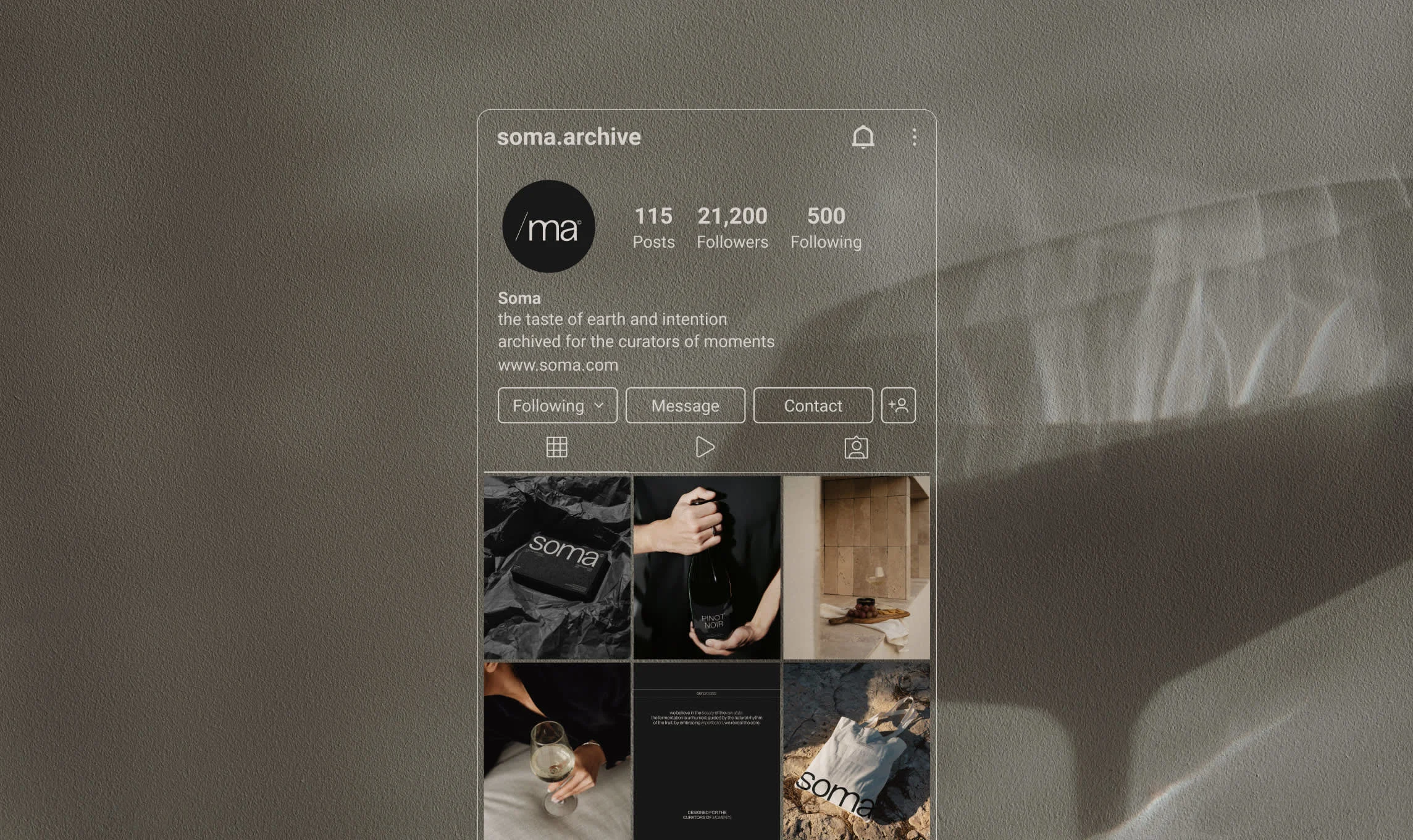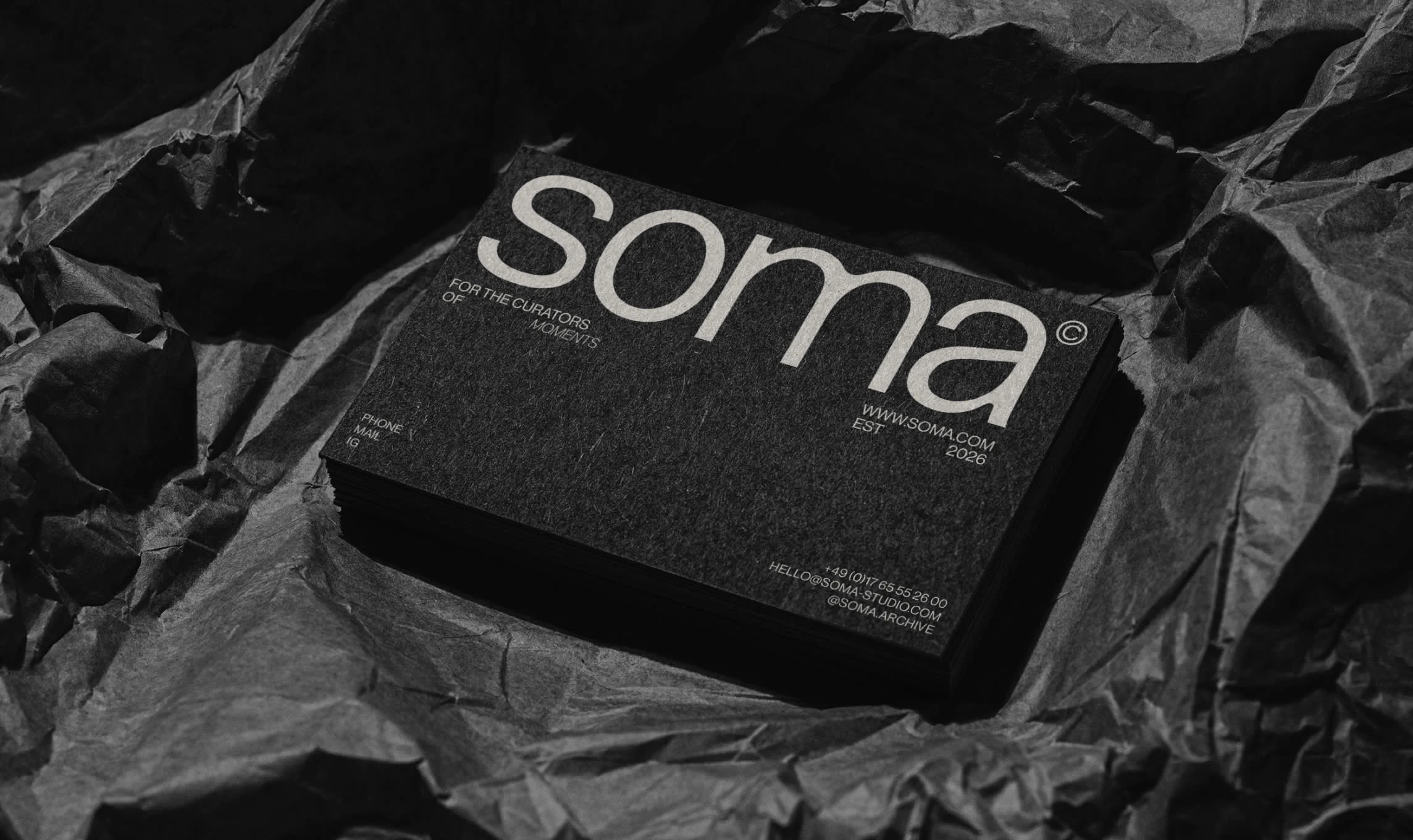SOMA is a contemporary vineyard that treats winemaking as a form of slow, architectural craft. The challenge was to move away from traditional, ornate wine branding and instead create a visual language that feels unhurried. The objective was to appeal to the curators of moments — individuals who value the raw substance of the earth and the quiet power of a crafted product over loud marketing.