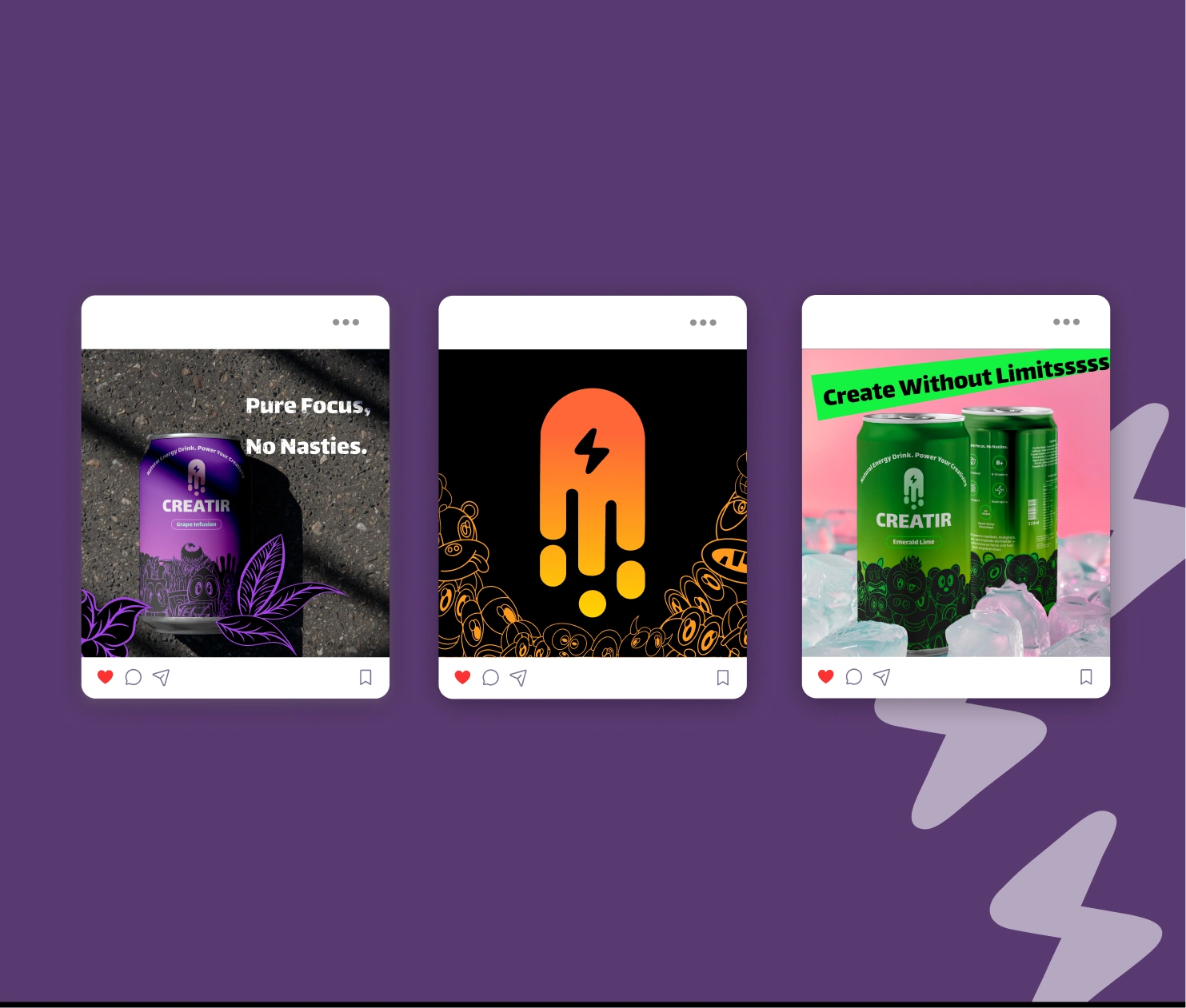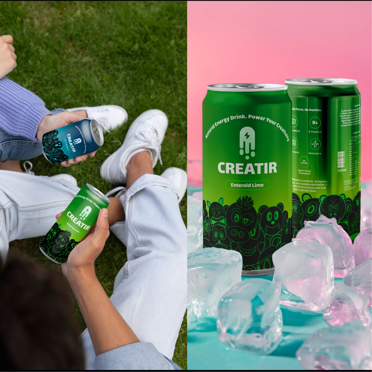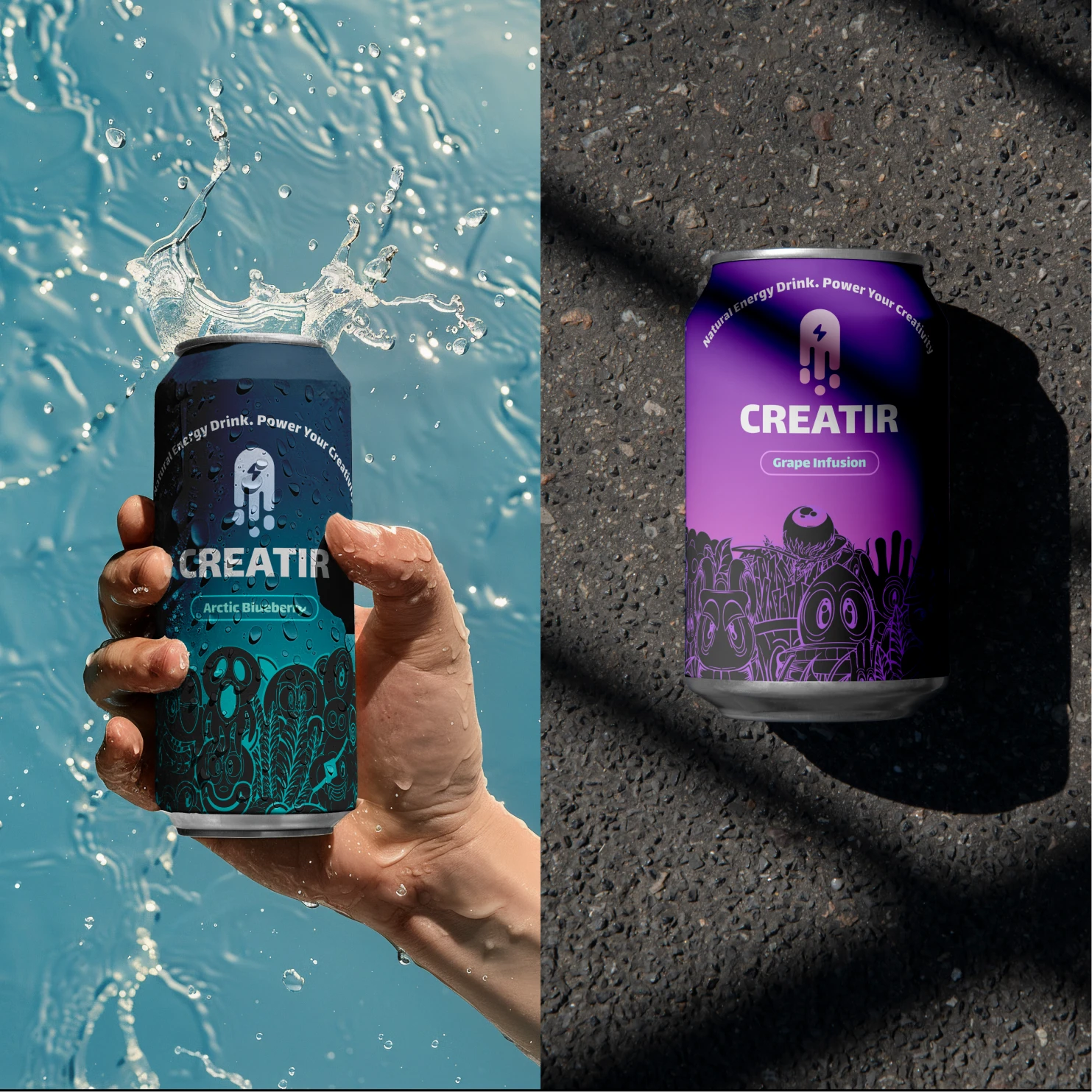 Creatir needed a distinctive brand that speaks to creatives—fresh, energetic, and original—delivered within a strict 10‑hour challenge. The identity had to stand out on shelf and on social, with a tight, cohesive system across logo, can design, and promo.