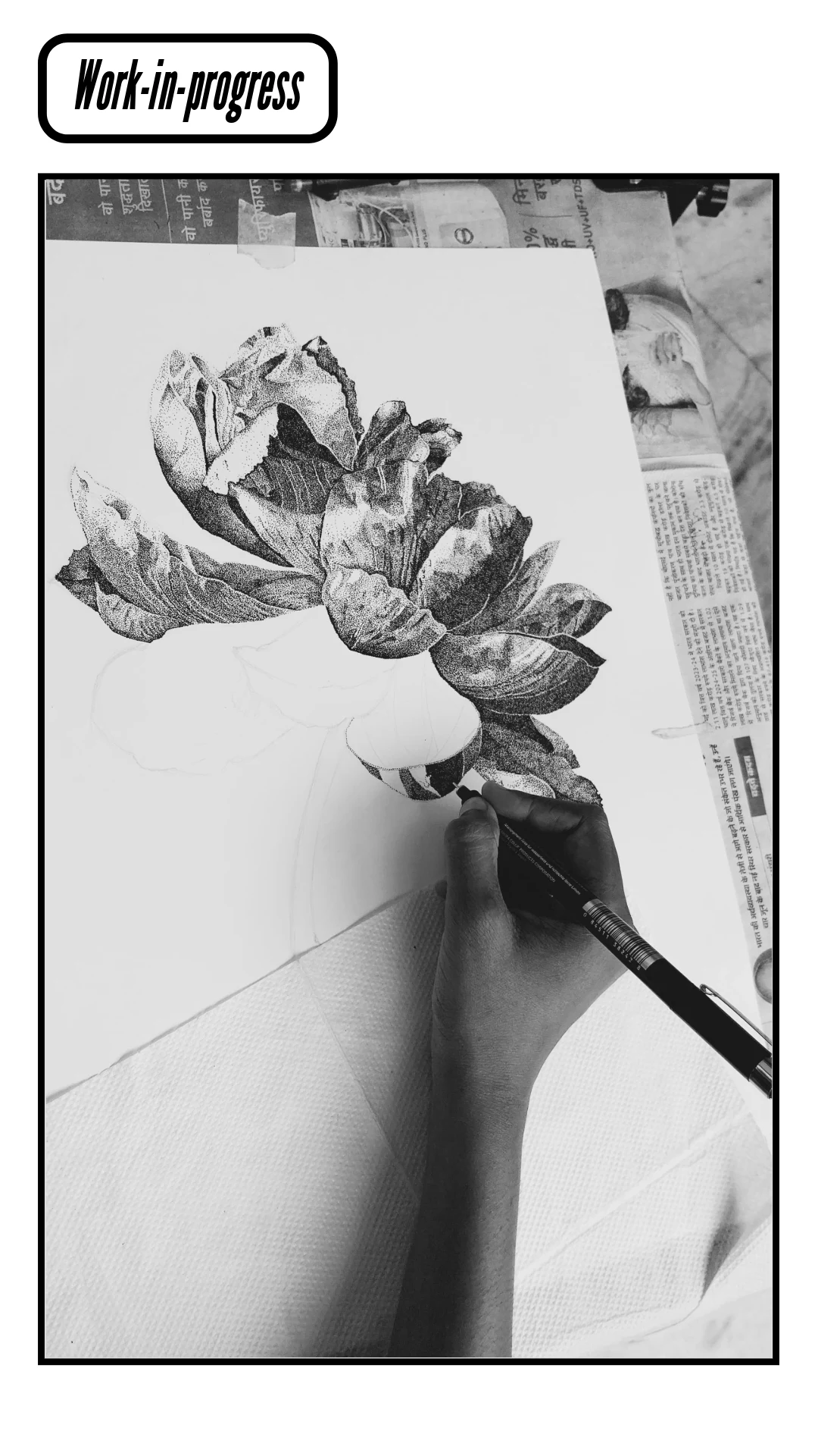 Hyper-detailed stippling (peony- love, honor, and prosperity) Suitable For: Print & digital branding, Packaging, Book & cover illustrations, Wallpaper, Textiles