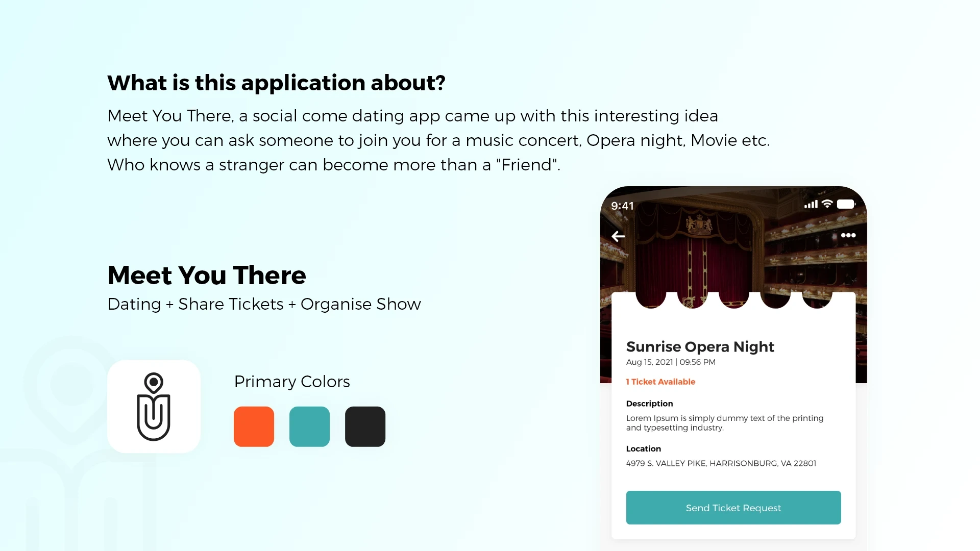 Meet You There, a social come dating app came up with this interesting idea where you can ask someone to join you for a music concert, Opera night, Movie etc.