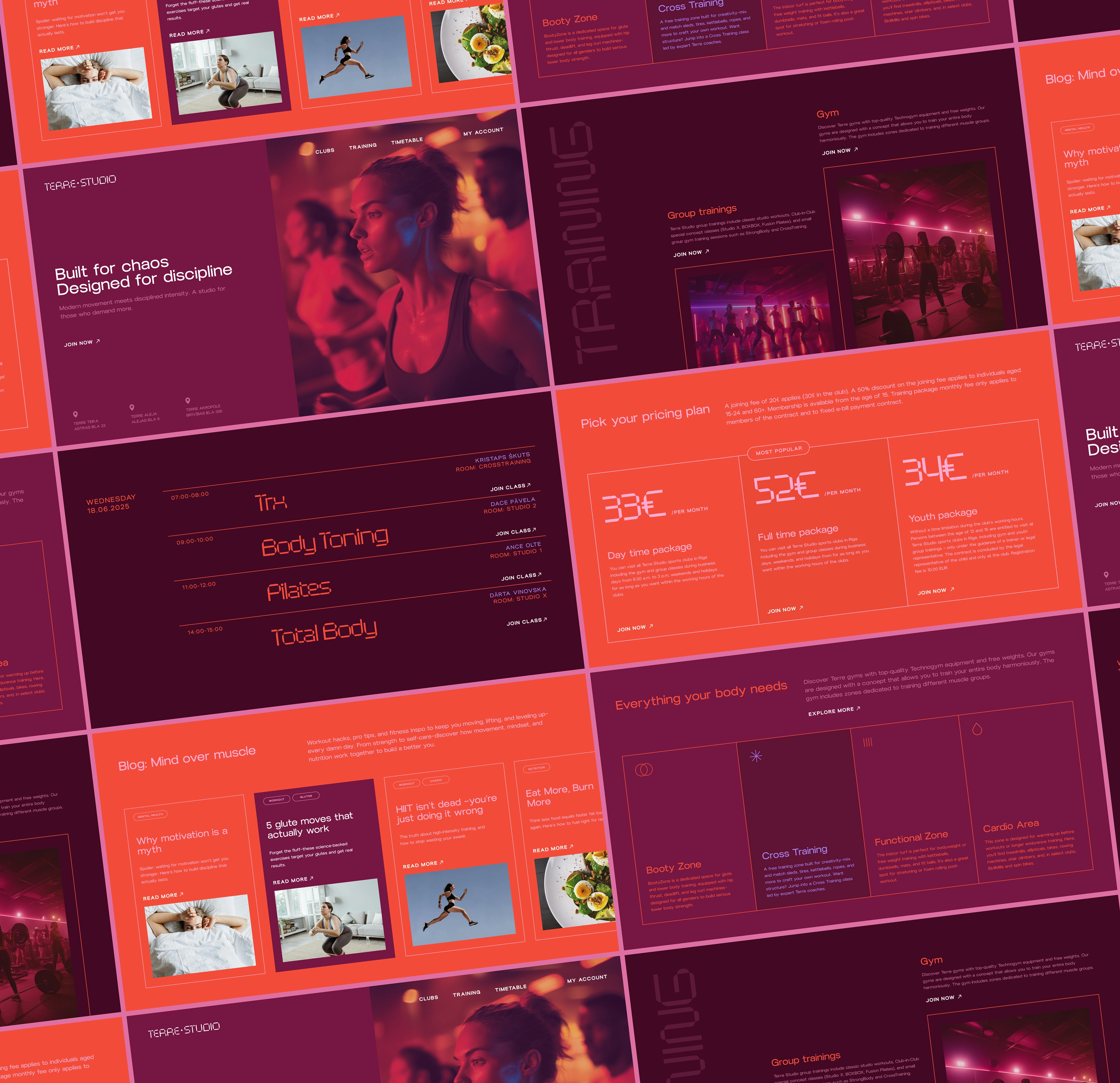 Terre Studio is a new fitness club based in Riga, Latvia — designed for those who value strength, movement, and modern aesthetics in equal measure. Unlike traditional gyms, Terre Studio aims to build a fitness culture rooted in empowerment, self-discipline, and elevated design. It’s more than a place to work out — it’s a space to show up for yourself. To reflect this bold positioning, Terre Studio needed a brand identity that felt fresh, intentional, and aligned with its vision: minimal, urban, and unapologetically strong.