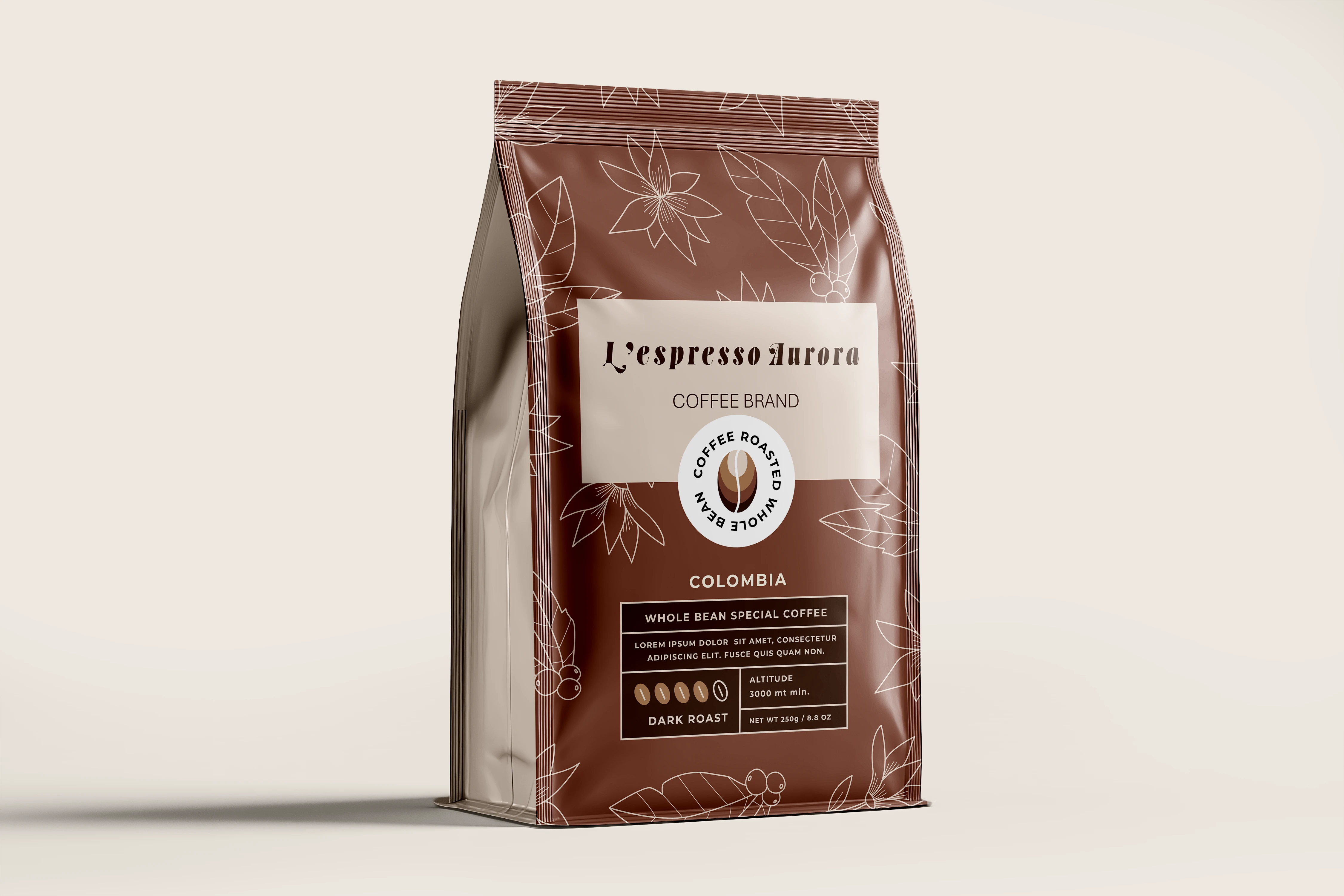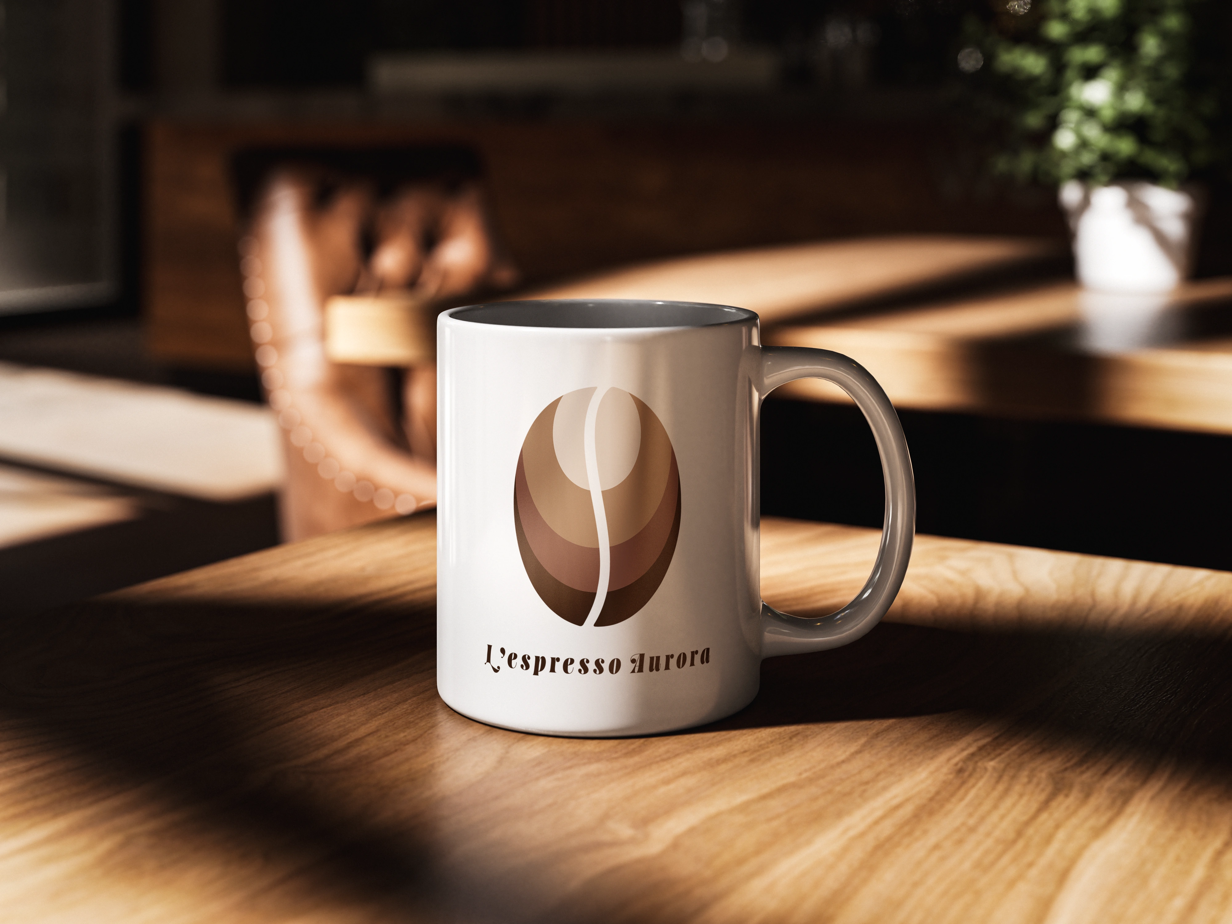 The logo communicates warmth, sophistication, and artisan quality, giving L’espresso Aurora a memorable, premium brand presence.