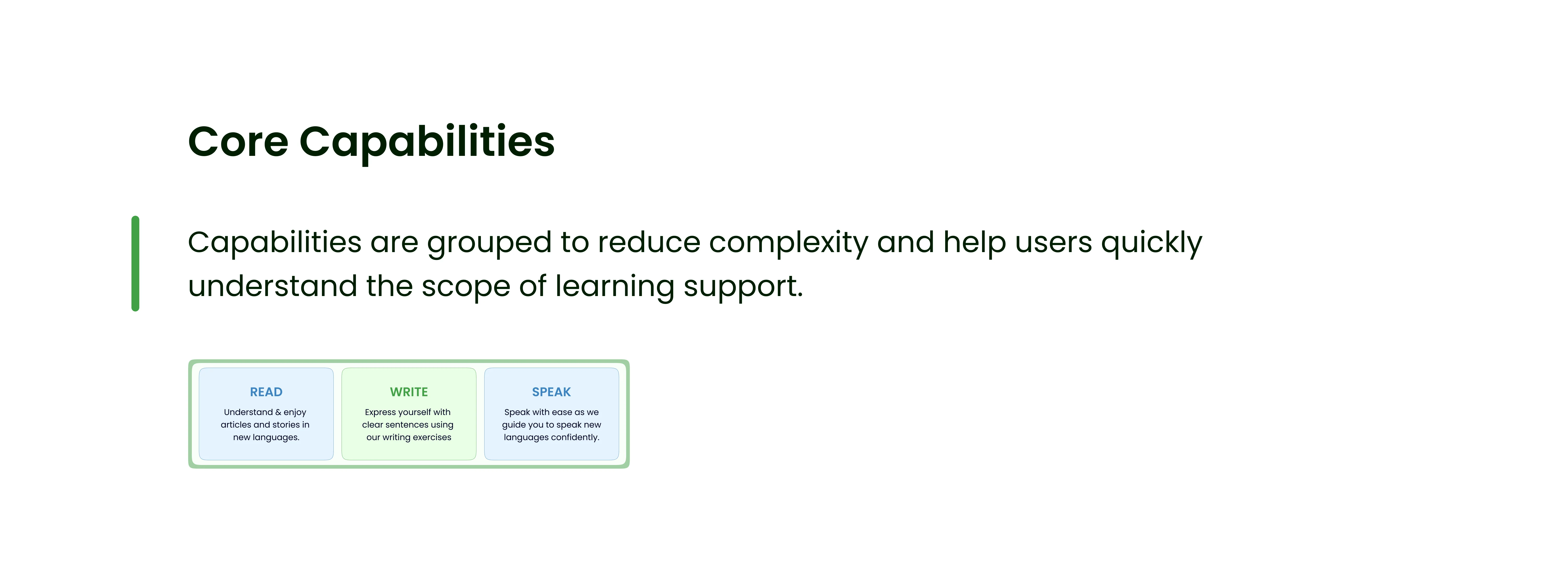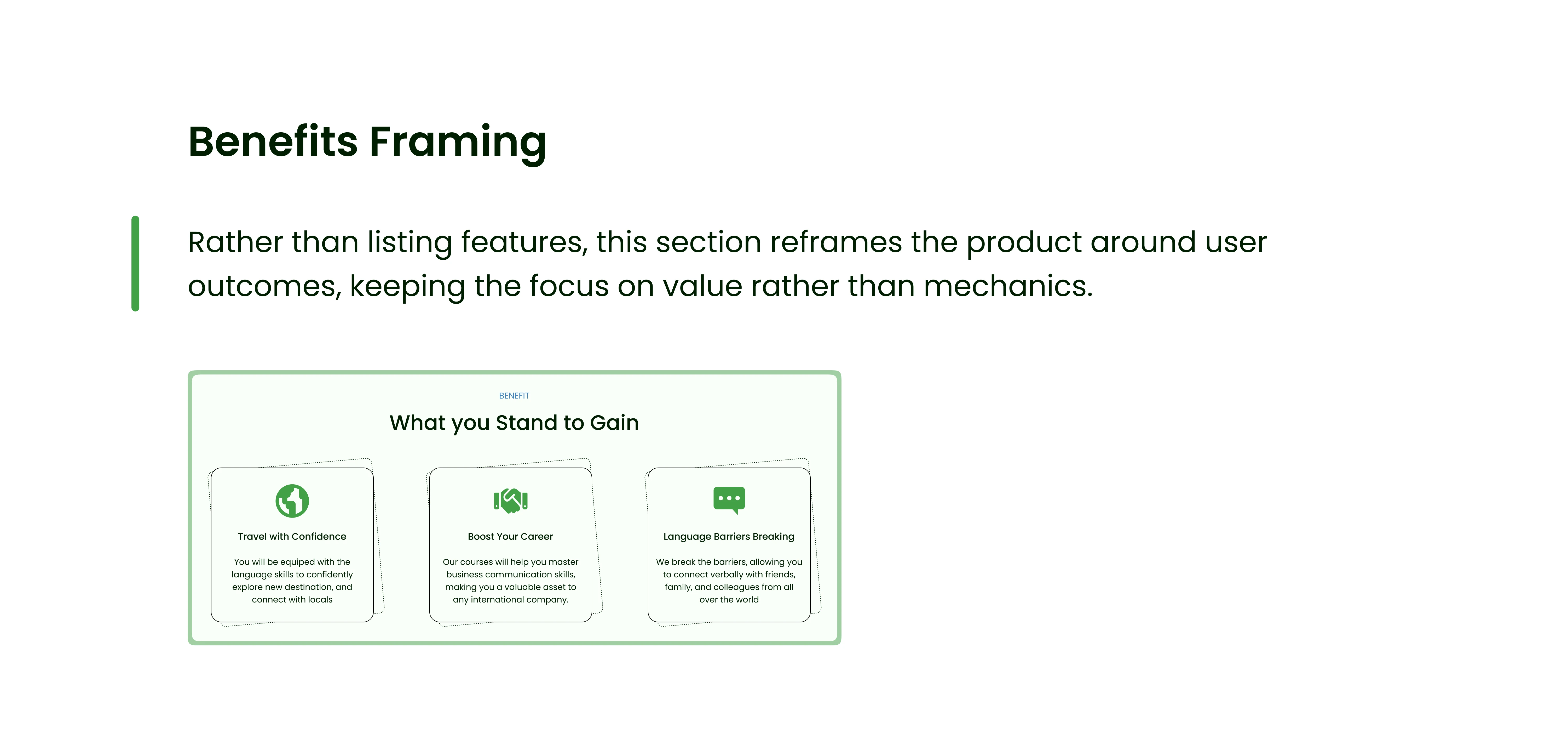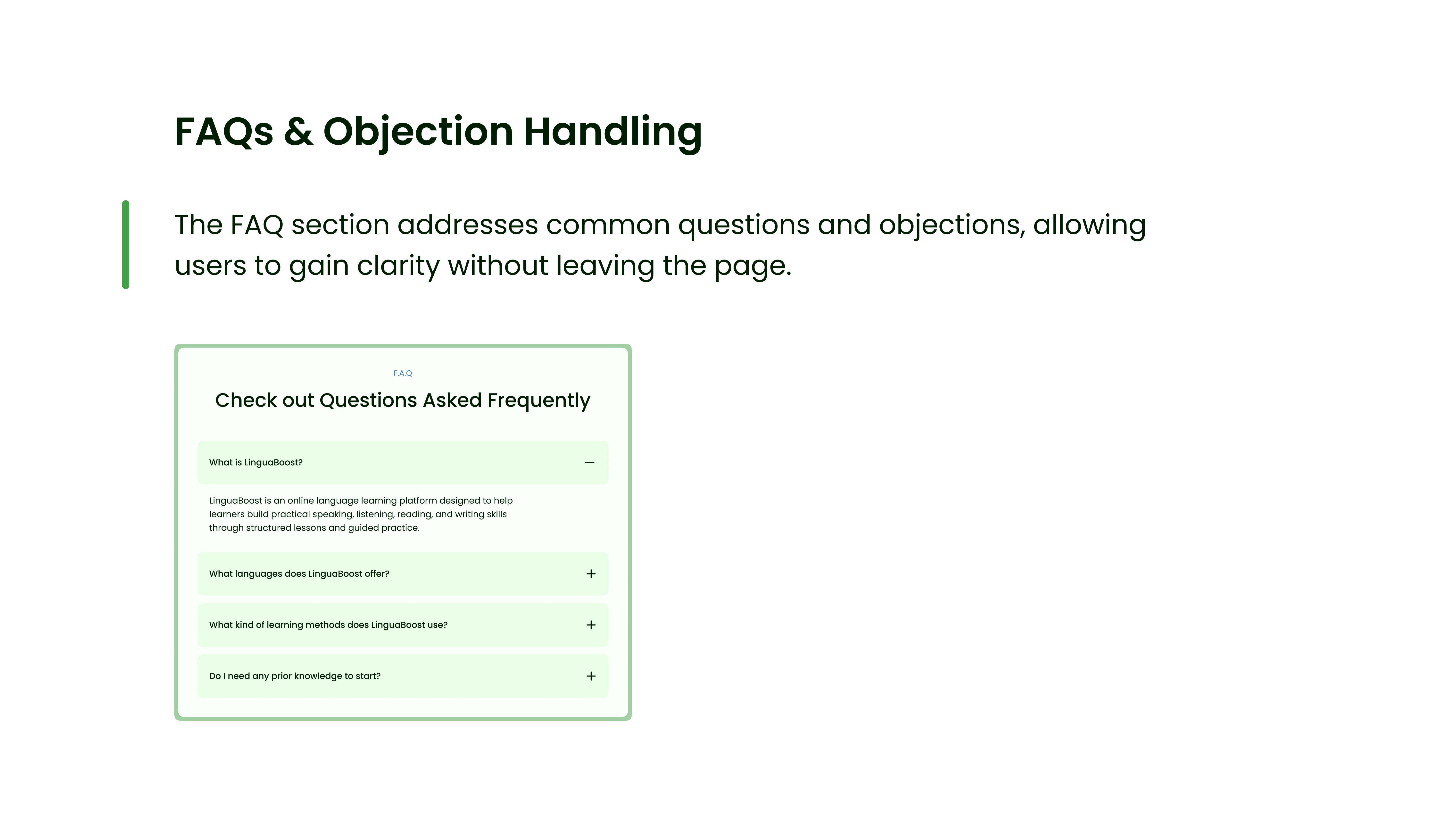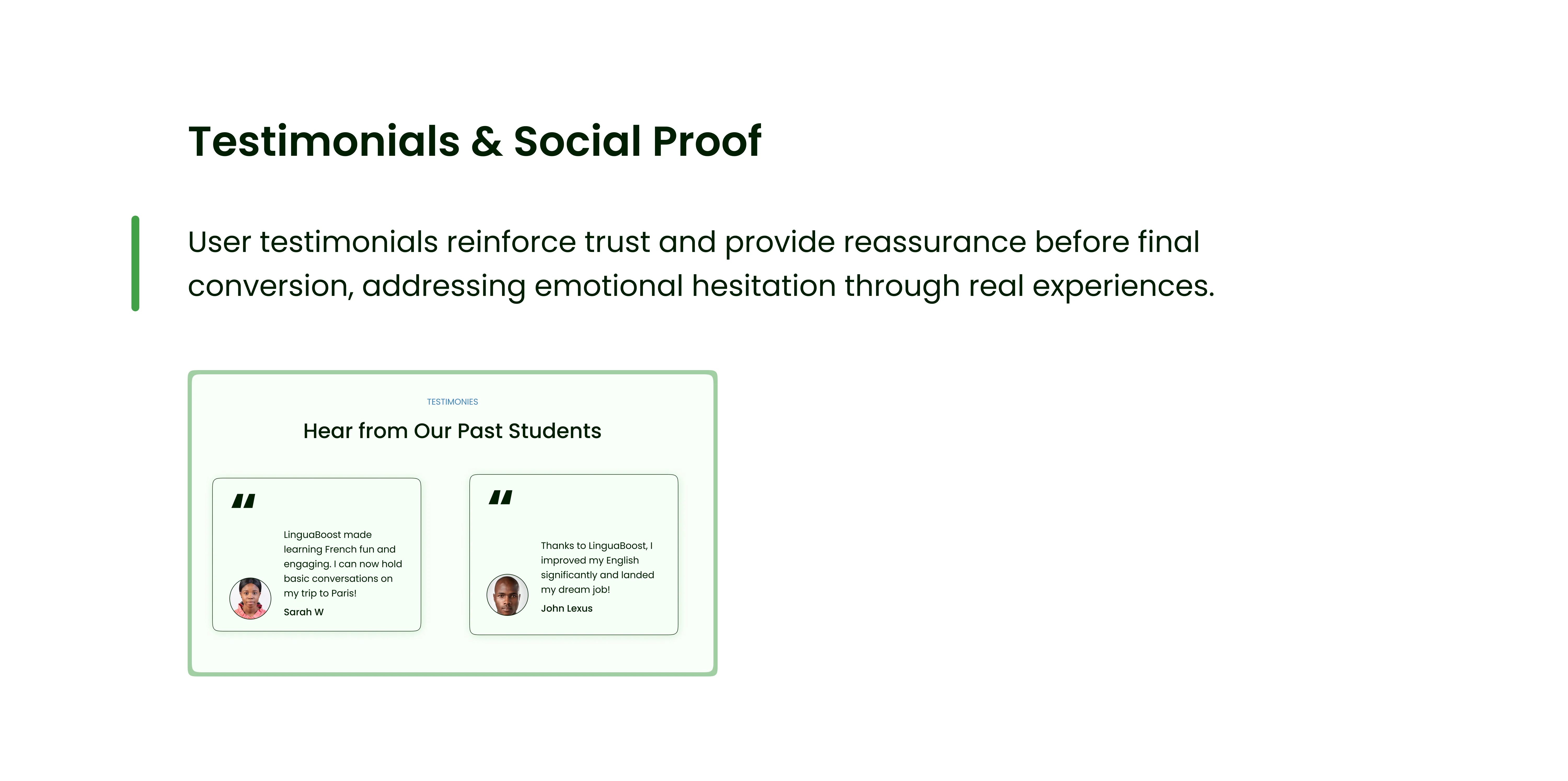 A UX-driven landing page design for a concept language-learning SaaS, focused on clarity, credibility, and free-trial conversion across desktop and mobile.
