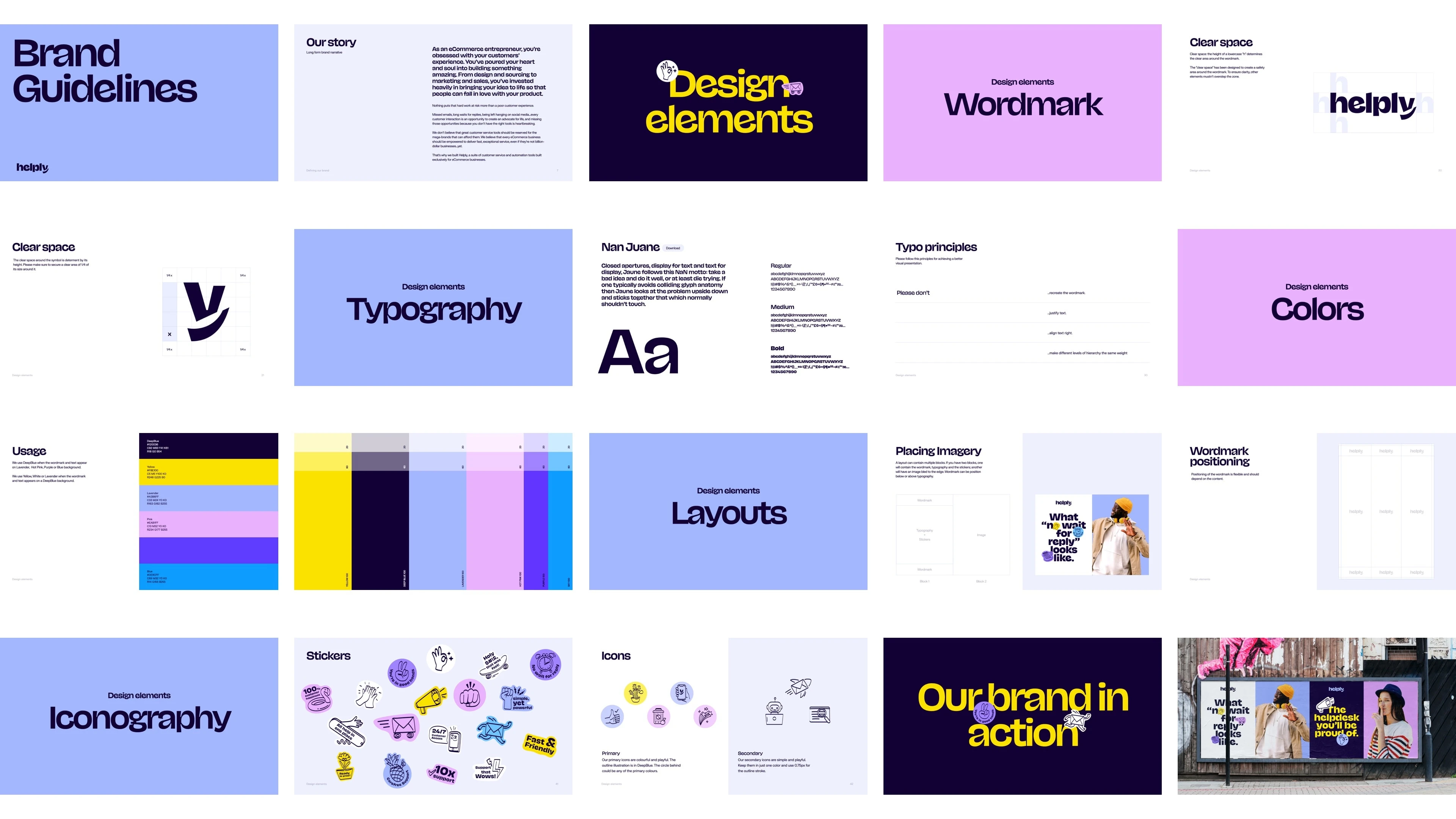 A couple of years ago, Groove, a help desk SaaS company, approached me and my team with an exciting opportunity. They were considering a brand evolution for their product, intending to launch it under a new name: Helply. Although the rebranding was ultimately not implemented, I had the privilege of crafting a comprehensive visual identity for Helply that I' still find relevant to showcase in my portfolio.