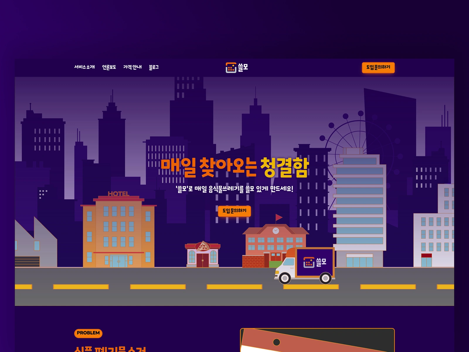 The SSLMO website was designed as the digital hub for a food waste collection service, integrating social value with practical usability. Centered around warm, story-driven illustrations and a friendly color palette, the site visually expresses the brand’s approachable and optimistic personality. Key service information is structured with clear visual rhythm for easy navigation, while consistent integration from brand identity to UI design reinforces a cohesive and recognizable experience.