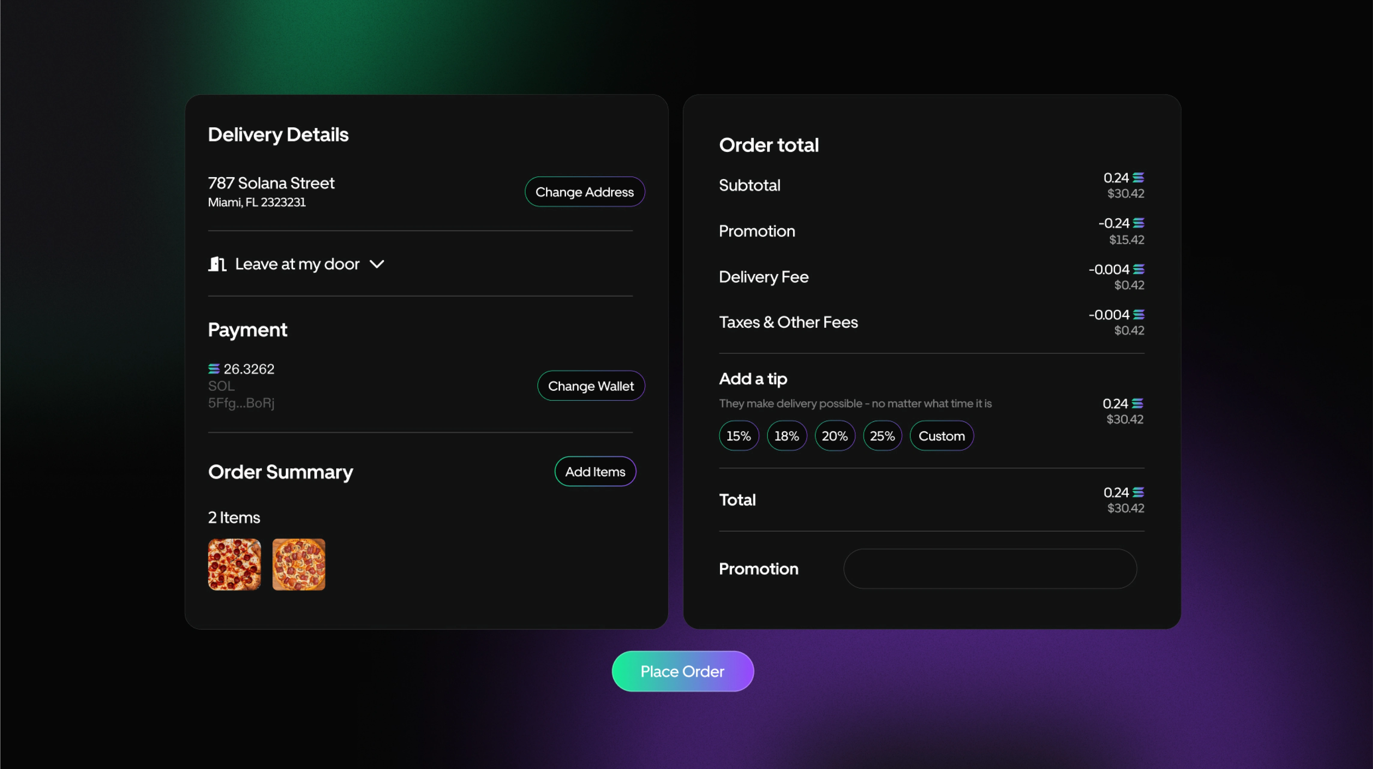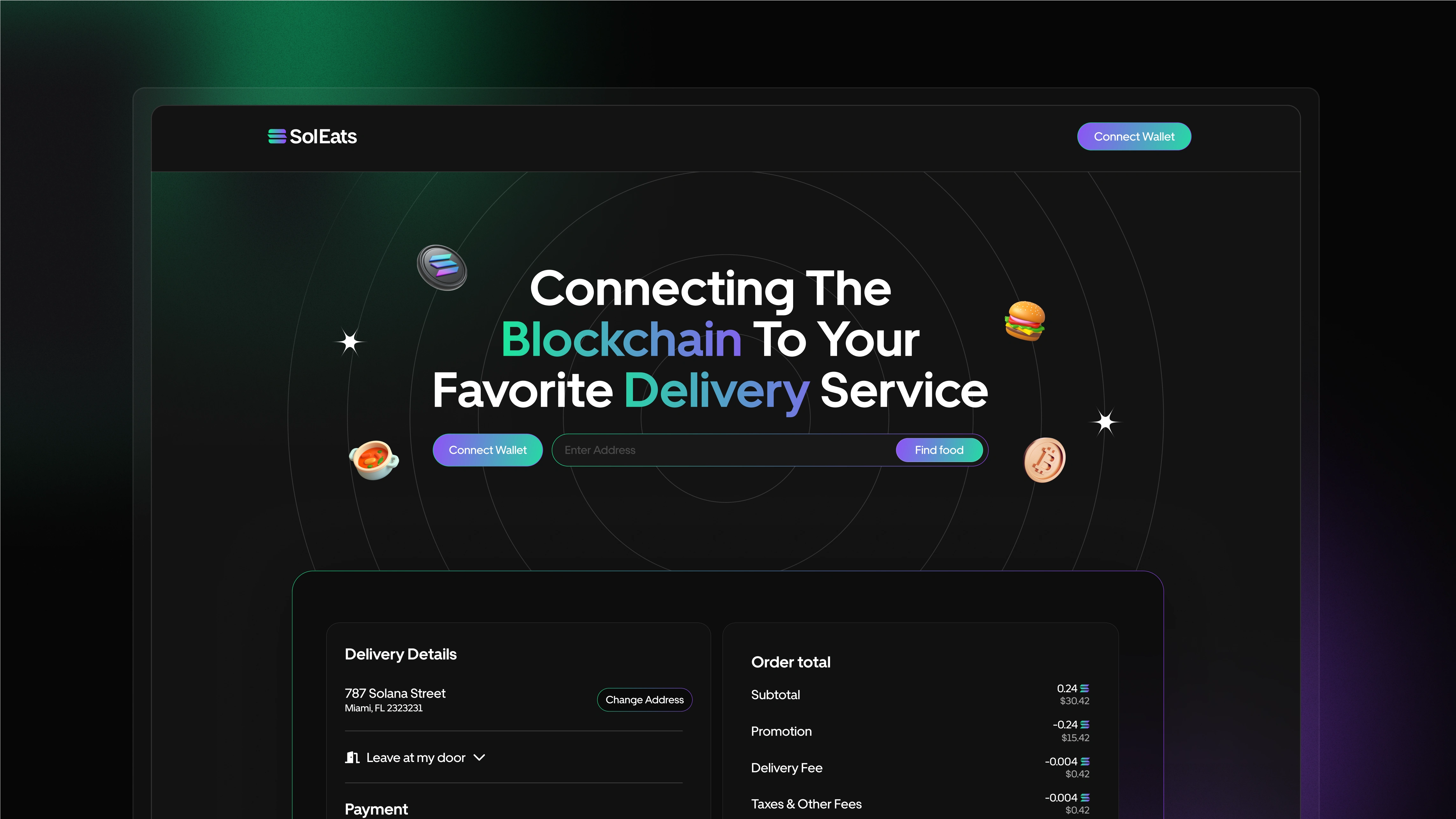 Sol Eats is a decentralized food delivery platform built on the Solana blockchain, aiming to revolutionize how local food gets to customers. By eliminating traditional third-party delivery apps and their high fees, Sol Eats empowers restaurants to keep more of their profits while giving users a faster, cheaper, and more transparent ordering experience. With on-chain payments, real-time tracking, and a growing ecosystem of local partners, Sol Eats is creating a more community-driven, efficient way to order food—one that puts power back into the hands of small businesses and their customers.