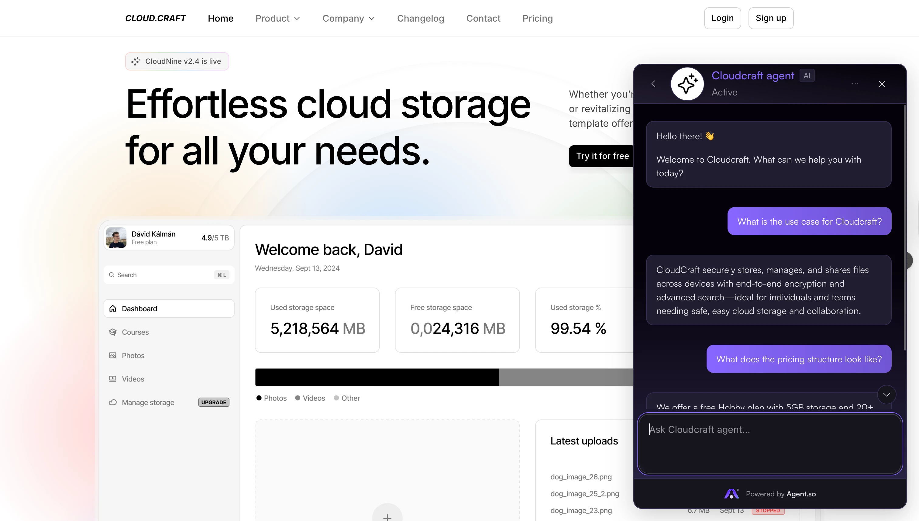 Showcase project demonstrating an AI agent built with agent.so and trained on custom knowledge. The agent answers user questions based on the provided data.