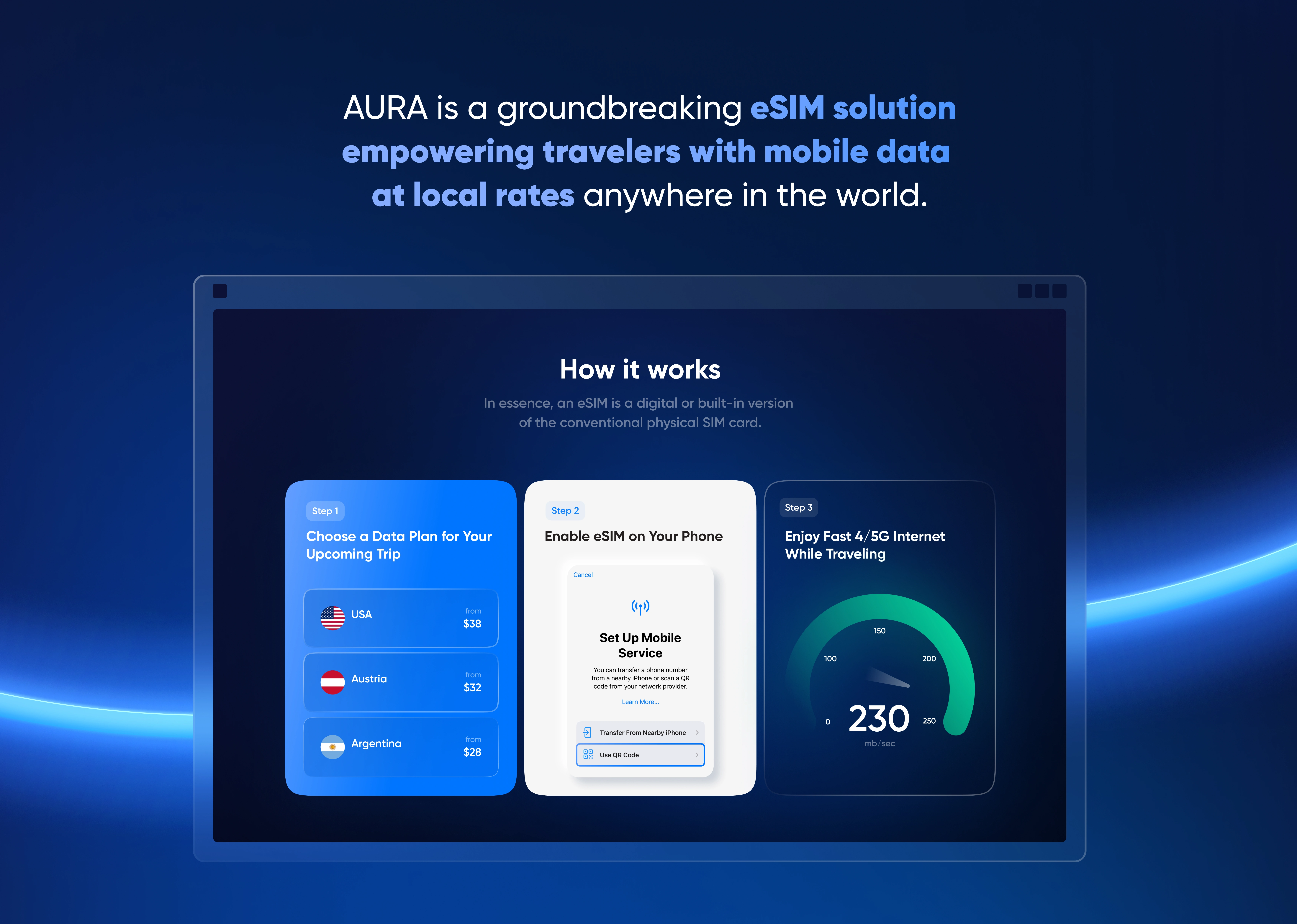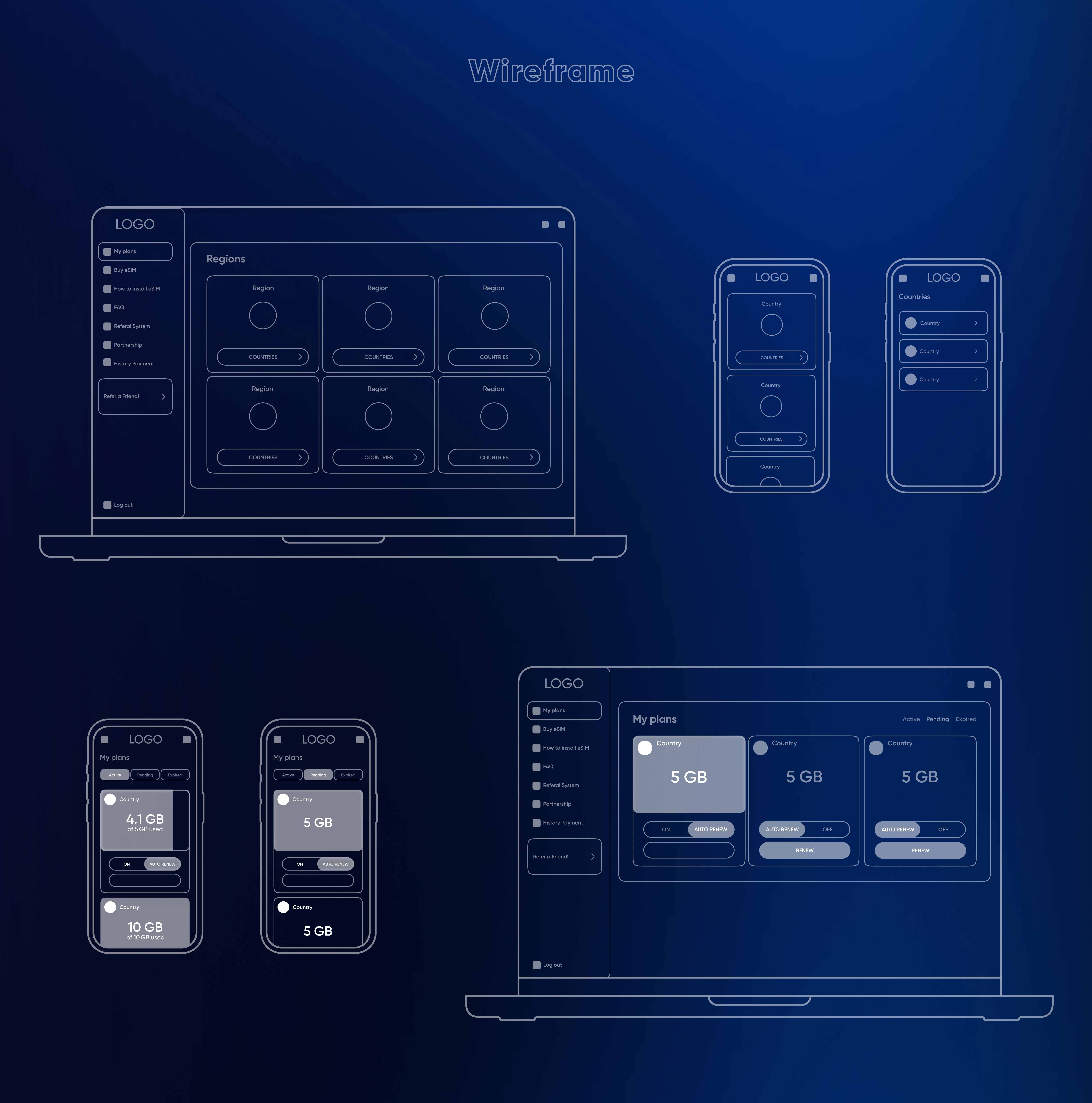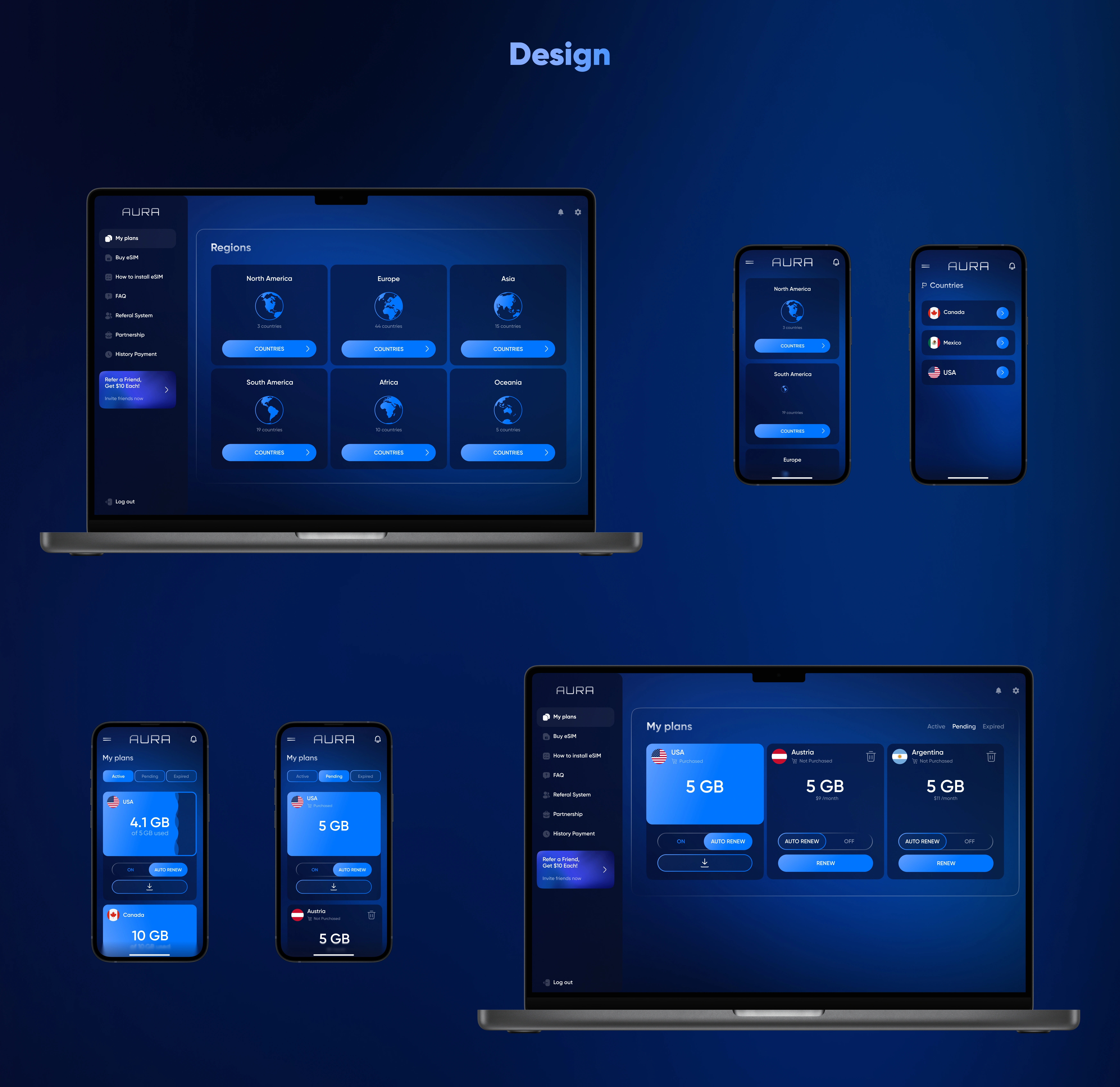 A UX/UI concept for an eSIM app. Outcome: An intuitive flow that simplifies the purchase & activation of travel data plans in just a few taps.