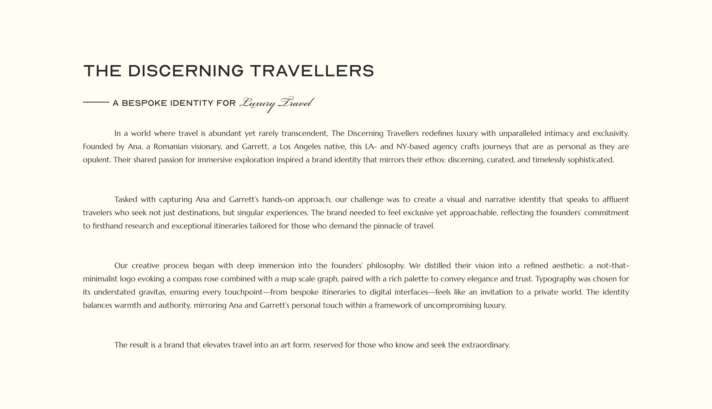 Travel can be abundant, yet rarely transcendent. The Discerning Travellers redefines luxury in travel - reserved for those who know and seek the extraordinary.