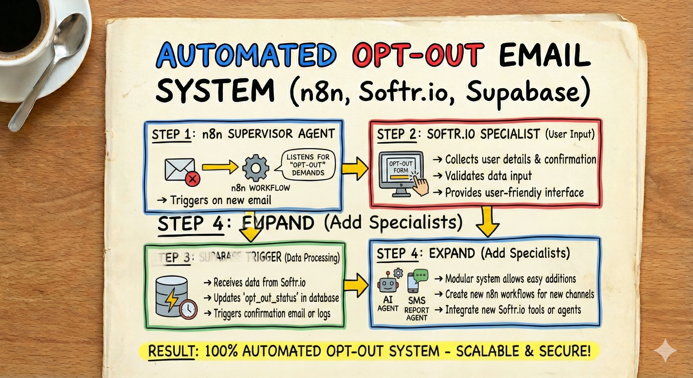 Built end-to-end automation processing 100K+ opt-out emails/year. LLM extracts customer data, classifies requests, and auto-replies — zero manual intervention.