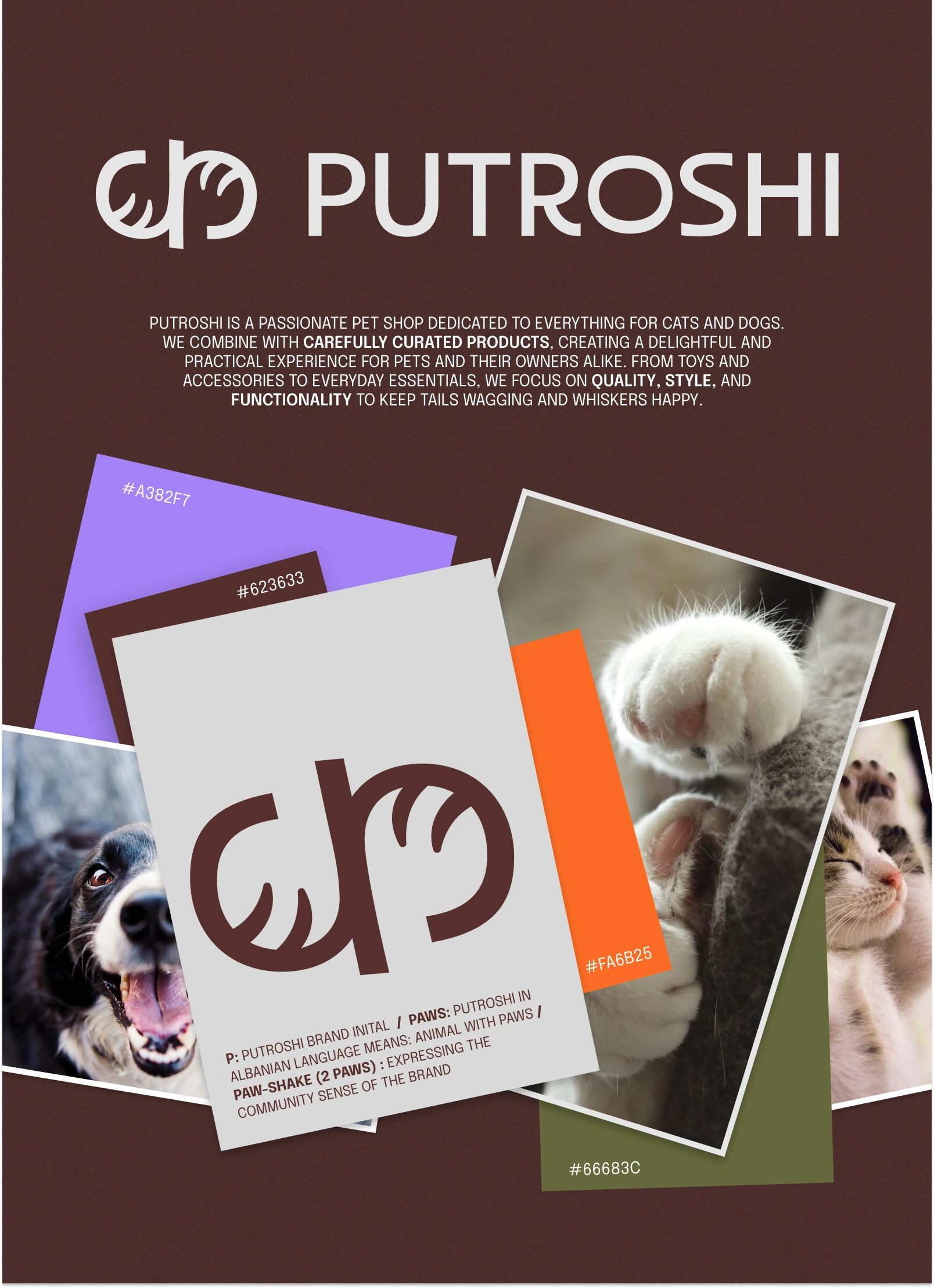 Putroshi is a local pet shop rooted in everyday care, trust, and human connection. More than a retail space, the shop wants to function as a meeting point for pet owners who value advice, familiarity, and a sense of belonging. The branding project aimed to translate this community spirit into a clear and authentic visual identity—one that feels real, approachable, and lived-in rather than overly polished or trend-driven.