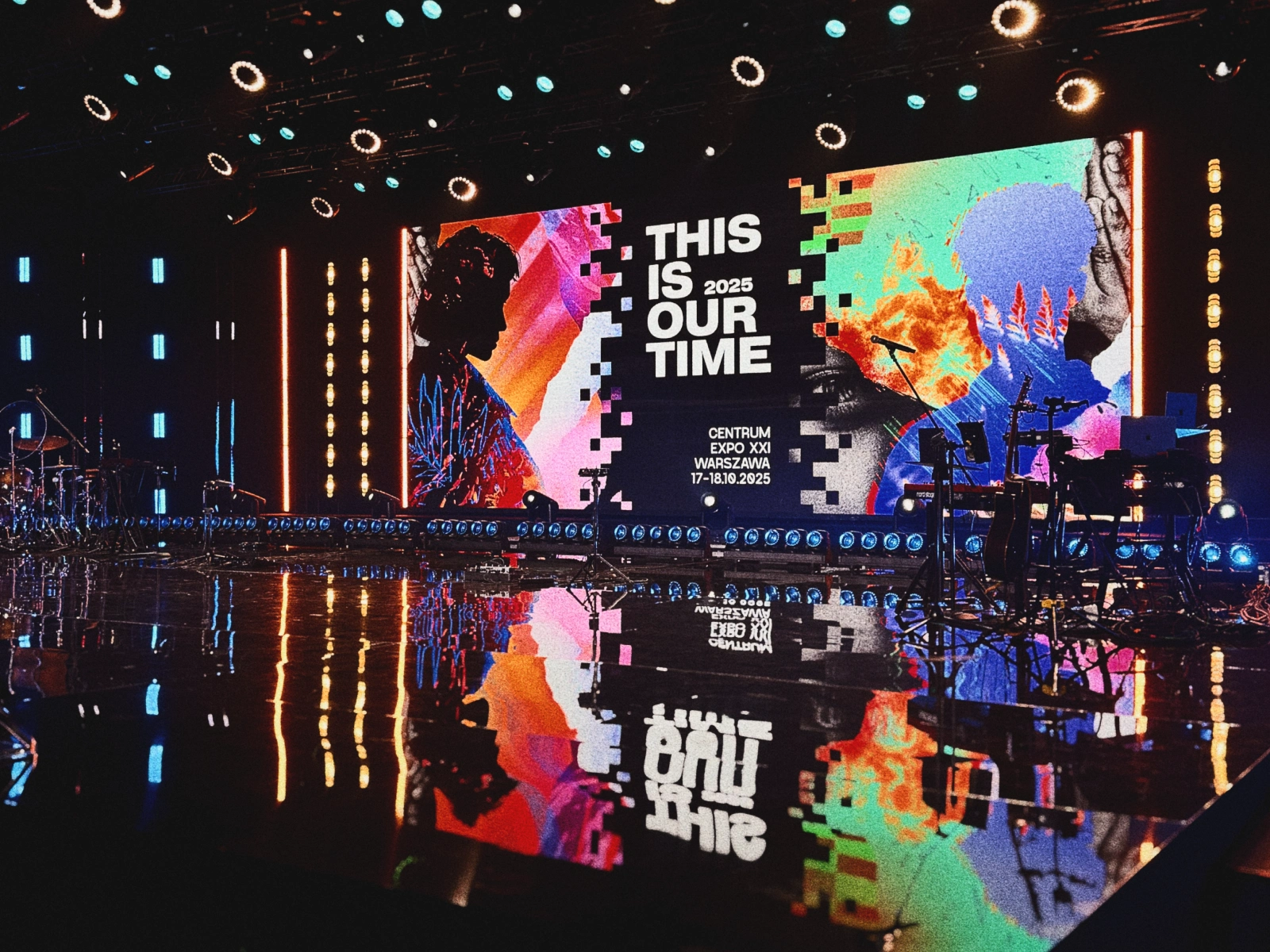 I developed a dynamic visual system built on high contrast. I anchored the identity in a series of vibrant, abstract illustrations to evoke energy and creativity. To guarantee readability, I balanced these artistic elements with a bold, black-and-white typographic layer. I bridged these two worlds using a custom pixel-transition effect, which allows the visuals to seamlessly morph between "artistic" and "informative" modes. The result is a flexible identity system that I designed to stand out in social media feeds and scale perfectly to large-format LED screens.