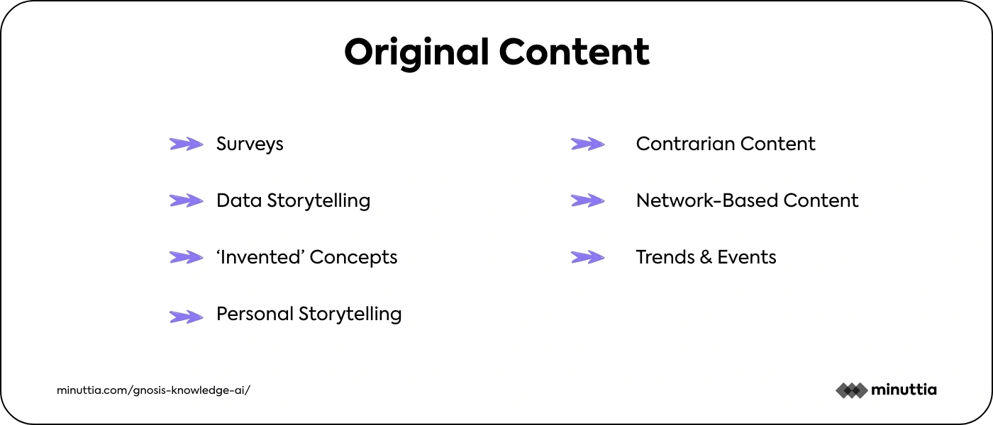 If AI is poised to replace humans in the kind of content that most agencies produce today, we also know what type of knowledge it doesn’t possess. There’s a clear implication: use our unique knowledge to create original content.