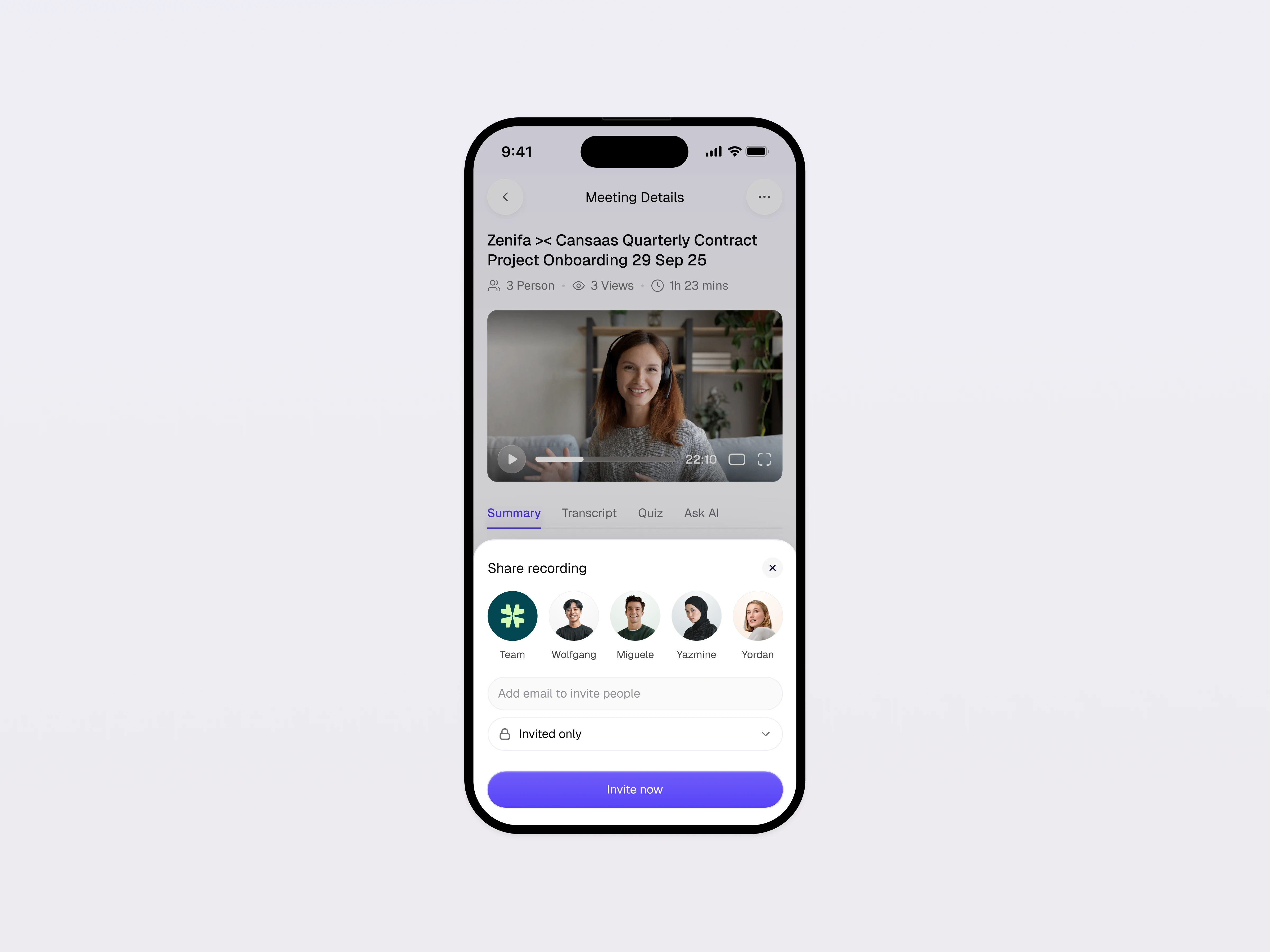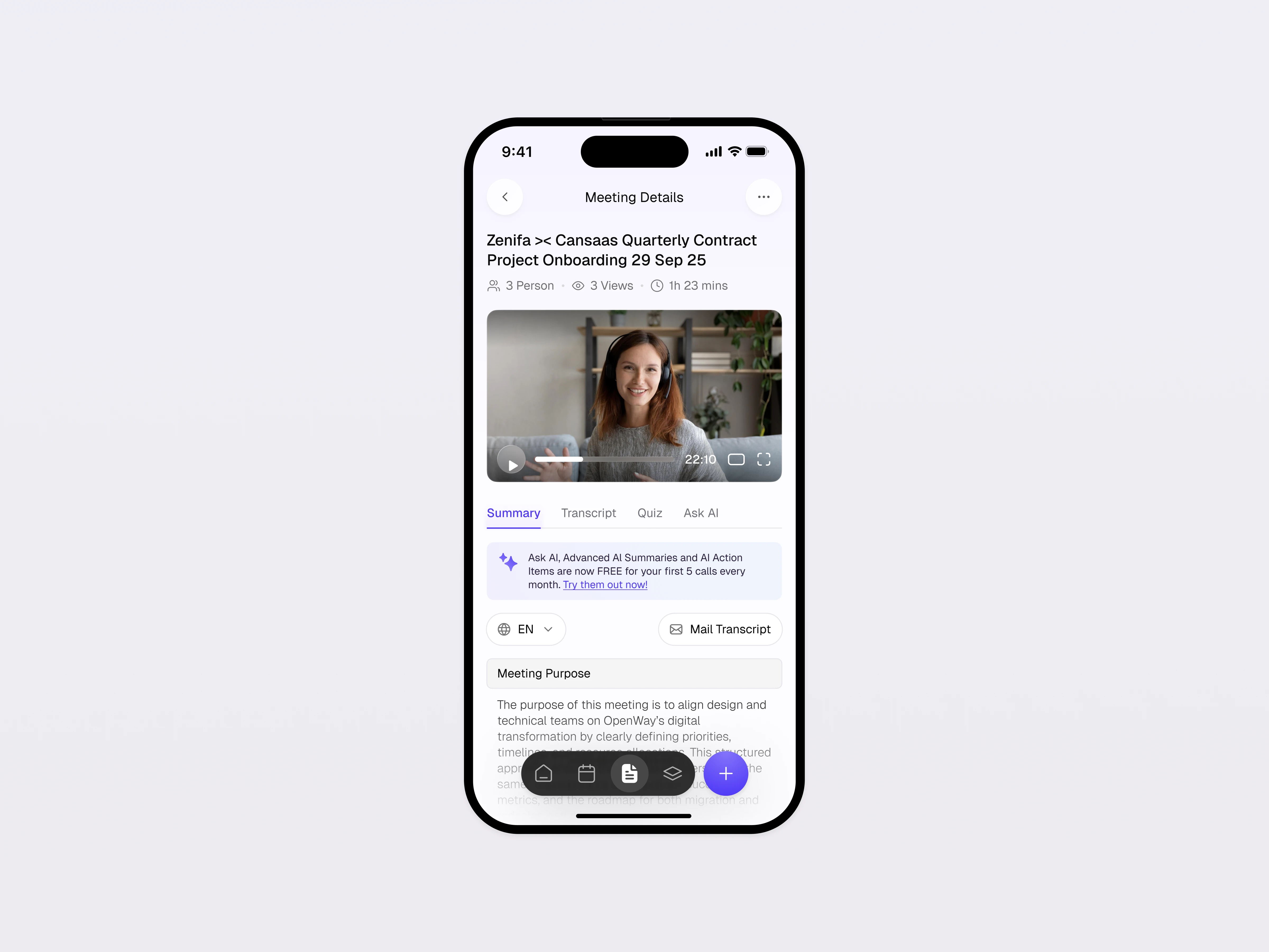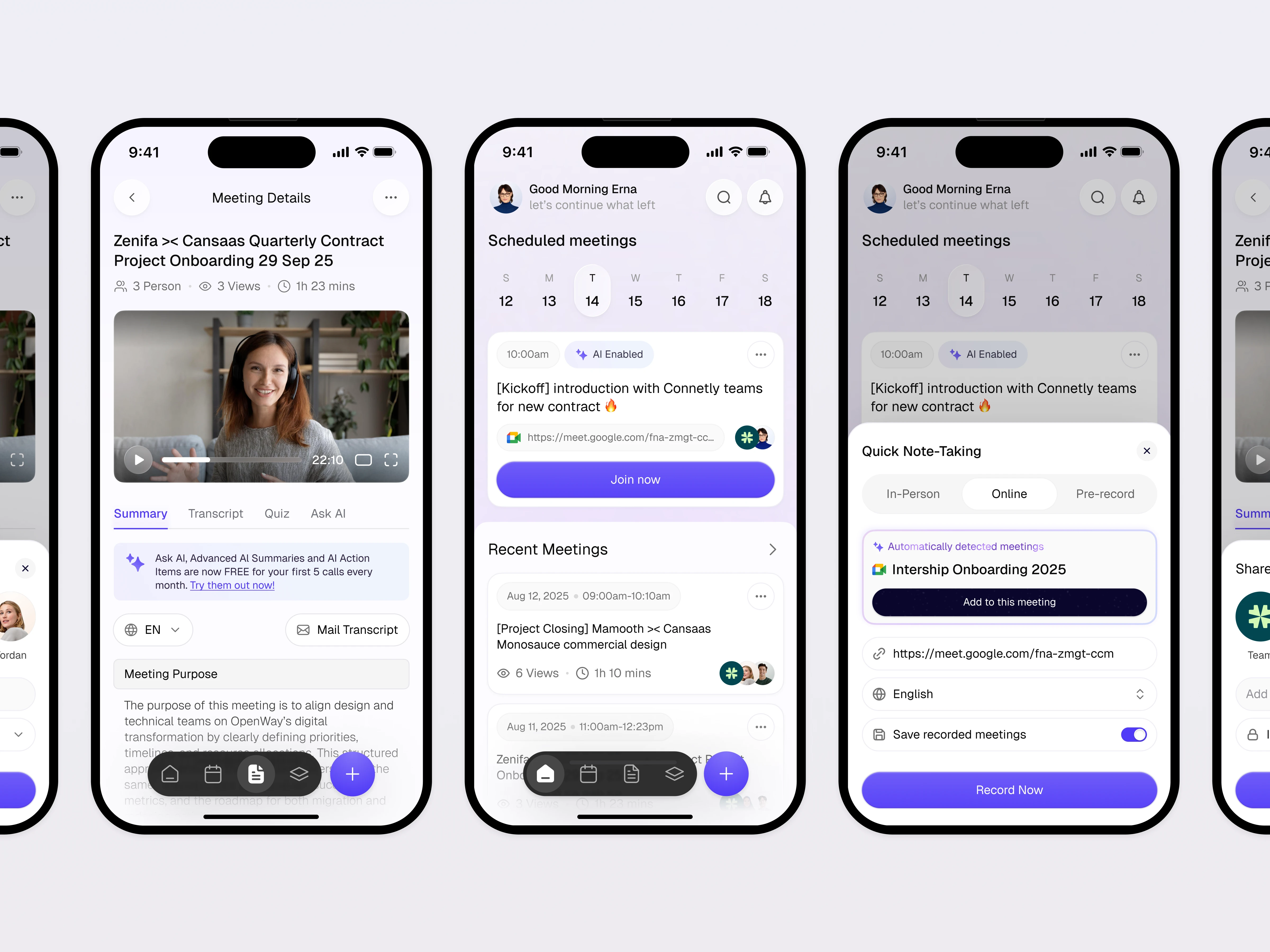 The AI Note-Taking Mobile App is designed to streamline how teams manage meetings, capture key moments, and generate actionable insights with zero friction. By integrating AI-driven summarization, transcript automation, and quick note-taking flows, the app transforms traditional meeting workflows into a seamless, intelligent experience.