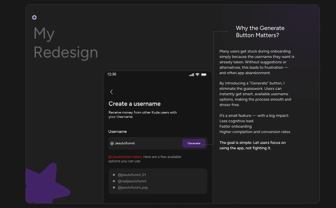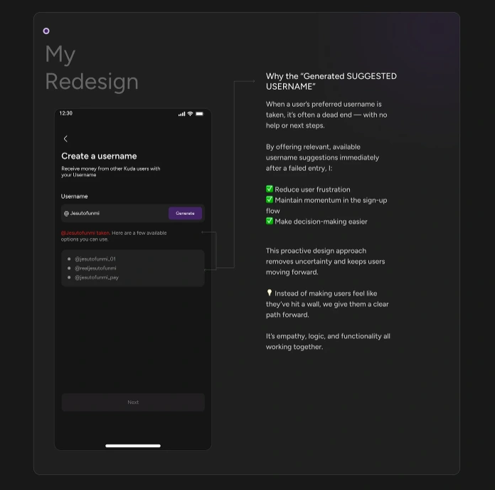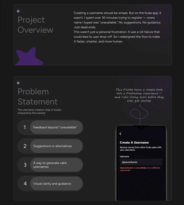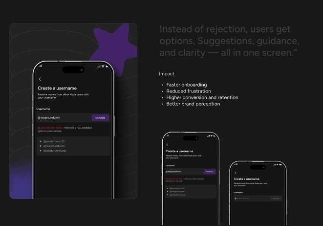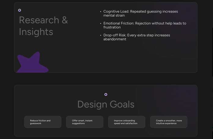 Conducted a UX case study on username frustration, redesigning the mobile registration flow to create a more intuitive, & conversion-friendly user experience