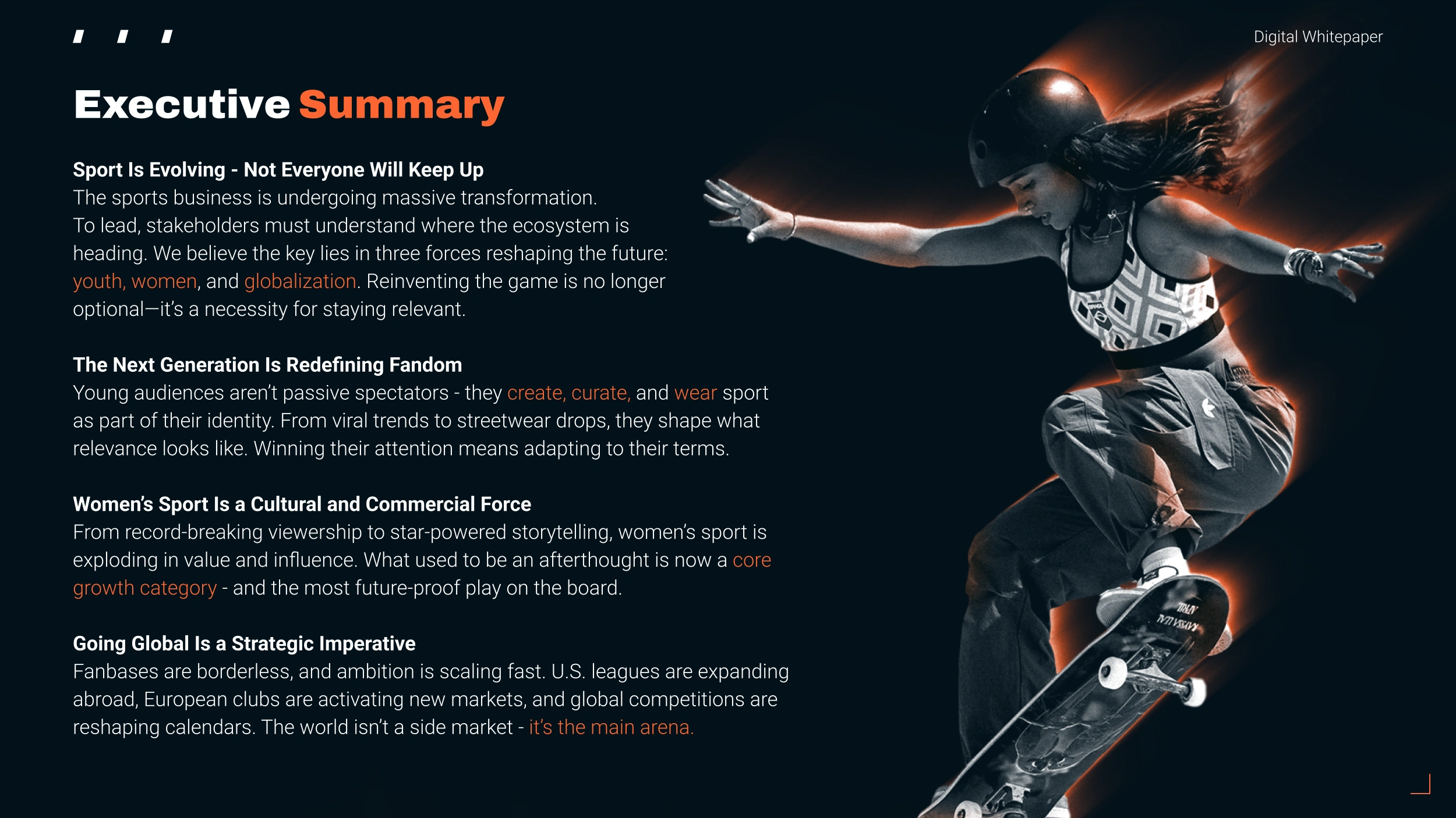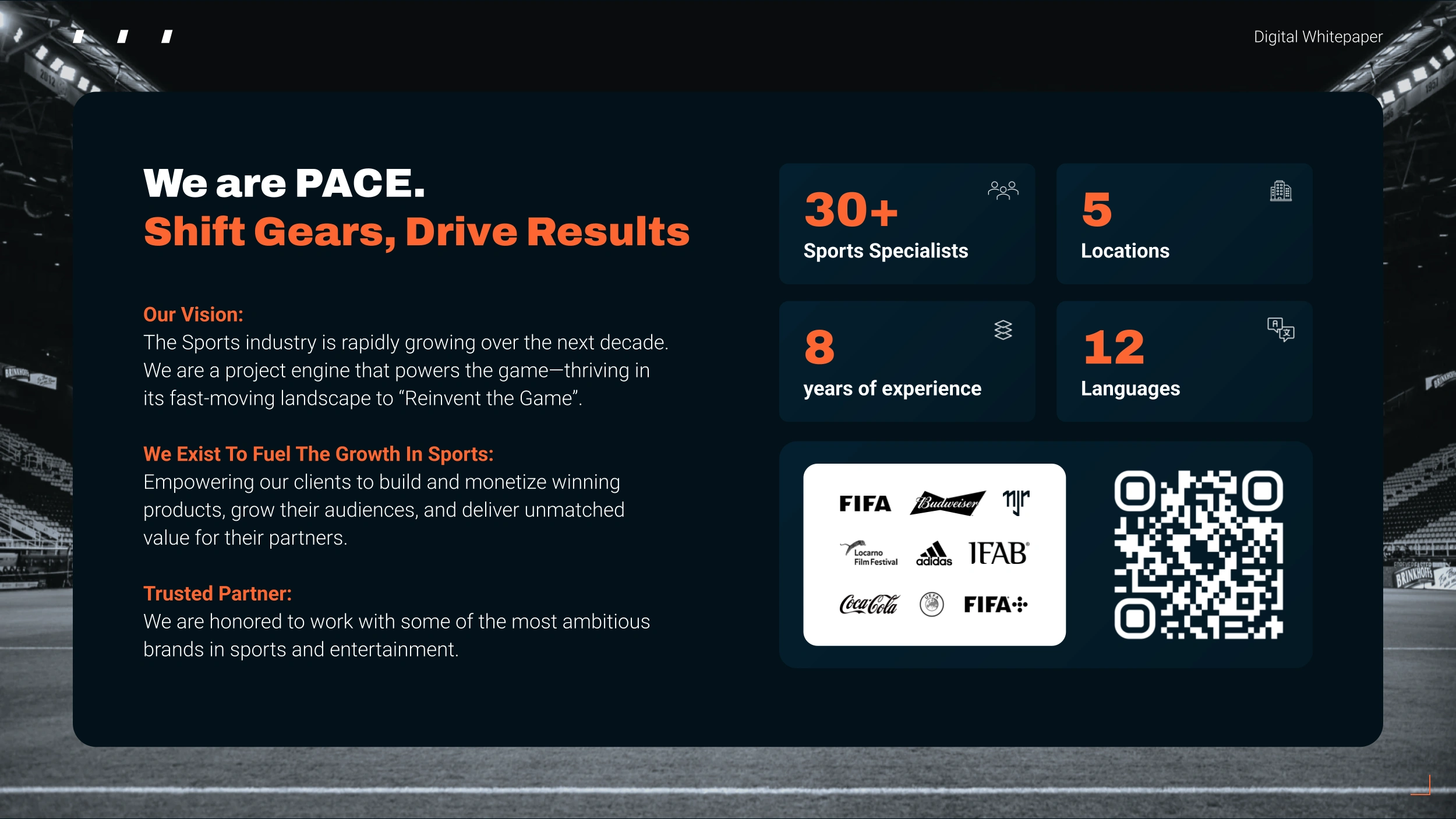 Crafted core pages of PACE’s “Next Billion Fans” whitepaper, turning insights on youth, women & global sports trends into clear, engaging design.