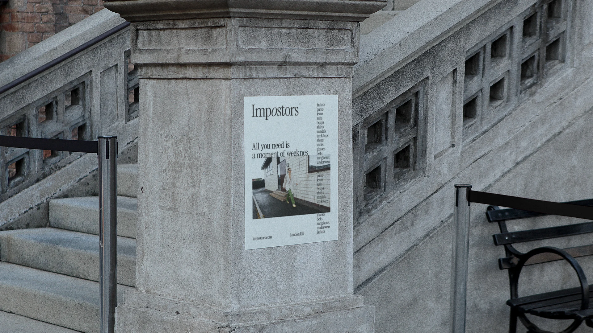 Impostors is a London-based fashion brand specializing in second-hand designer clothing. With its unique tagline, "All you need is a moment of weakness," the br