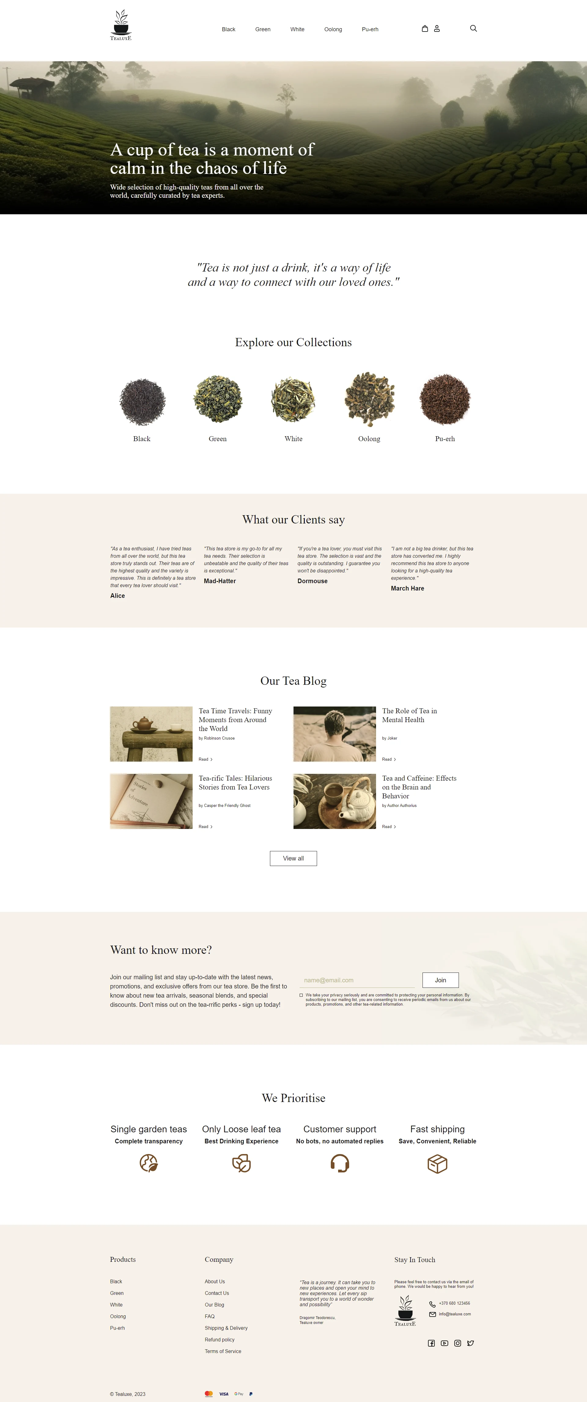 This site, Tealuxe, presents a project with a focus on tea-related content, boasting an elegant design and engaging visuals. Adaptive layout.