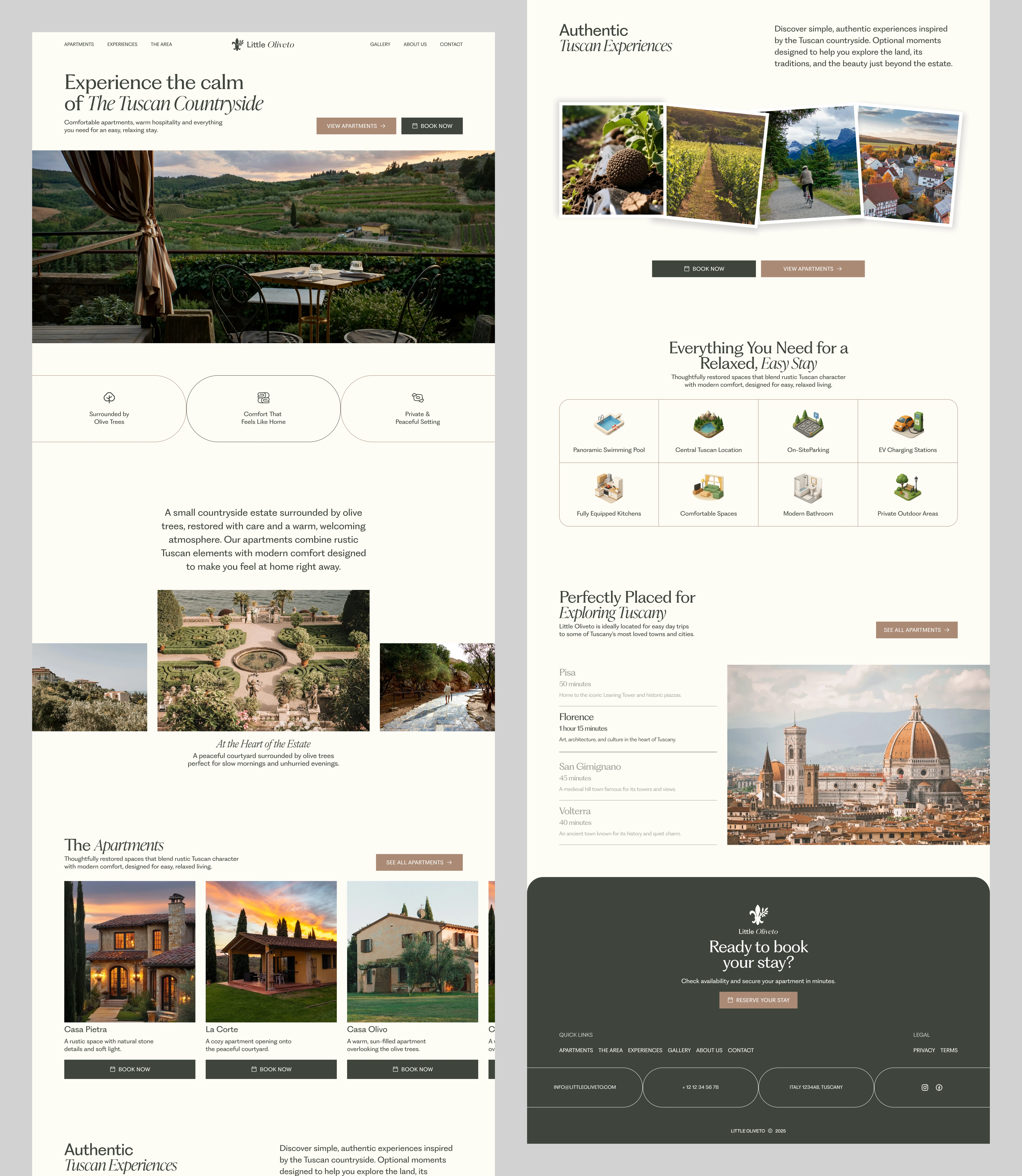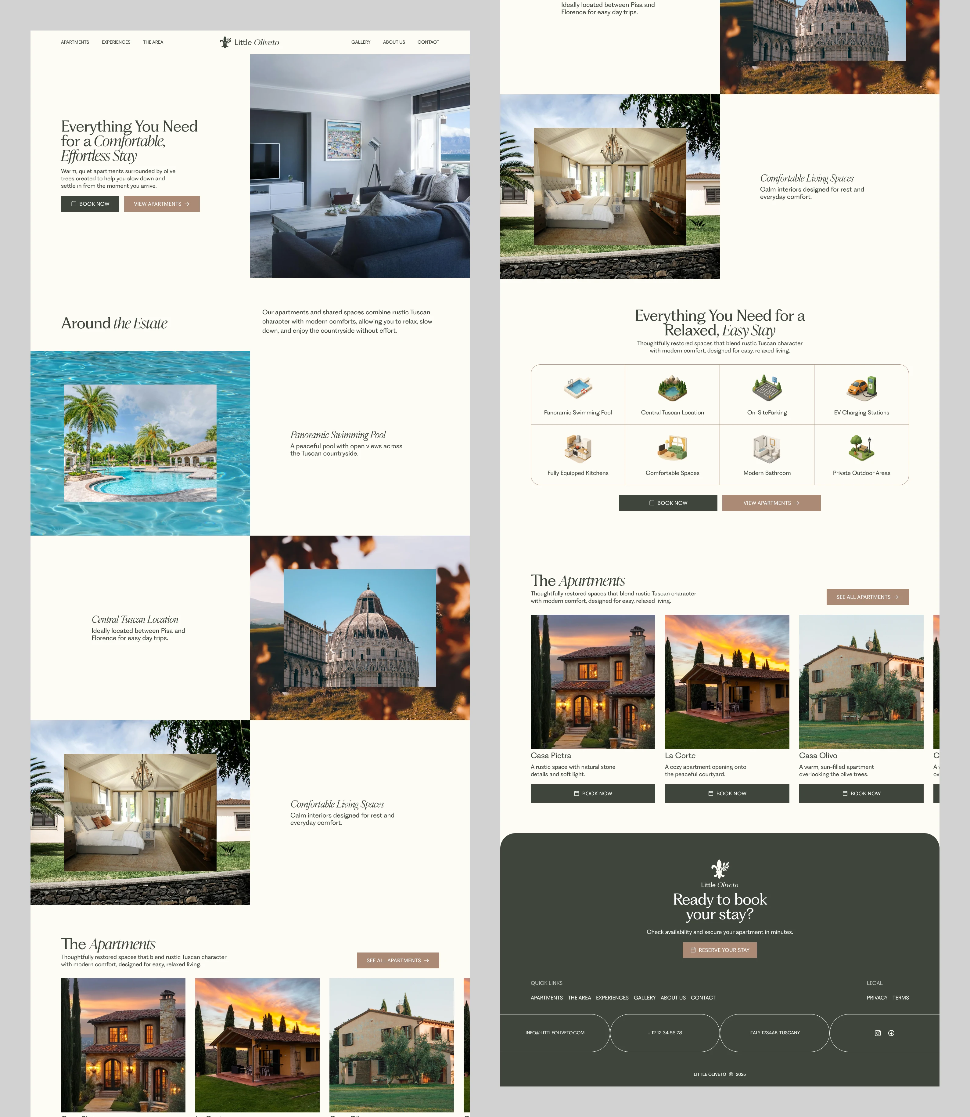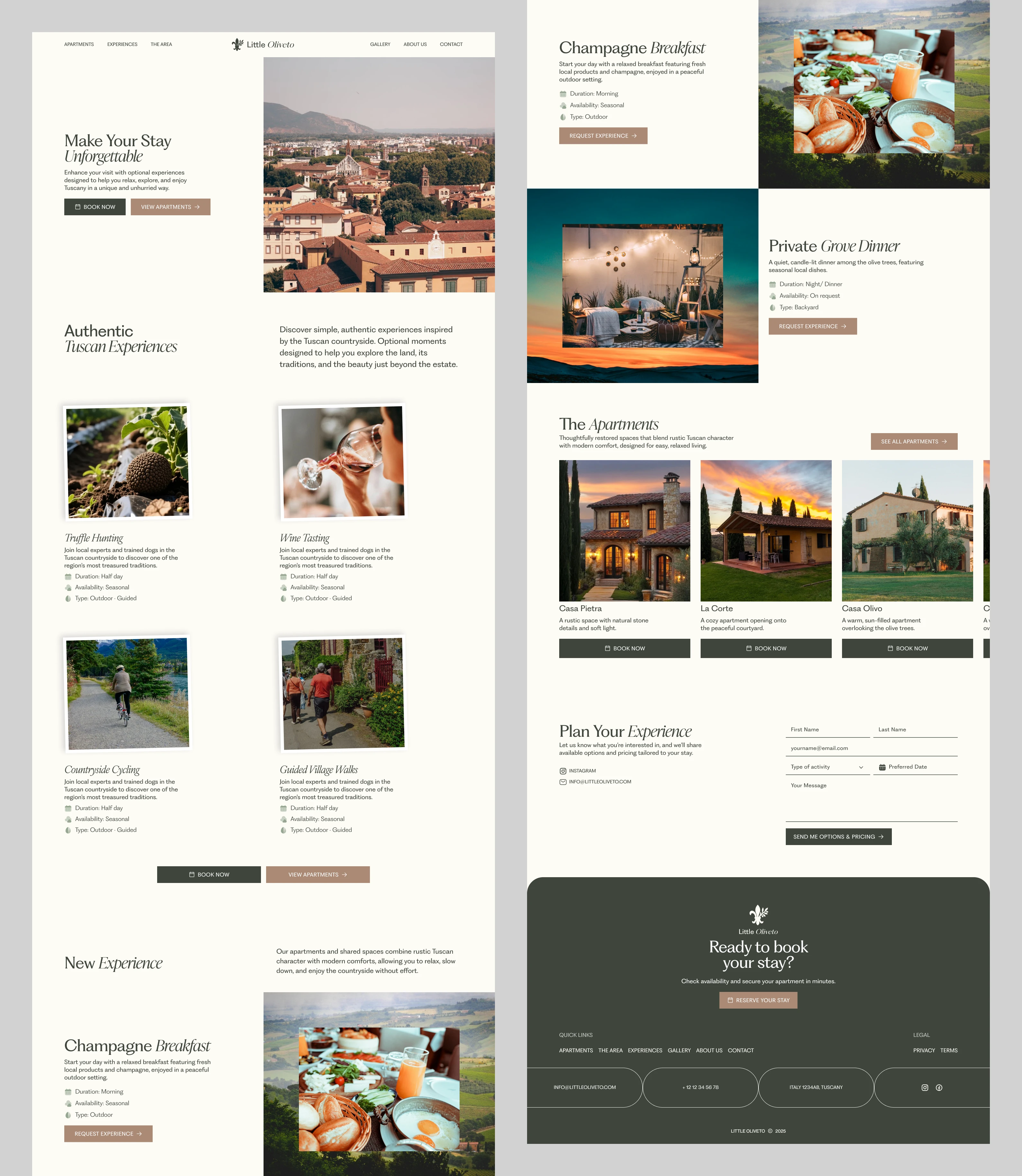 The final design presents Little Olivetto as a polished, approachable hospitality brand with a website that feels consistent with the physical experience and works smoothly across devices.