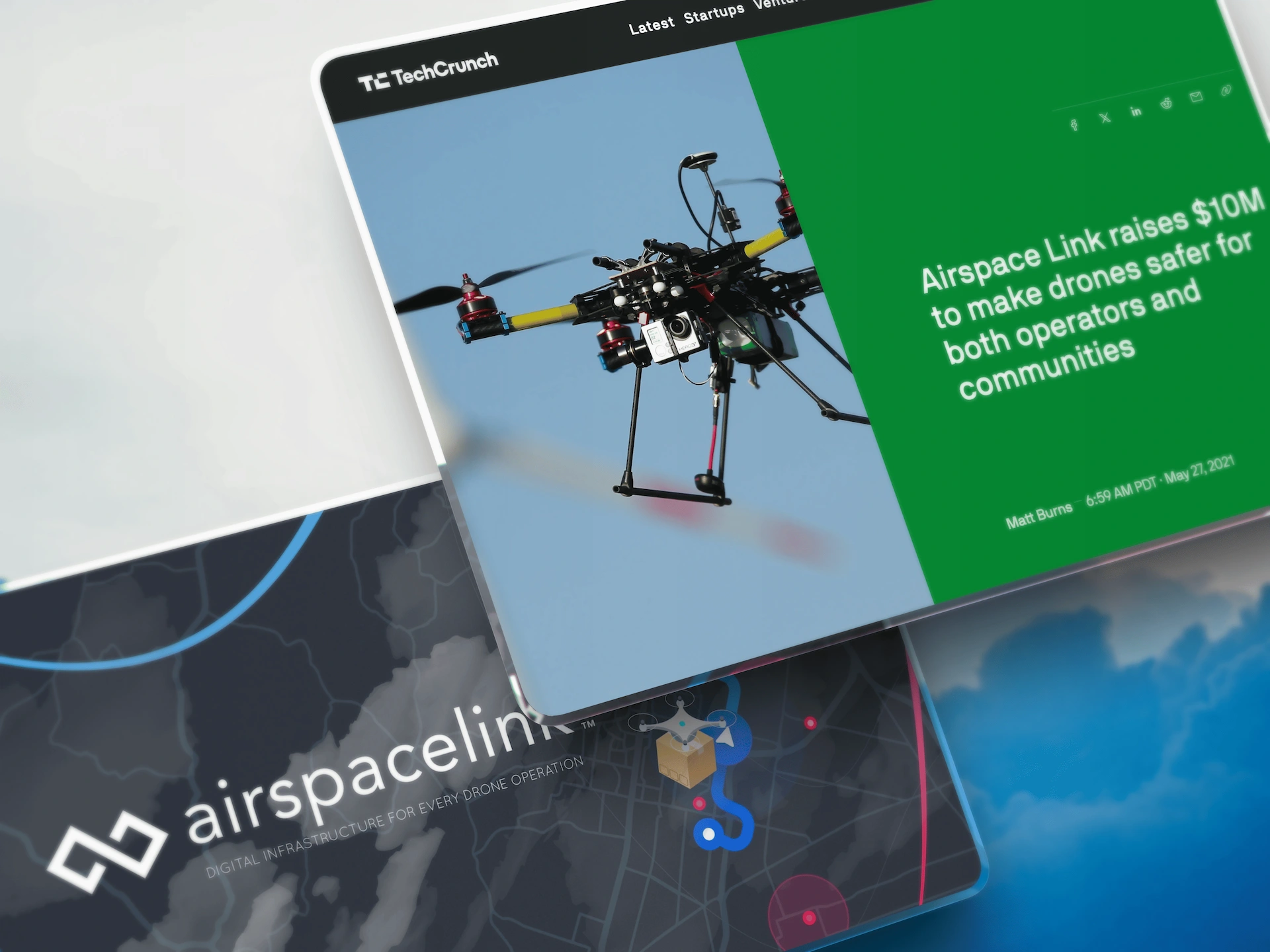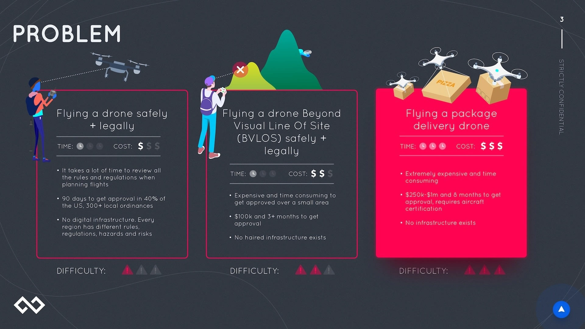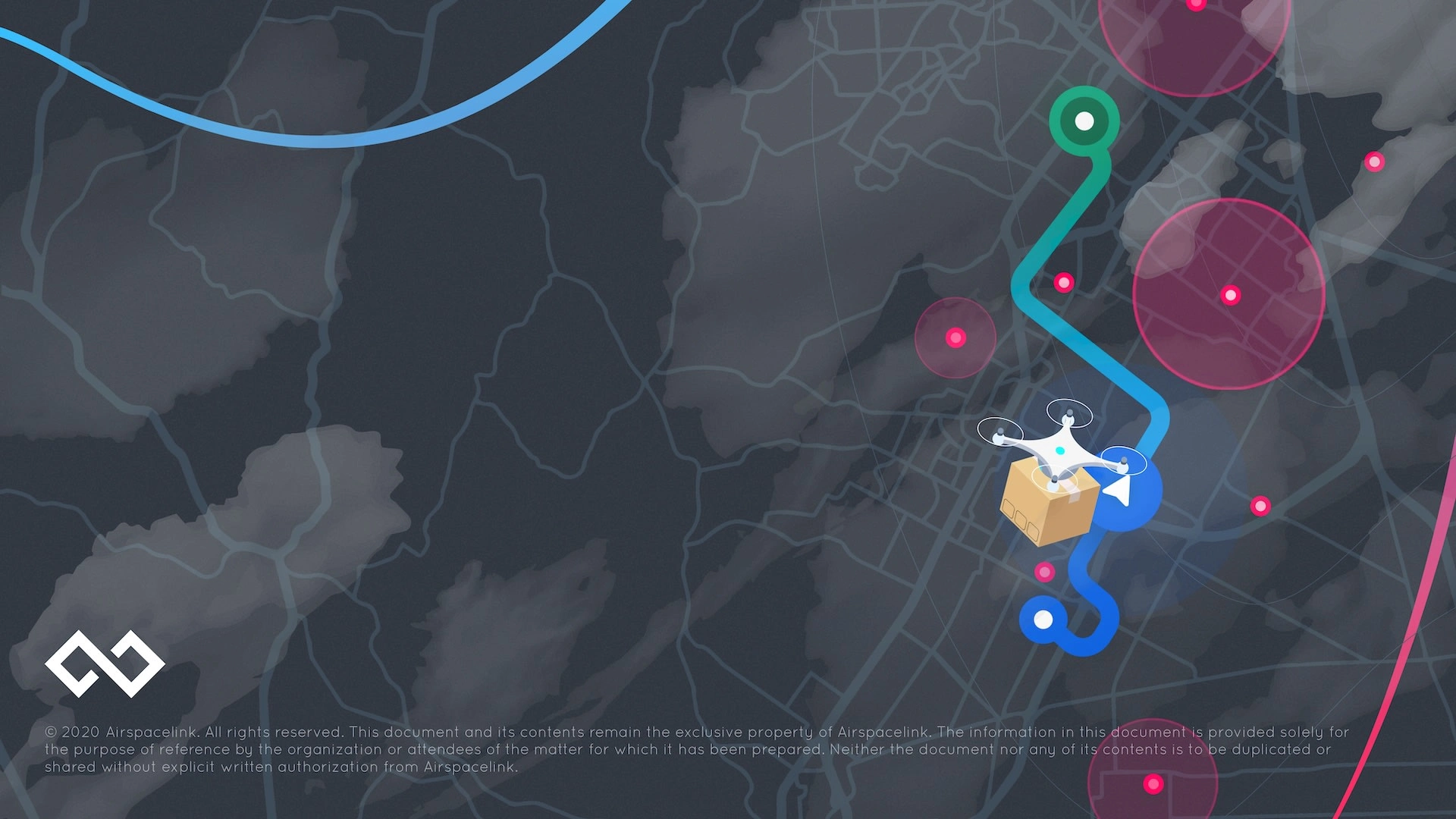 Traction and Validation slide showing 9-month progress: AirHub Version 1.0 launch April 2020, $500k booked revenue, 1 of 5 FAA LAANC approved suppliers, 726 airports integrated, 10 states under contract, 300+ business users, 1000+ pilot users, team growth from 5 to 14, plus six go-to-market partner logos including Esri, FedEx, UPS, Amazon Prime Air, Uber Eats, and Walmart