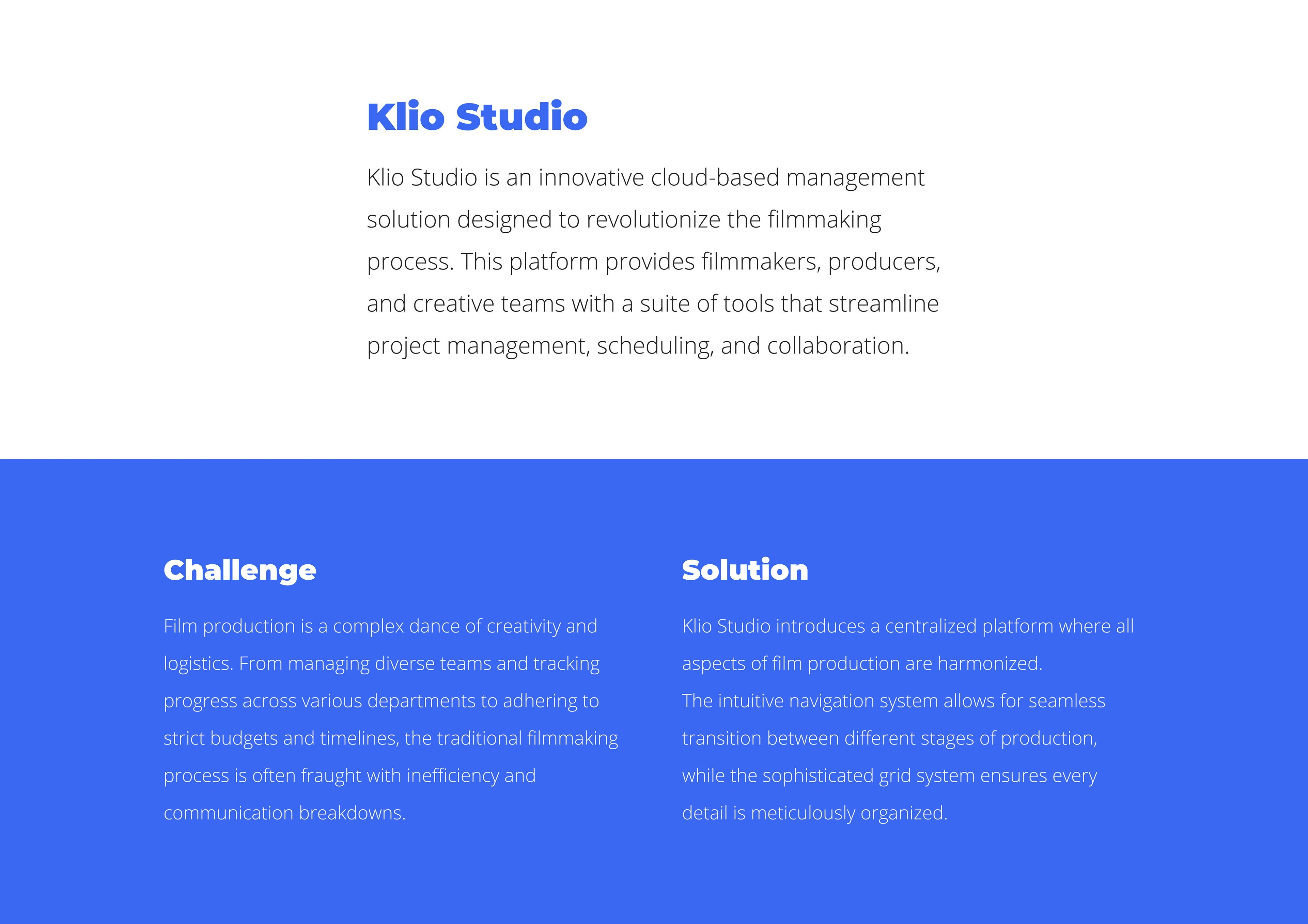 Klio Studio is cloud-based production management software for production companies and filmmakers.