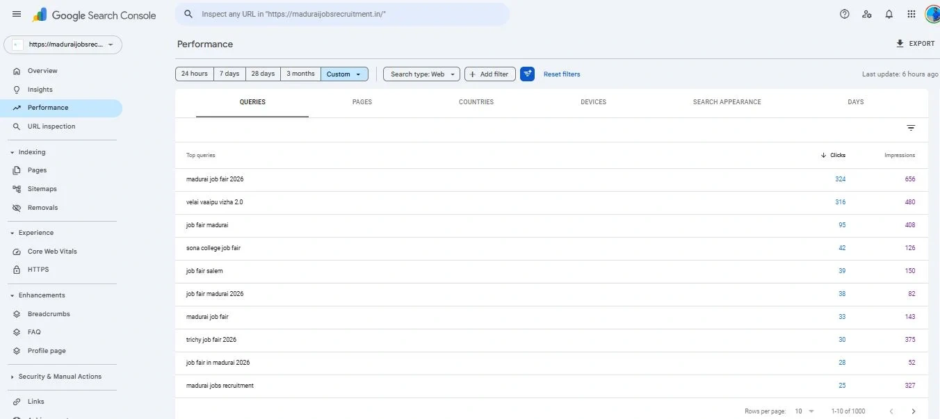 By focusing on search intent, structured content, and technical optimization, Madurai Jobs Recruitment achieved significant organic growth within a short period.
