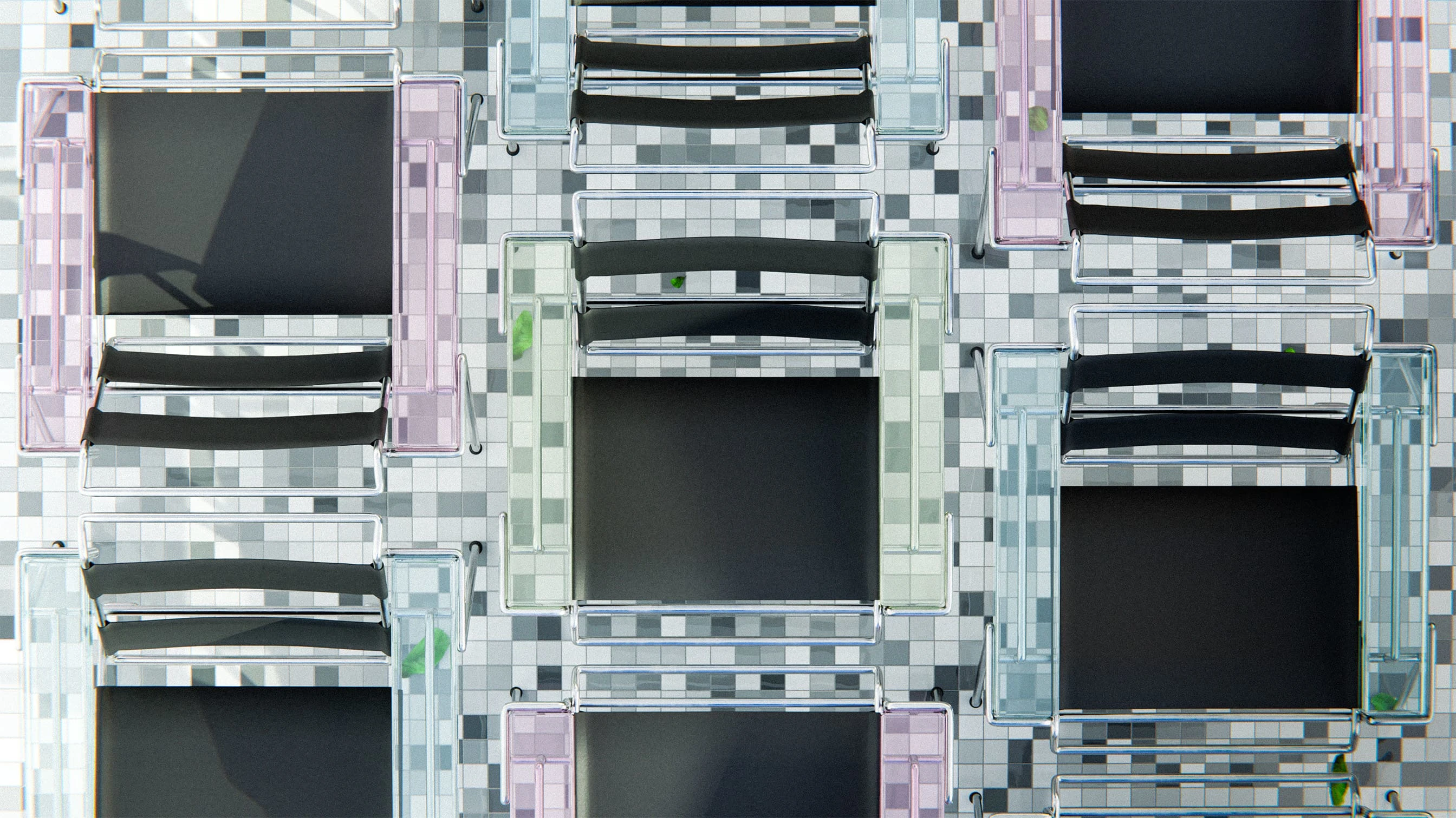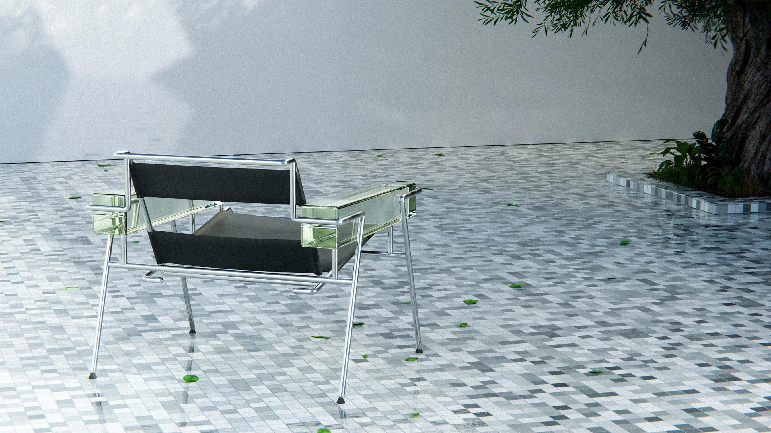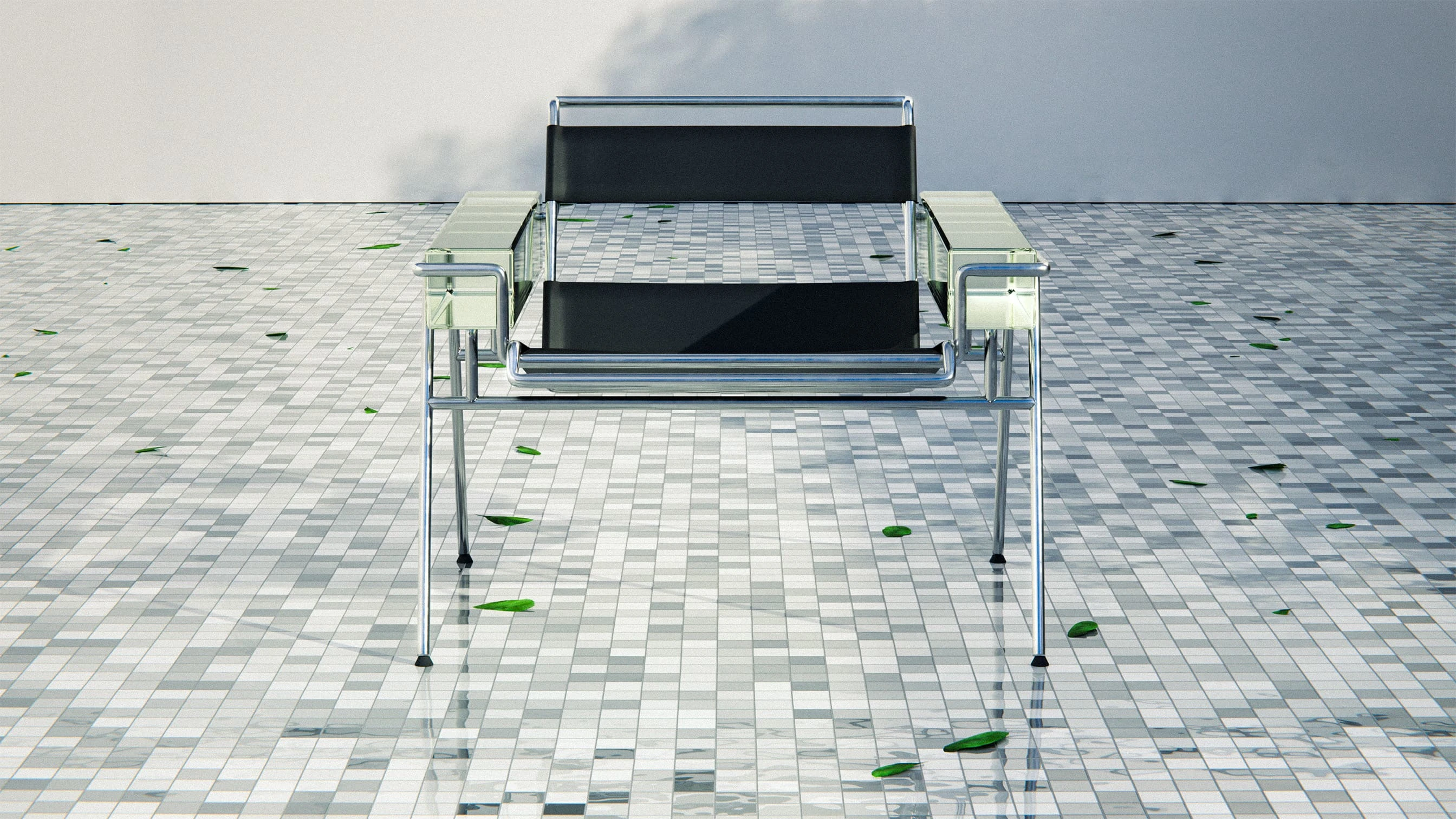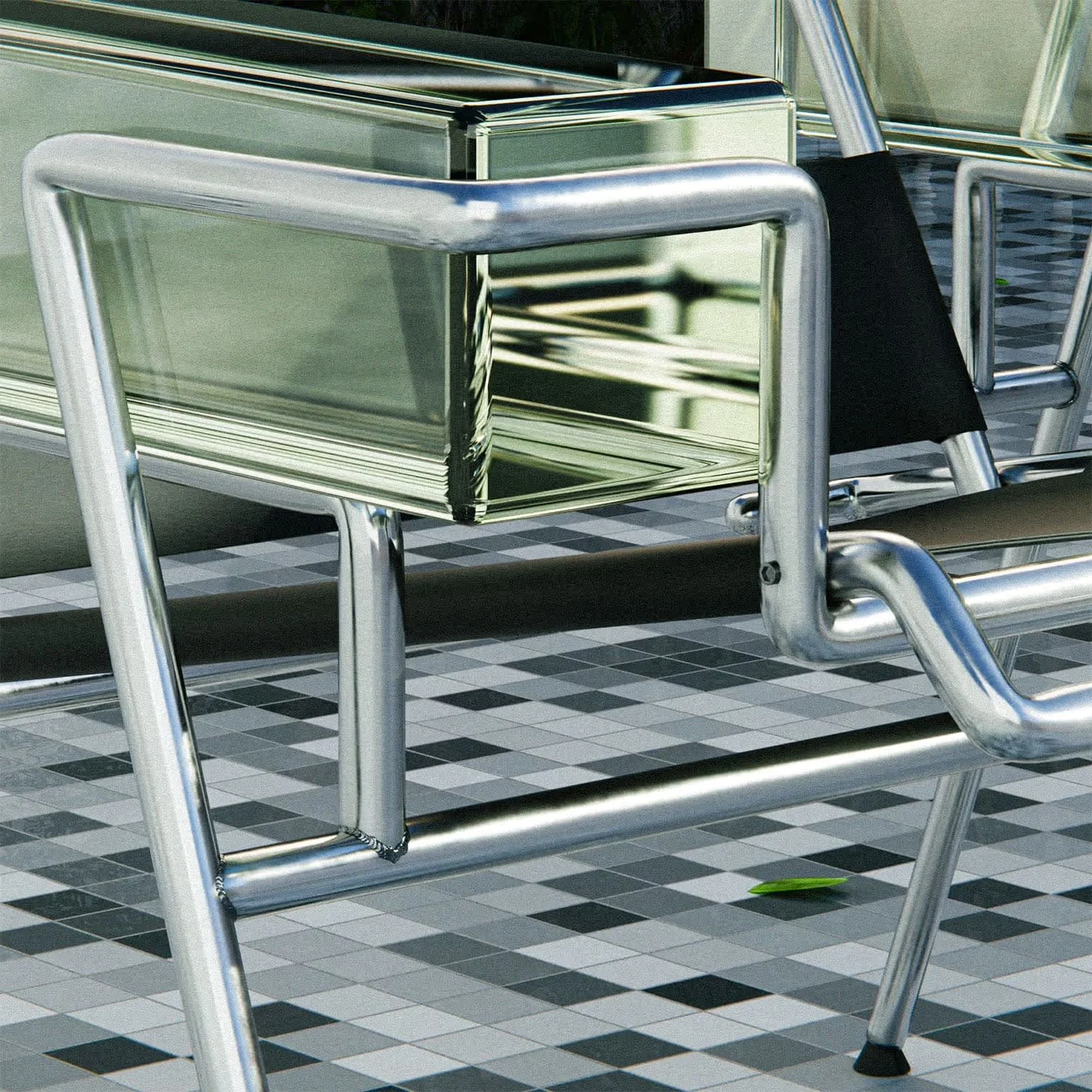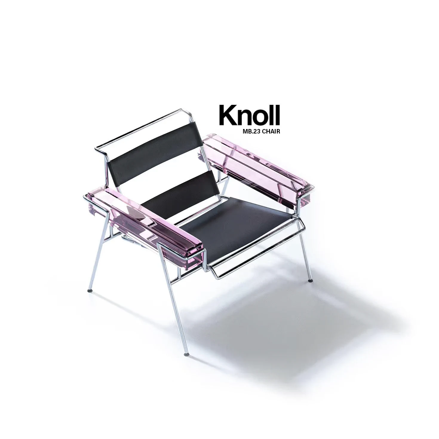 The MB23 chair blends metal, leather & glass in a bold tribute to modernism, evoking beach chairs with a refined, elegant and timeless design twist.