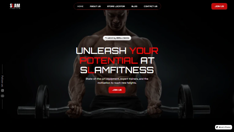 Concept redesign of SLAM, Chennai’s top fitness hub—bold, high-impact site showcasing training programs, bootcamps & more with seamless, energetic flow.
