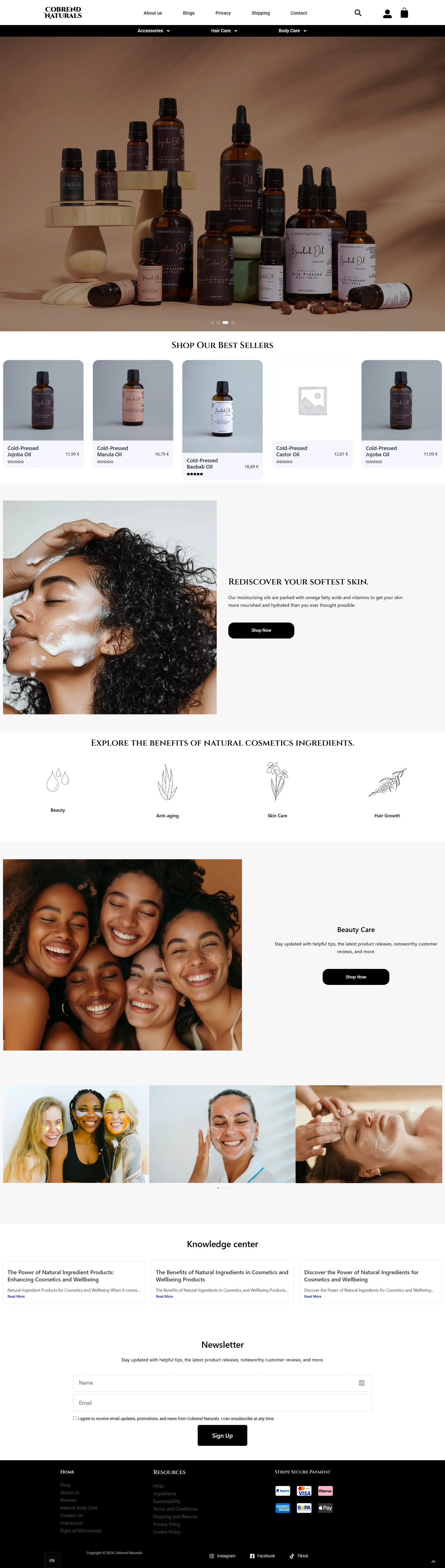 The design features soft tones, elegant typography, and product-focused layouts that highlight each item’s benefits and ingredients. I implemented WooCommerce functionality with secure checkout, product filtering, and dynamic cart updates for a seamless customer experience.