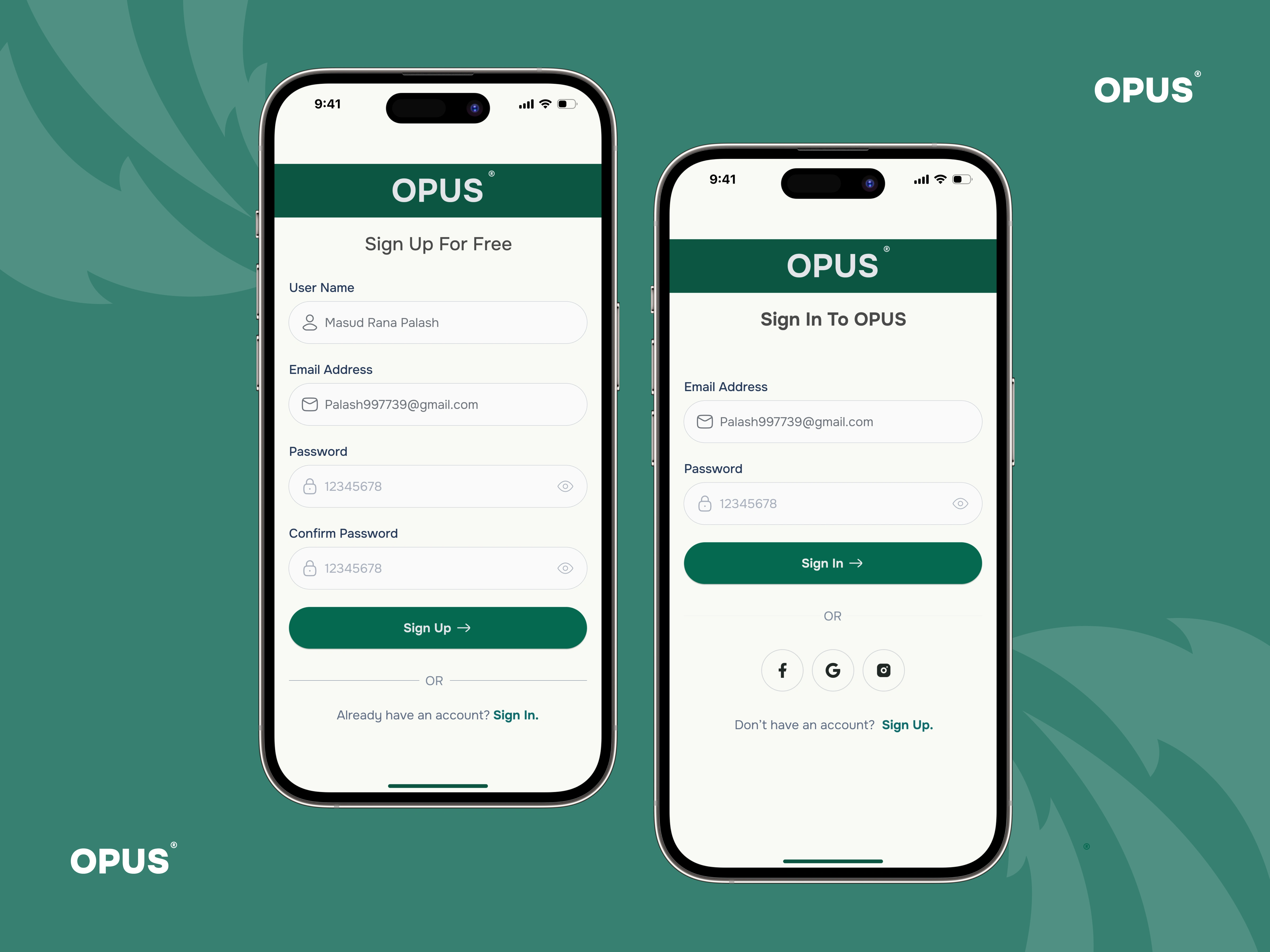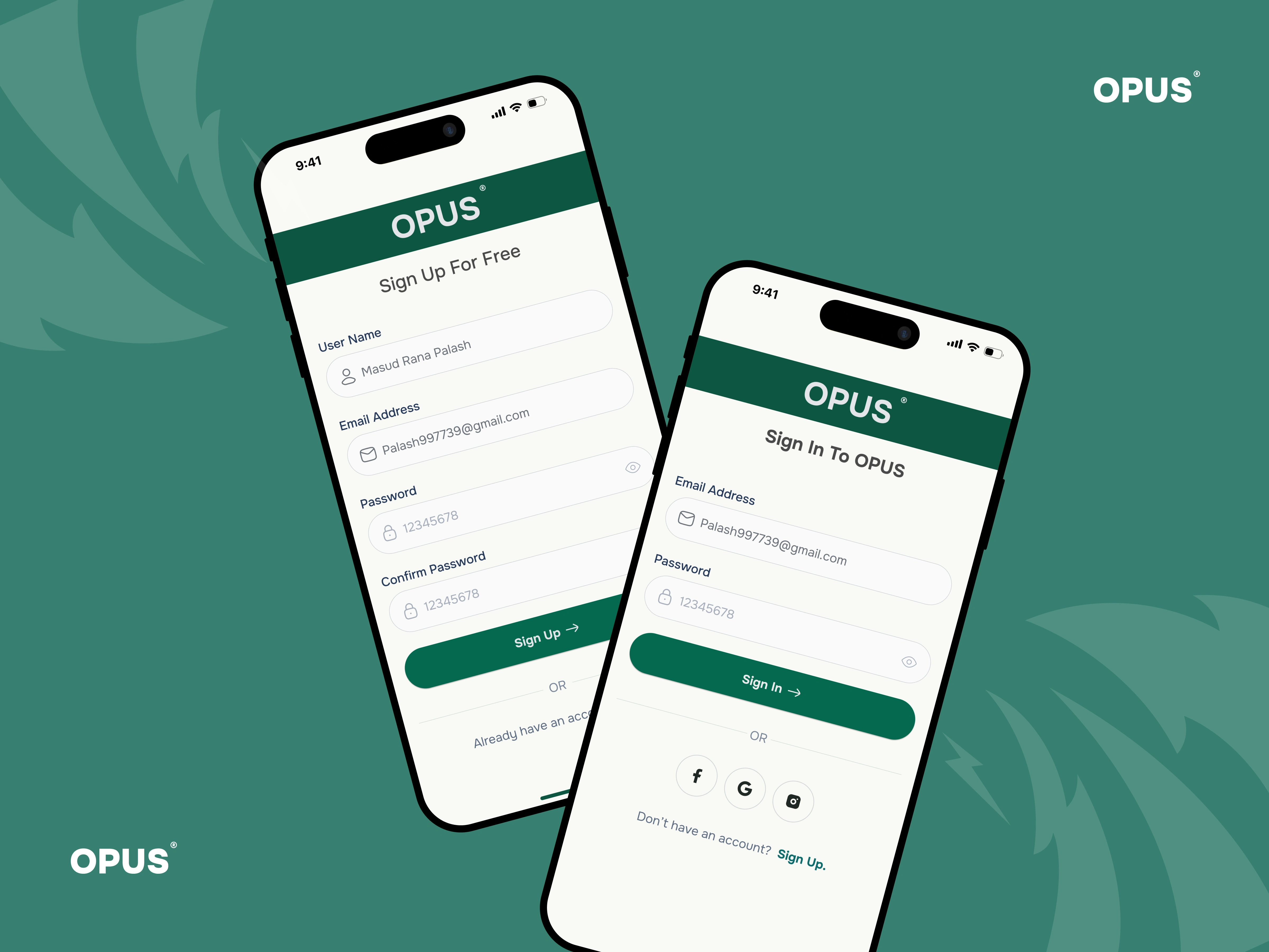 Opus Design Store mobile app offers a seamless and user-friendly experience. With a clean, intuitive layout, it allows users to quickly sign in or create an account using their
