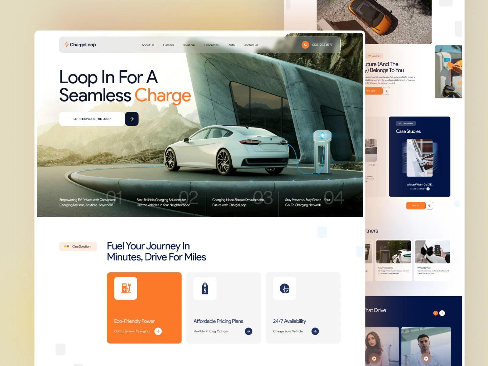 Overview: Chargeloop is an EV charging company focused on sustainable mobility and clean energy solutions. I designed a website that highlights innovation, accessibility, and eco-conscious technology while building trust with both individual and corporate users.