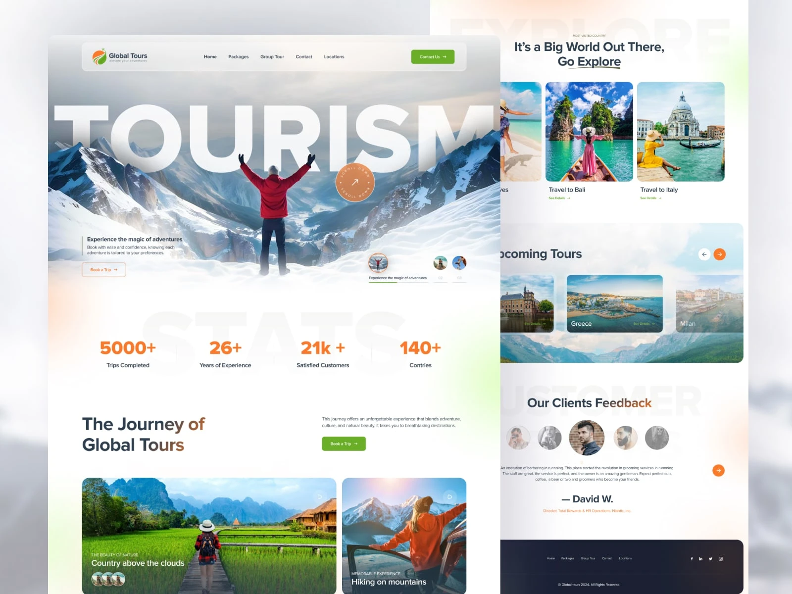 Overview: Global Tours is a tourism company offering curated travel experiences across the world. I designed a website that captures the spirit of adventure while making trip planning simple, inspiring, and trustworthy.