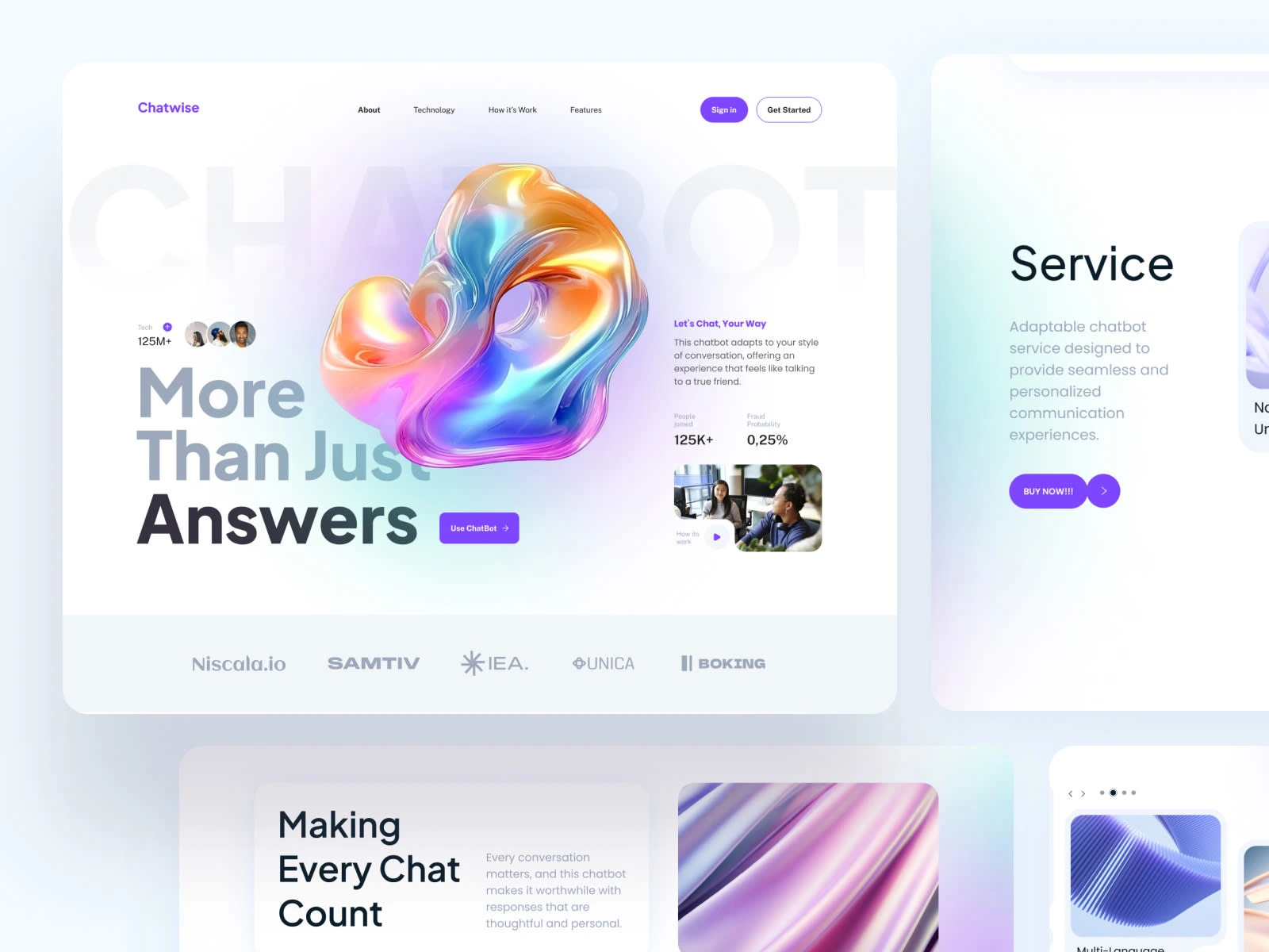 Overview: Chatwise is a communication and collaboration platform designed to make team conversations smarter, faster, and more organized. I created a website that reflects the brand’s modern, people-first approach while showcasing its powerful features.