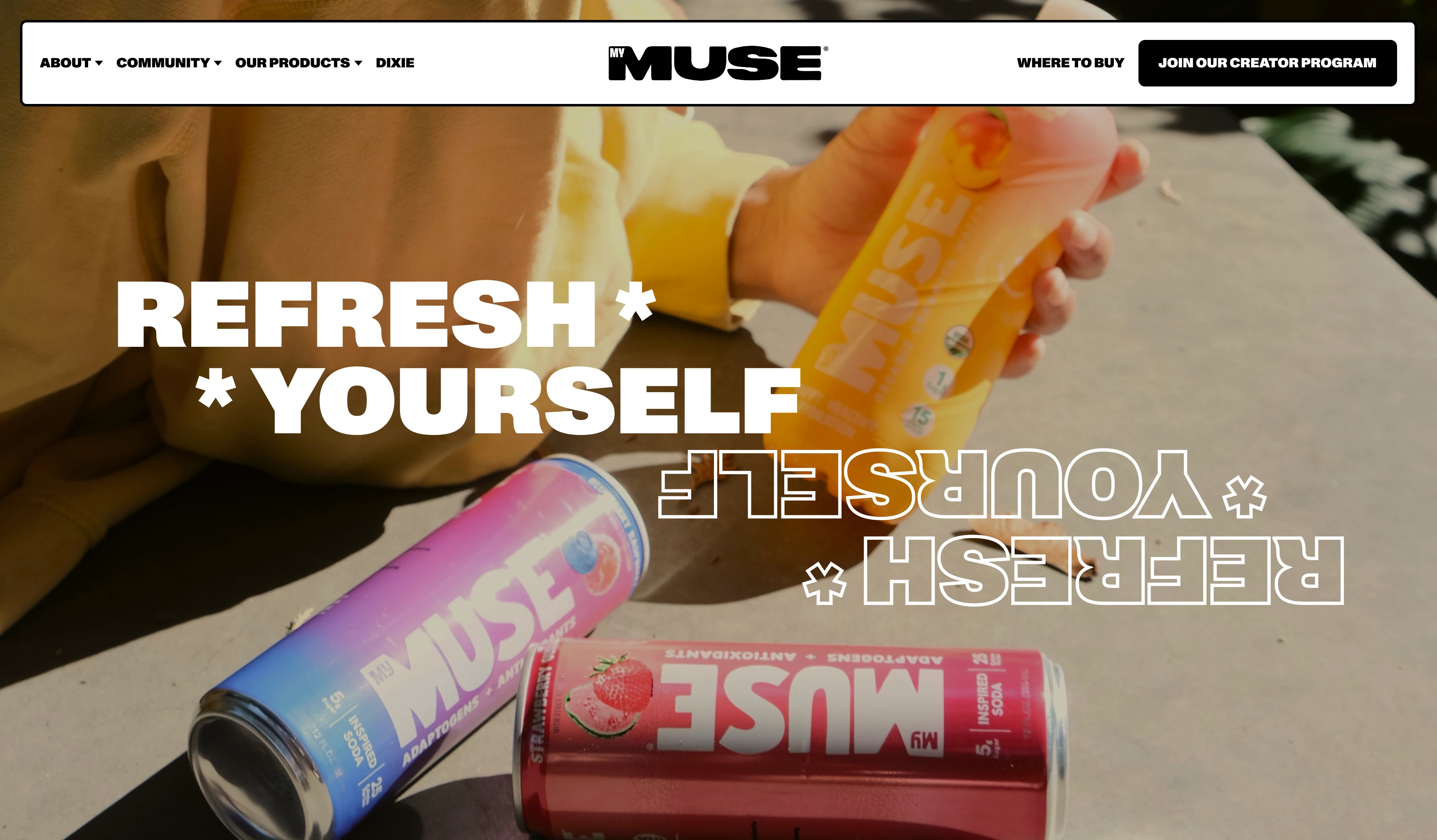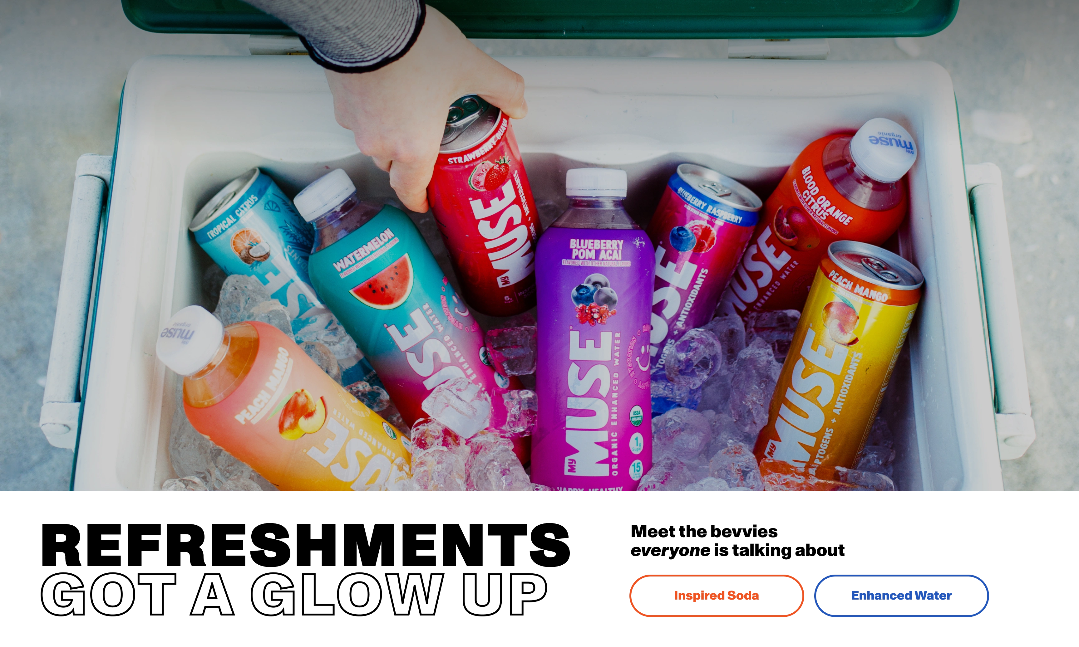 Shopify Store Design for Inspired Soda brand MyMuse. Working with OneNine agency to refresh their existing presence into an engaging online experience.