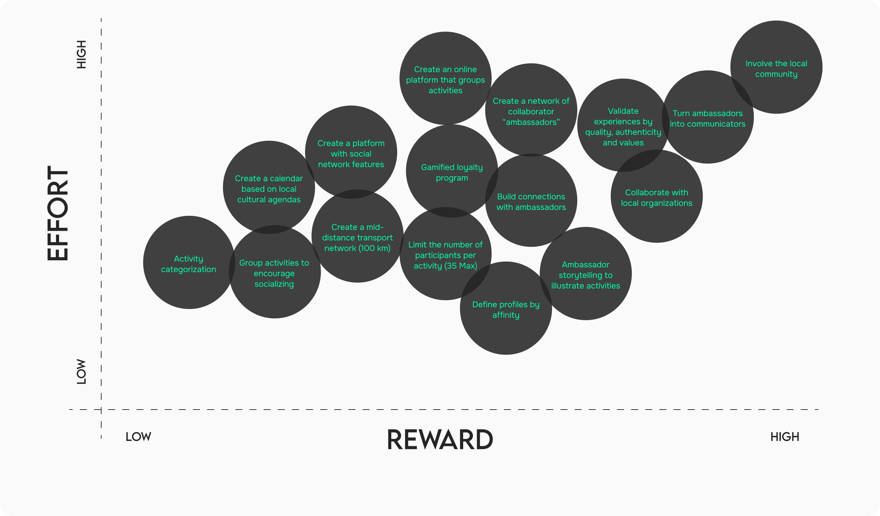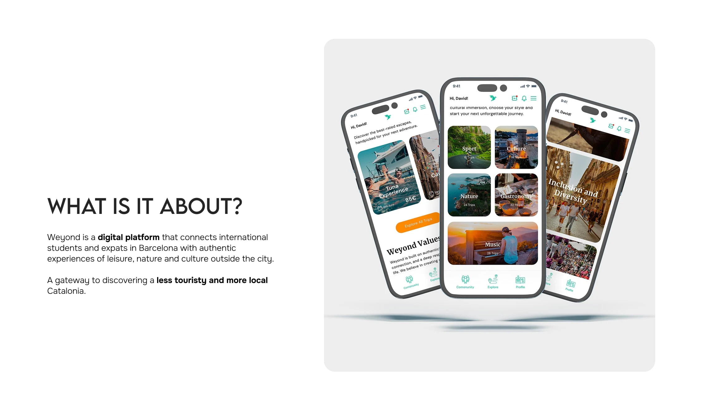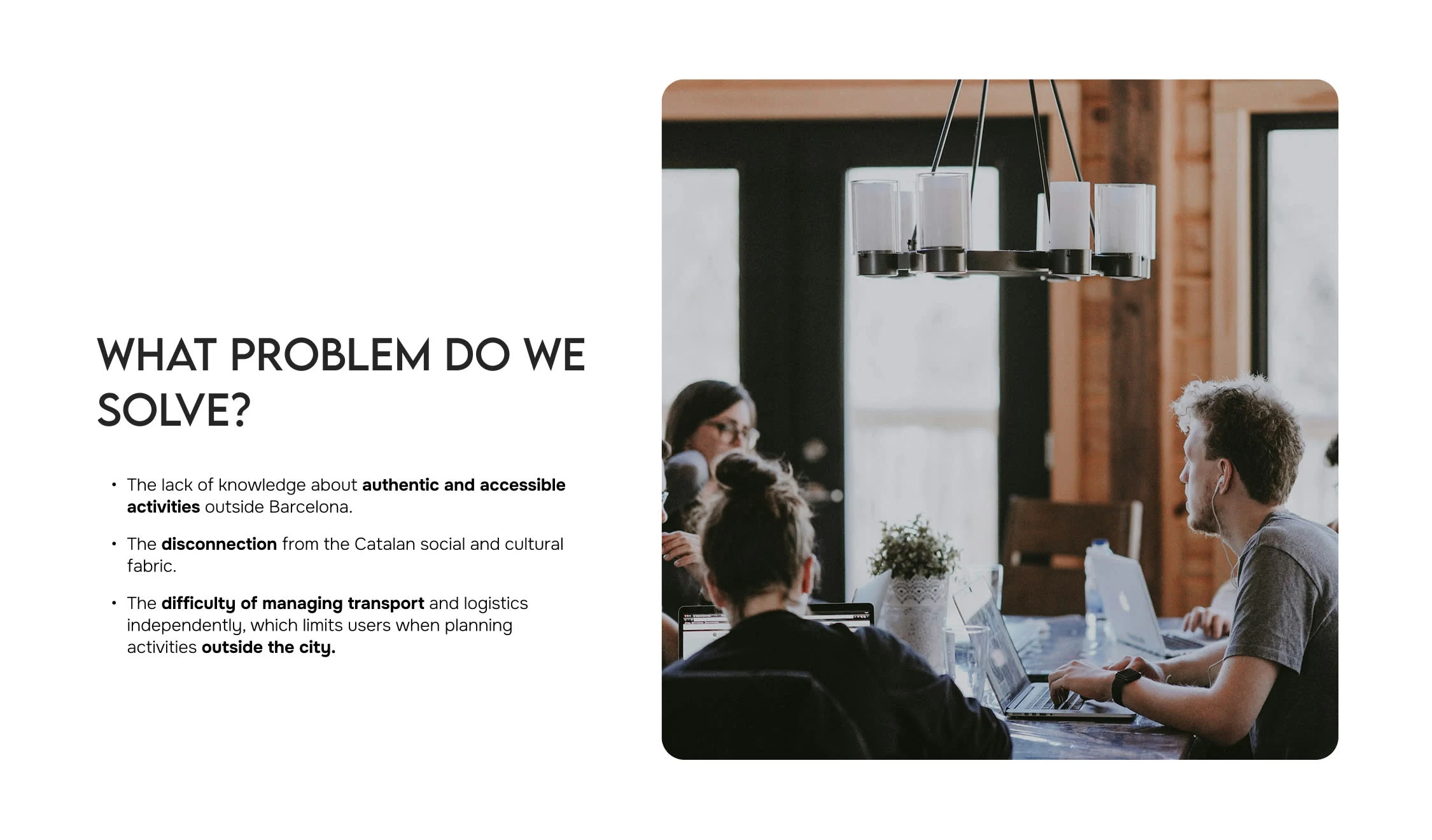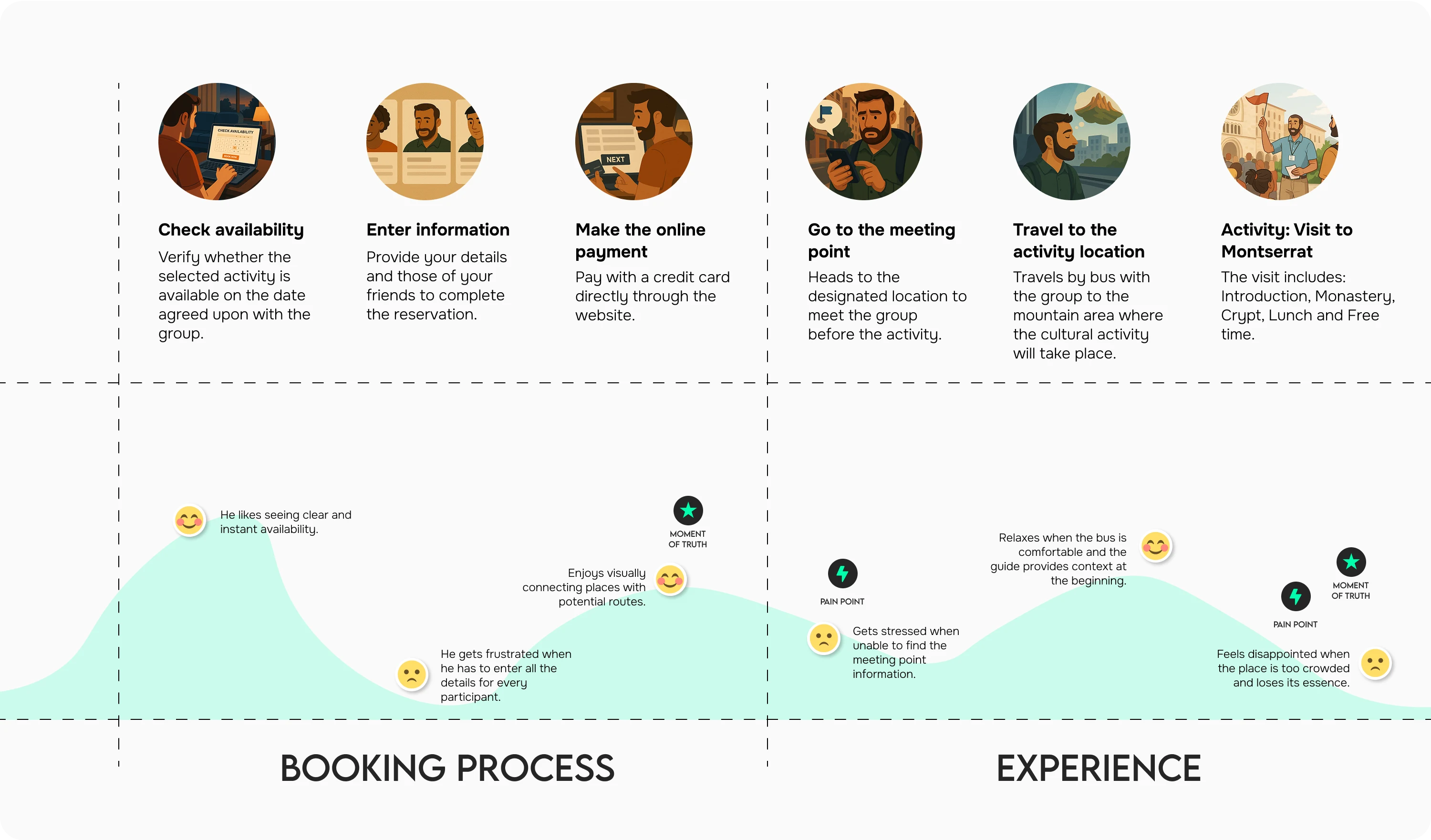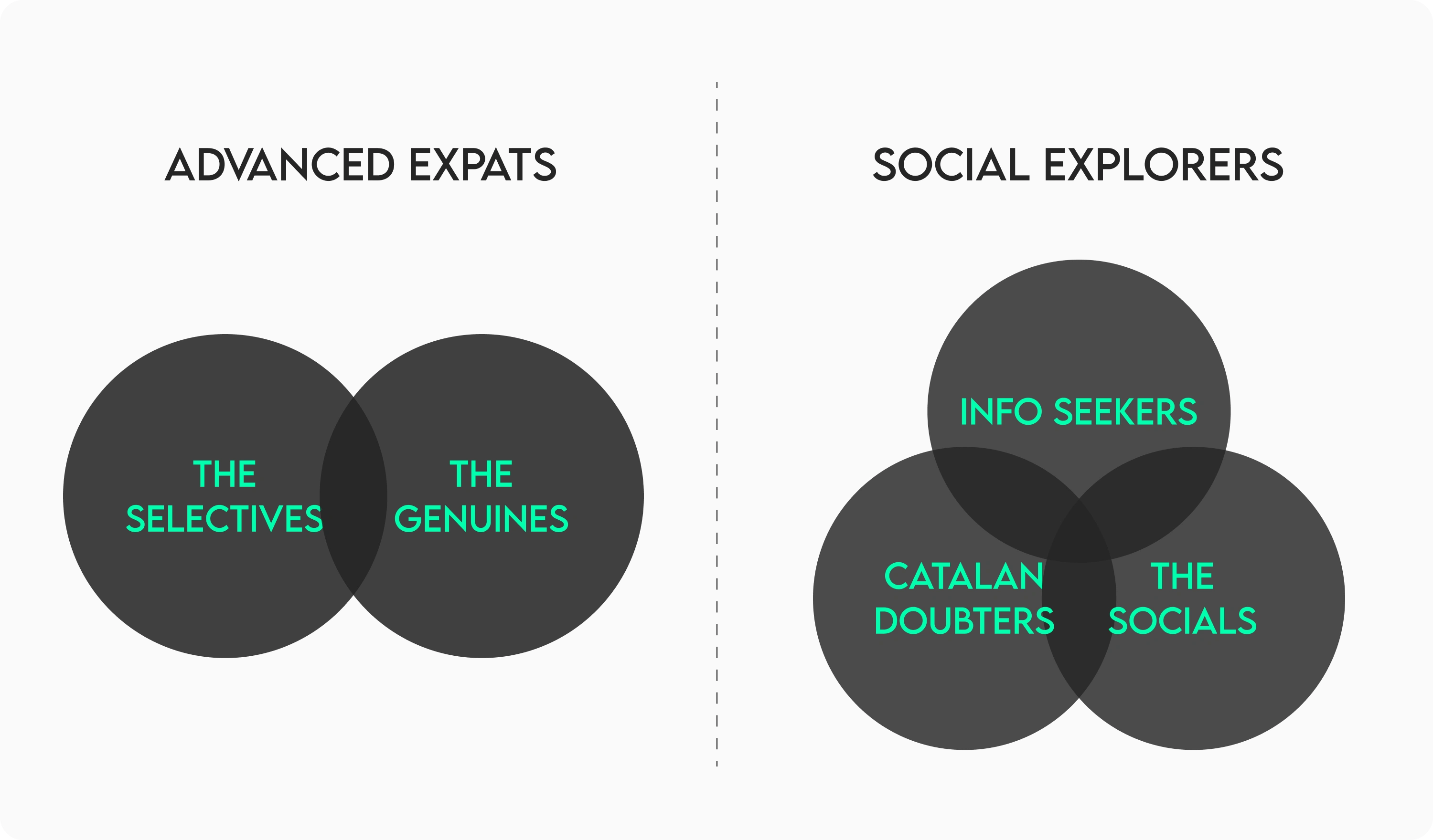 In this phase, I analyzed all qualitative data collected from interviews, surveys and observations to identify key user motivations and pain points. Through the affinity mapping process, we uncovered five behavioral patterns, and later identified strong correlations between them. These connections revealed two main user groups: Advanced Expats, who seek high-quality experiences and enjoy exploring local culture in depth, and Social Explorers, who seek shared experiences and human connection. These insights guided the design opportunities for each profile.