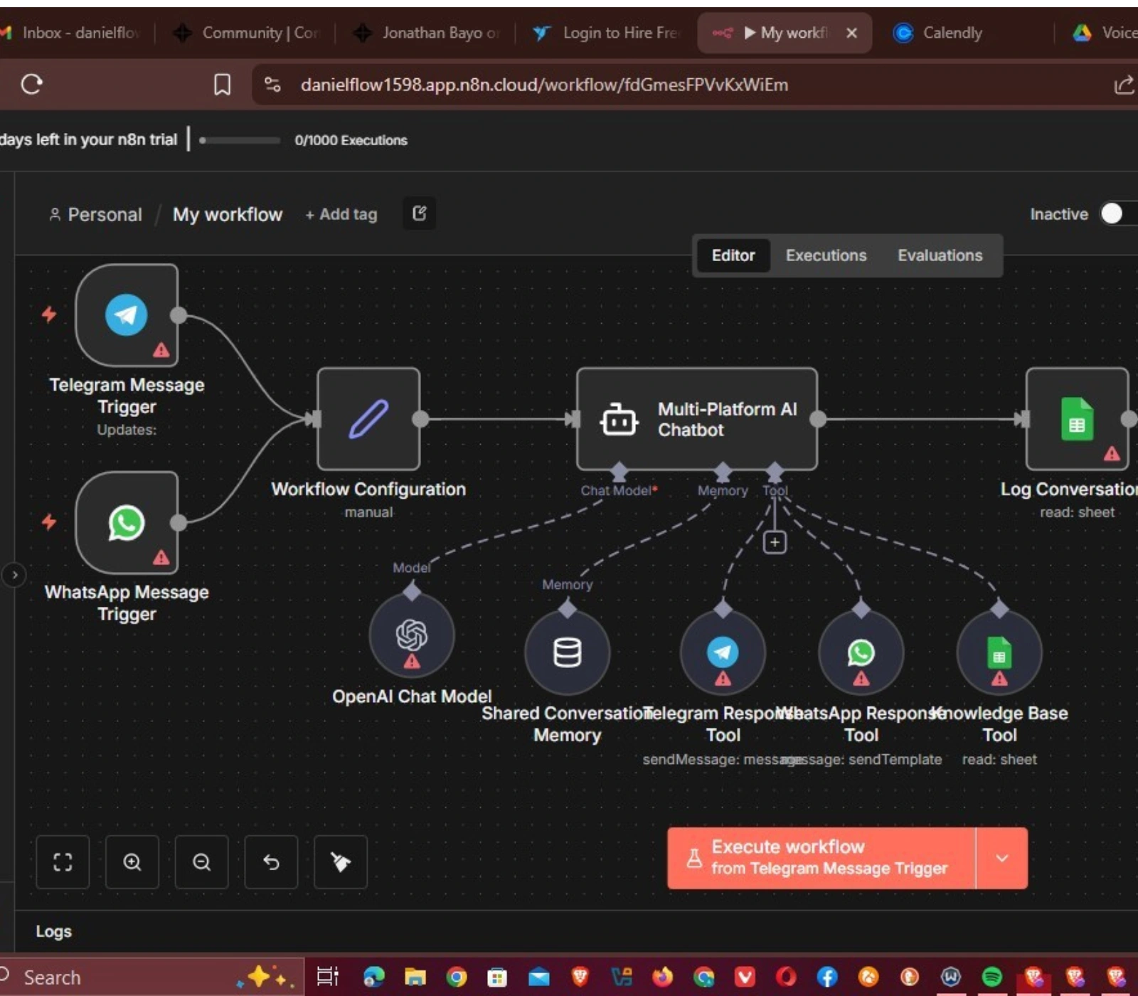 Built a custom AI chatbot and n8n automation that replaced manual replies, captured every lead instantly, and cut admin time by 90%.