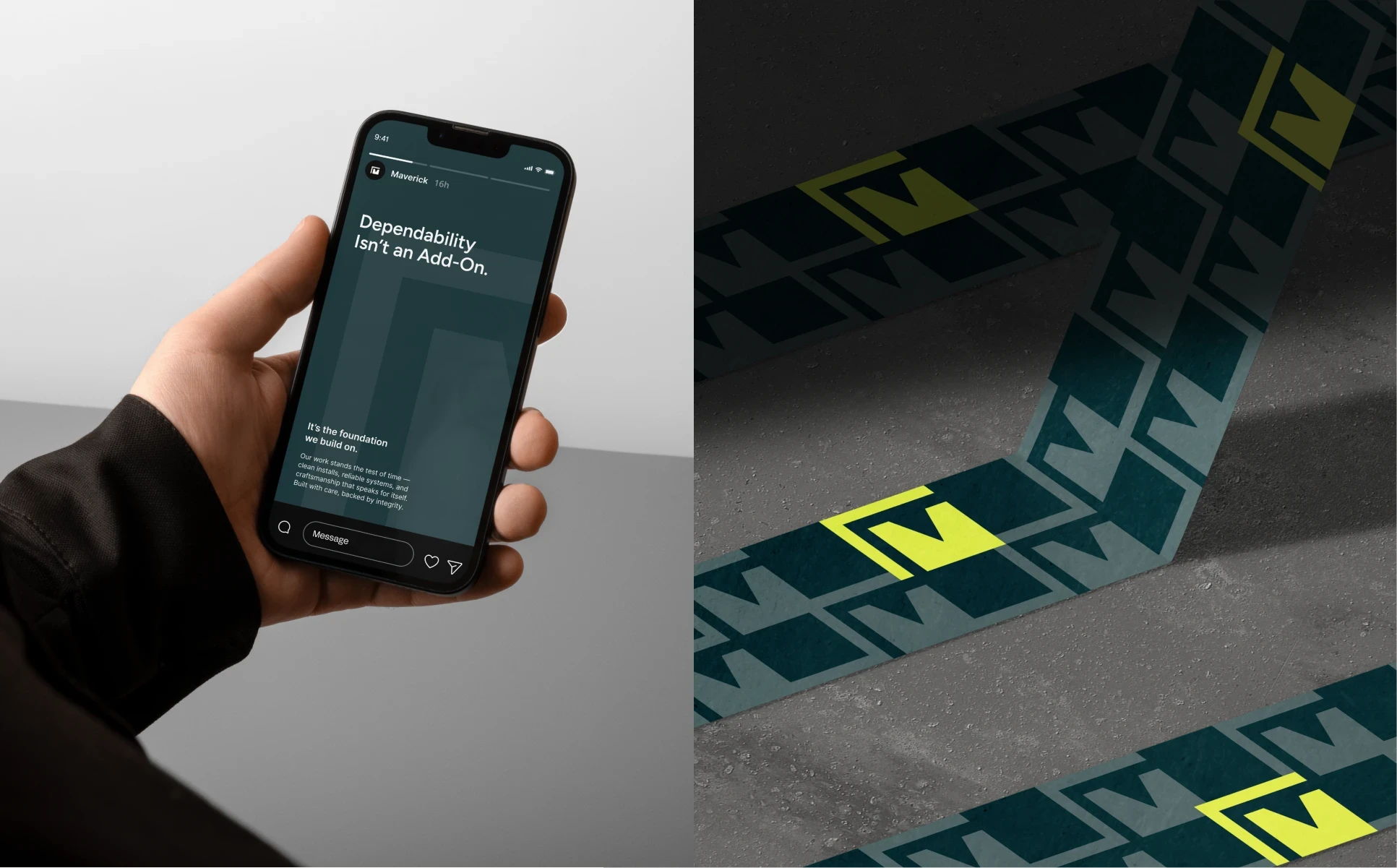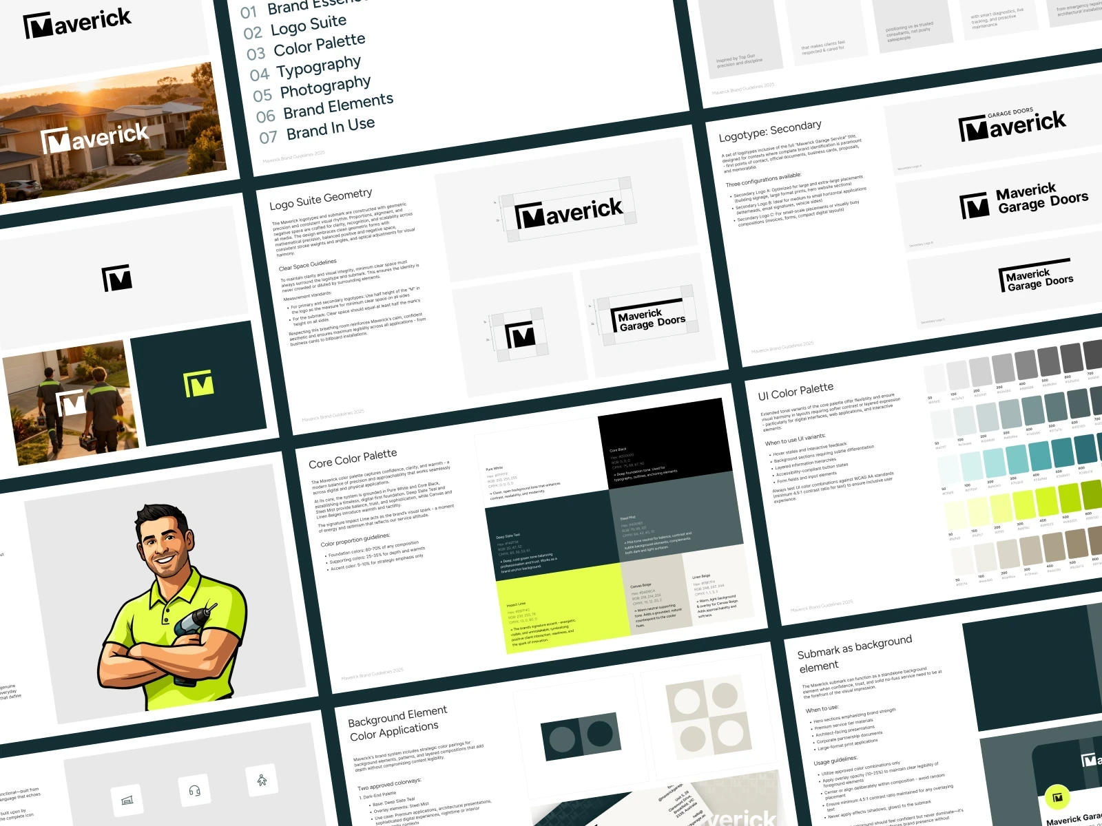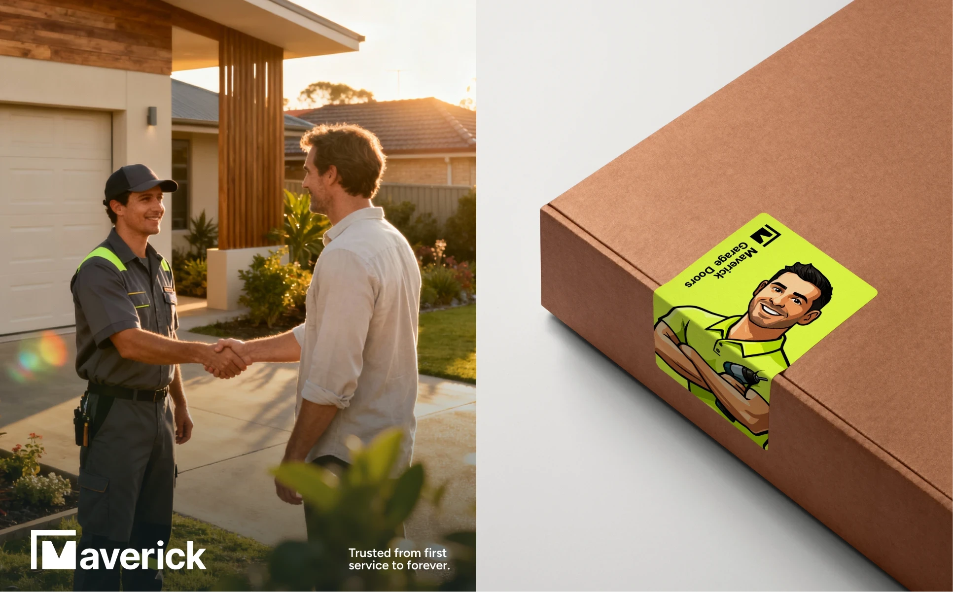 Strategic brand identity for Maverick Garage Doors, redefining trust in the service industry with precision, professionalism, and human warmth.