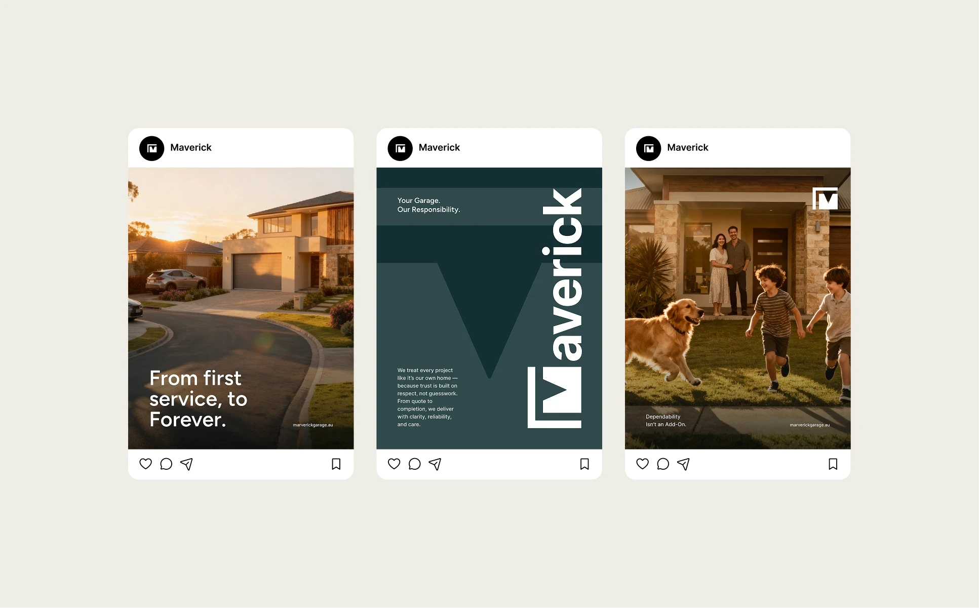 Maverick Garage Doors is a new-generation garage door company operating across Victoria, Australia. In a category defined by generic visuals and little differentiation, Maverick set out to do things differently - building a service brand rooted in precision, professionalism and genuine human warmth.