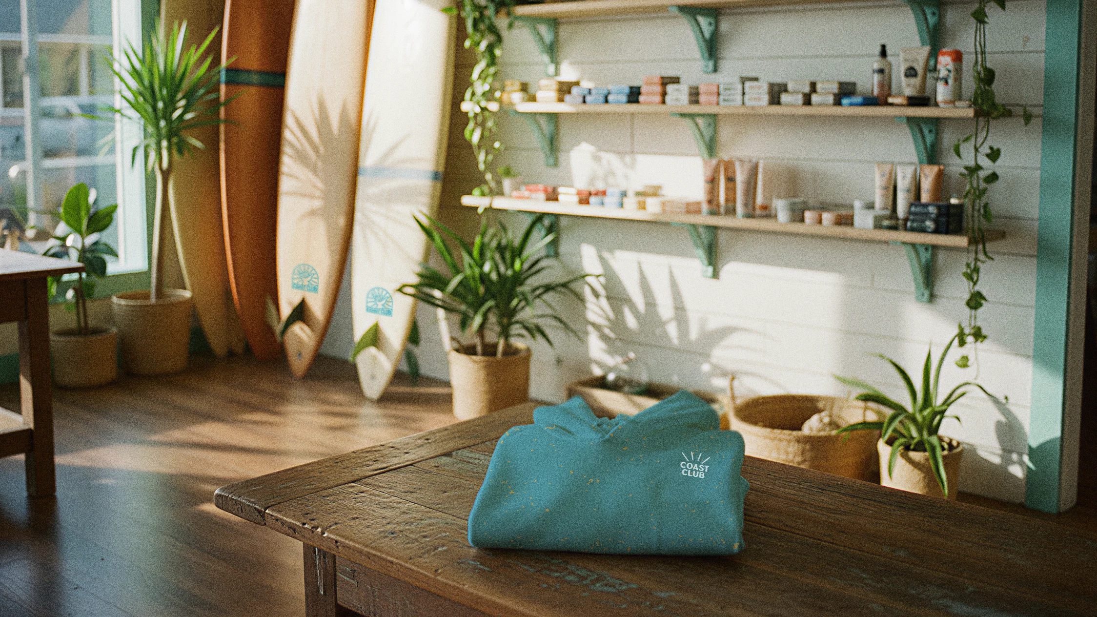The concept began with the shaka hand gesture combined with radiant sunbeams, symbolizing connection, good energy, and the warmth of coastal life. To explore how this idea could translate visually, I used