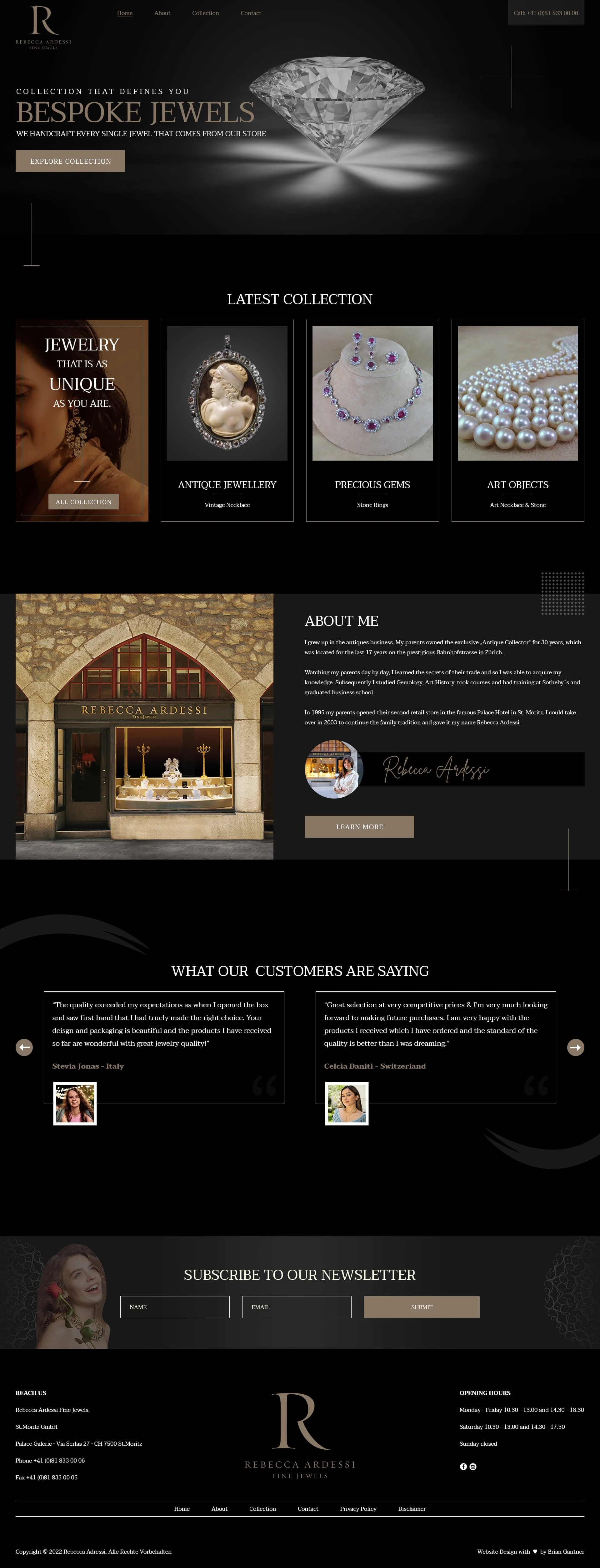 This project showcases a luxurious and modern Jewelry website created for a creative agency. The entire design was conceptualized and crafted in Adobe Photoshop, focusing on high-end aesthetics and user-centered layout. The website features a dark theme art direction that elevates the elegance of premium jewelry products. The final design was developed in WordPress using Elementor Pro, allowing pixel-perfect implementation with full responsiveness across devices.