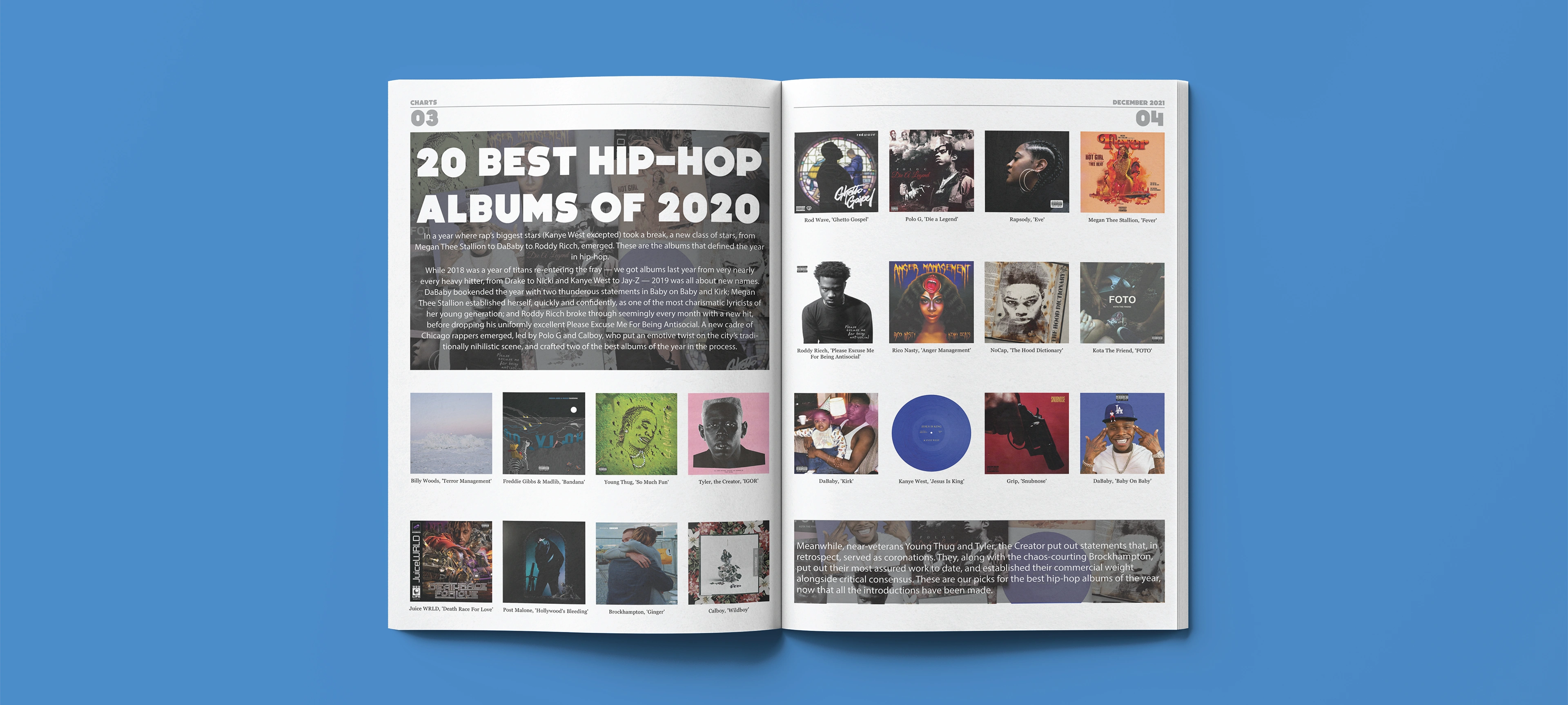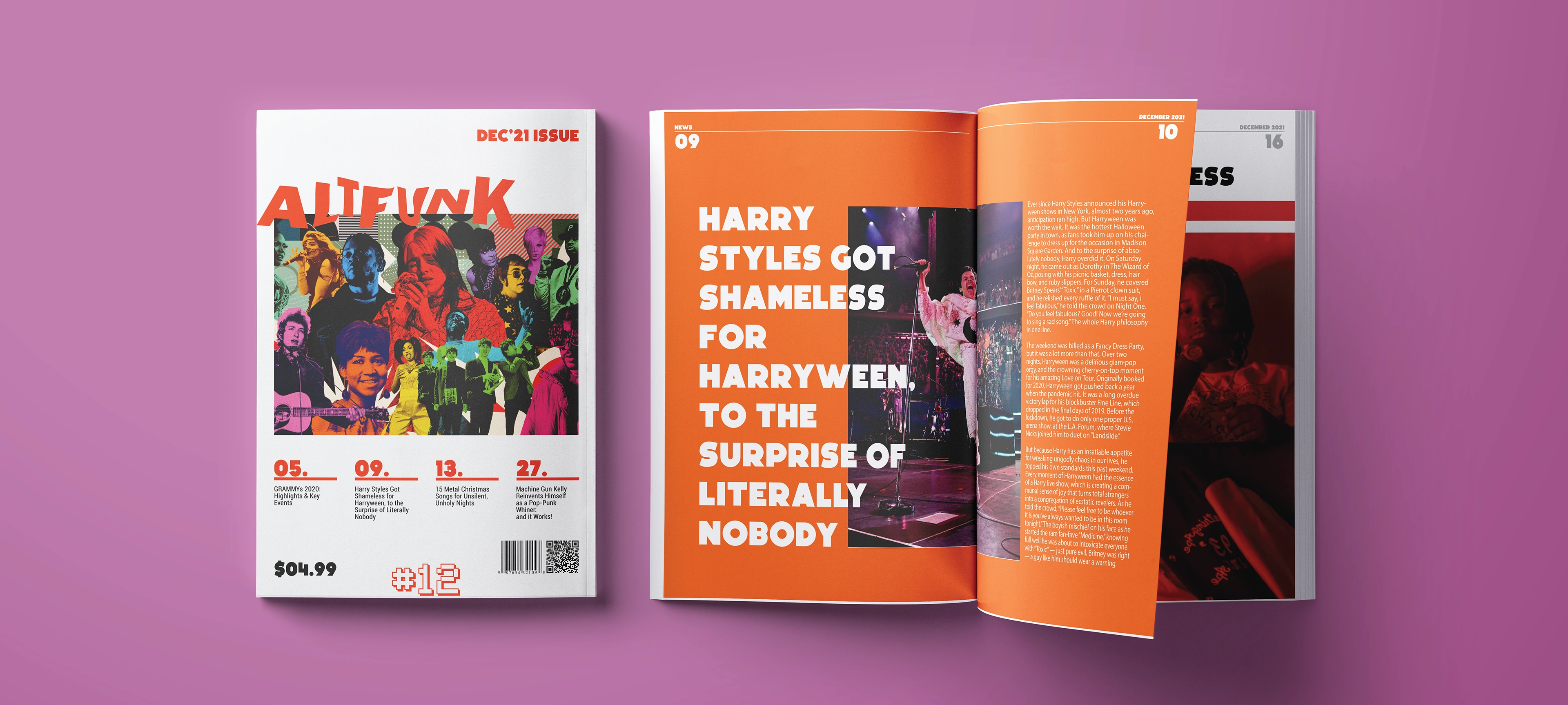 Self initiated music magazine concept brought to life using graphic design, copywriting and curation, mocked up into publication ready product.
