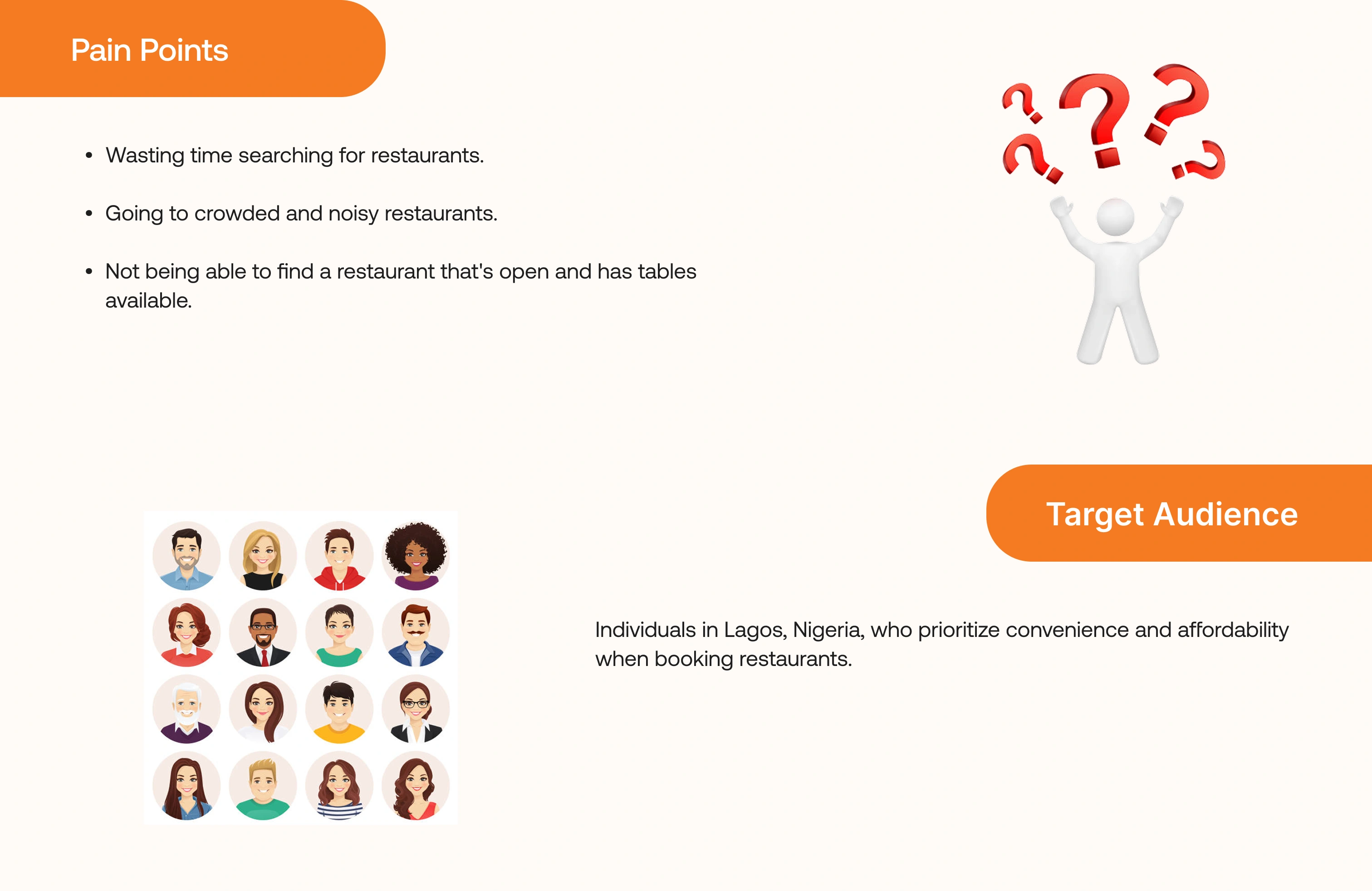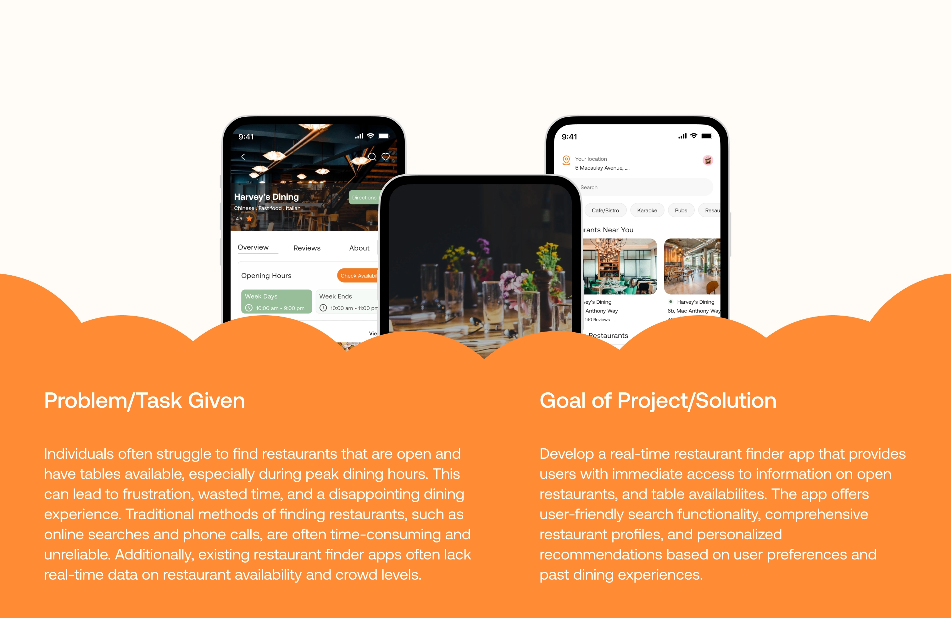 People often struggle to find restaurants that are both open and available, especially during peak dining hours. This leads to wasted time, frustration, and poor dining experiences. Existing solutions—online searches, reviews, and phone calls are slow and unreliable, while most restaurant discovery apps lack real-time visibility into availability and crowd levels.