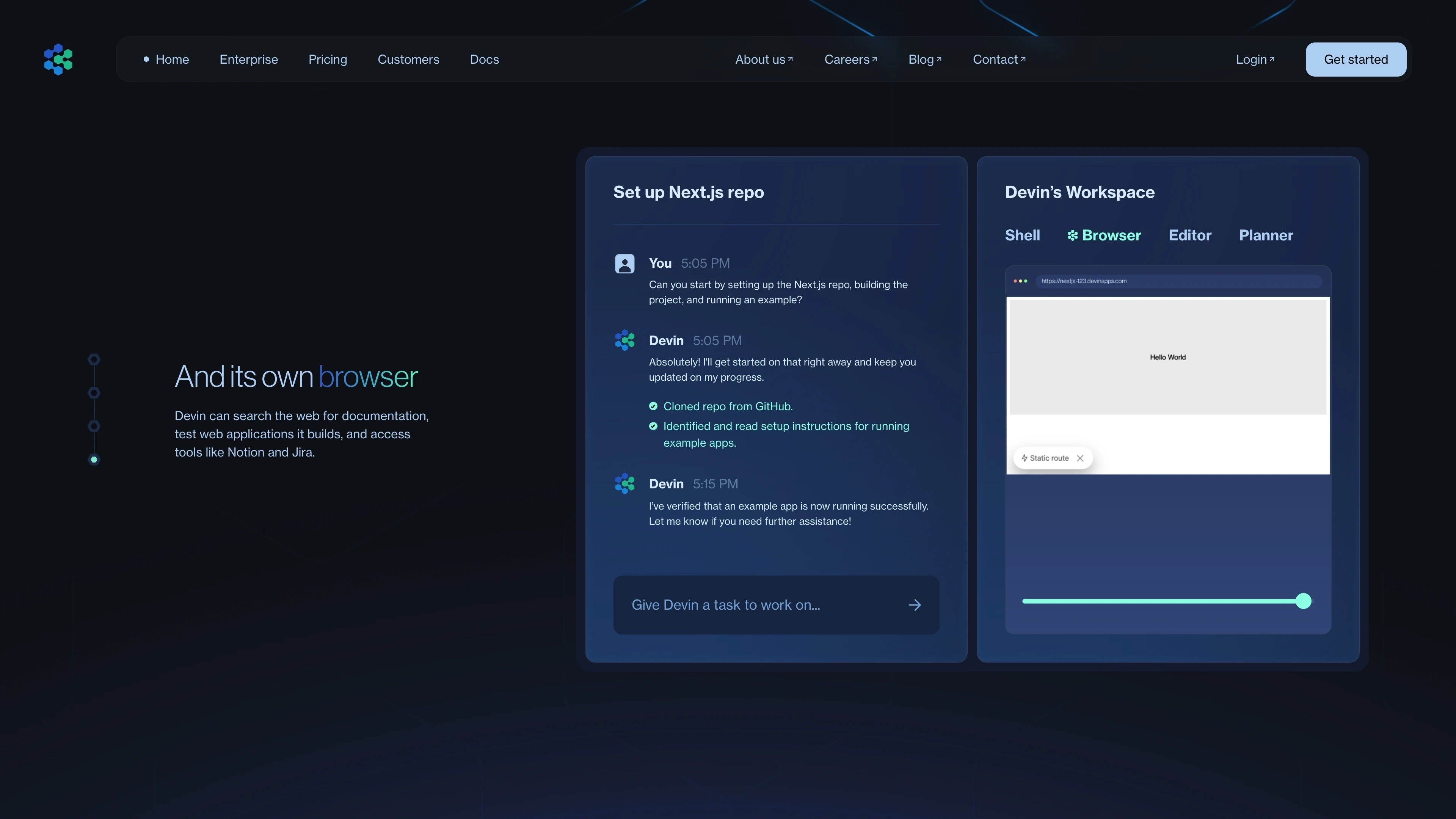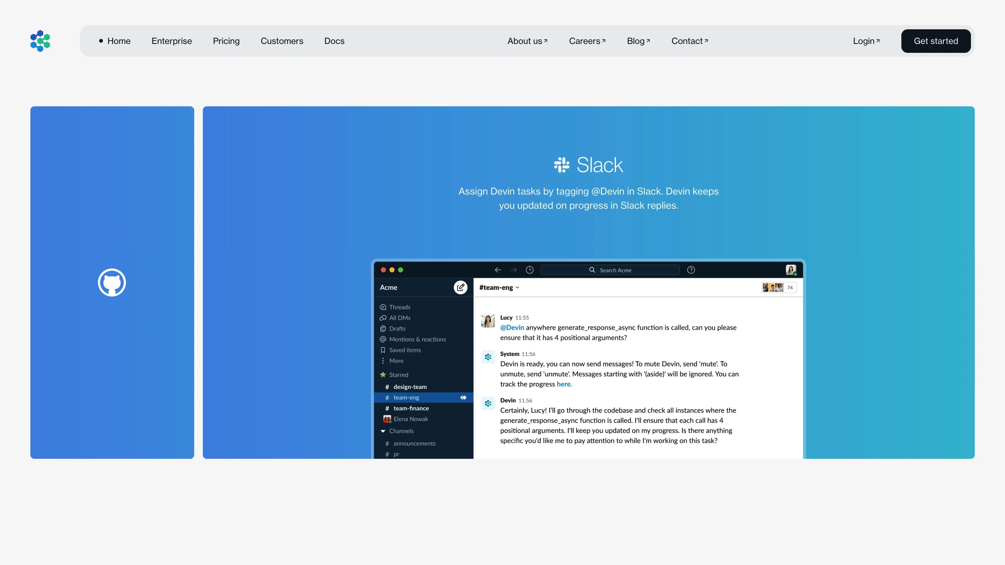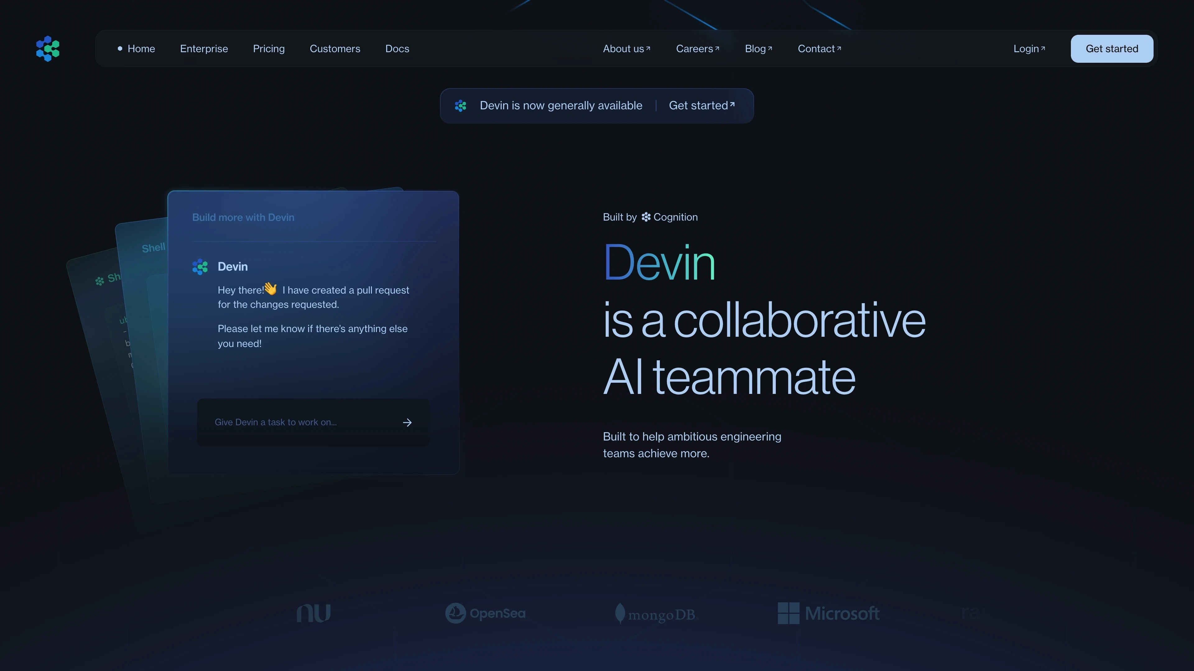 Designed a website for Devin, an AI teammate for engineering teams.