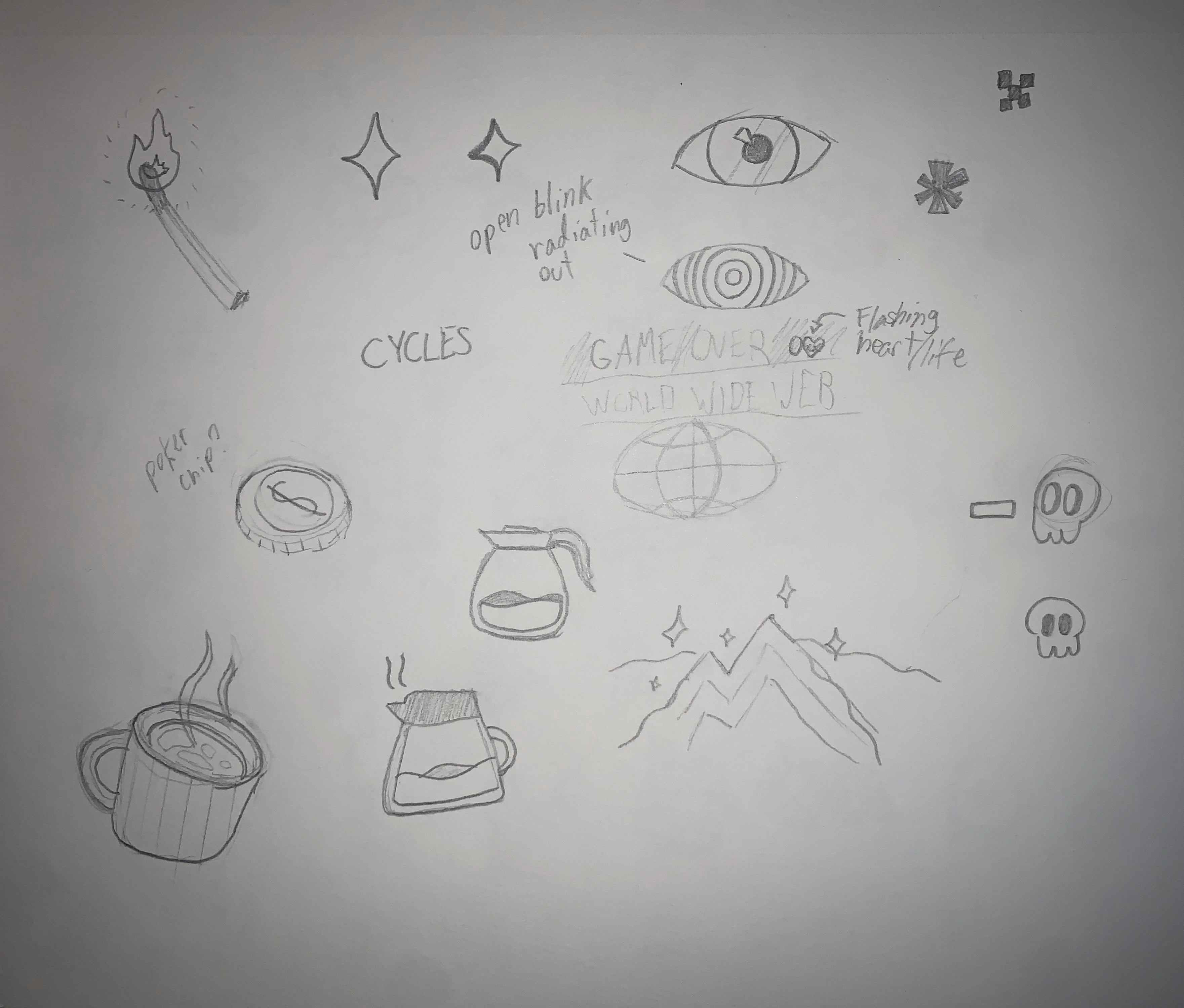 I started by sketching out ideas for what I wanted to put in the bento boxes. I knew I wanted to go for a retro Y2K style, so I kept that in mind while sketching.
