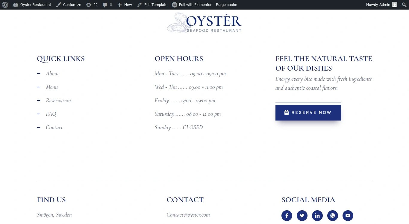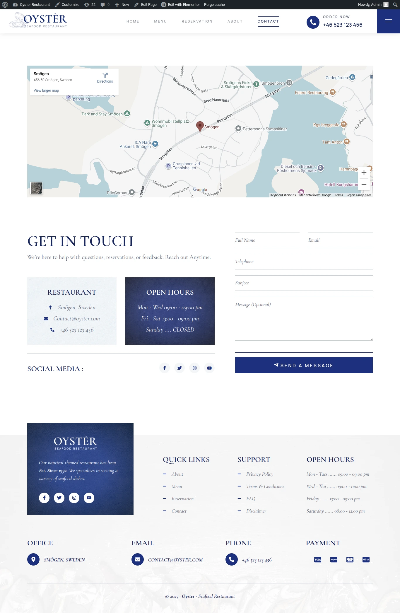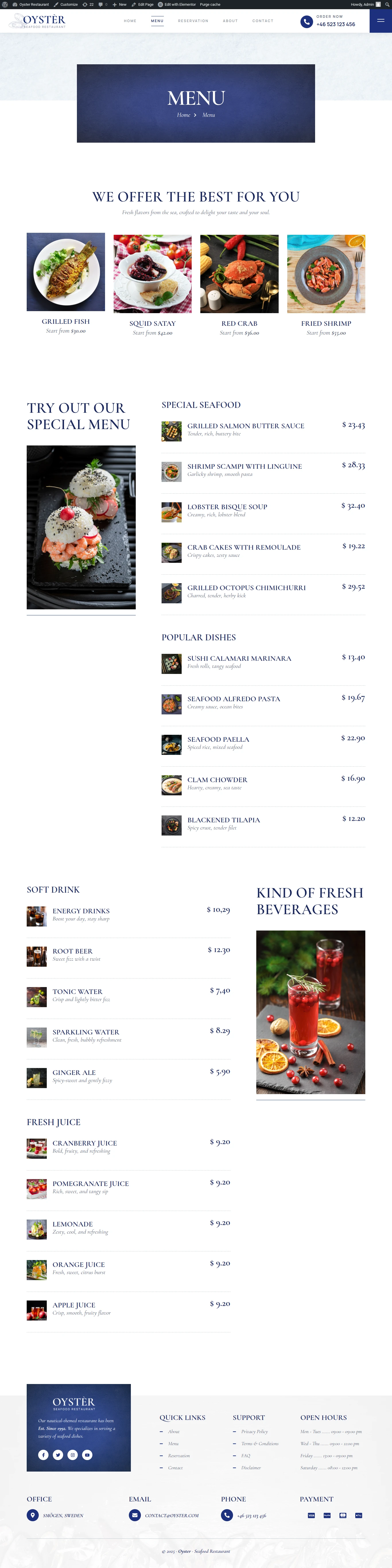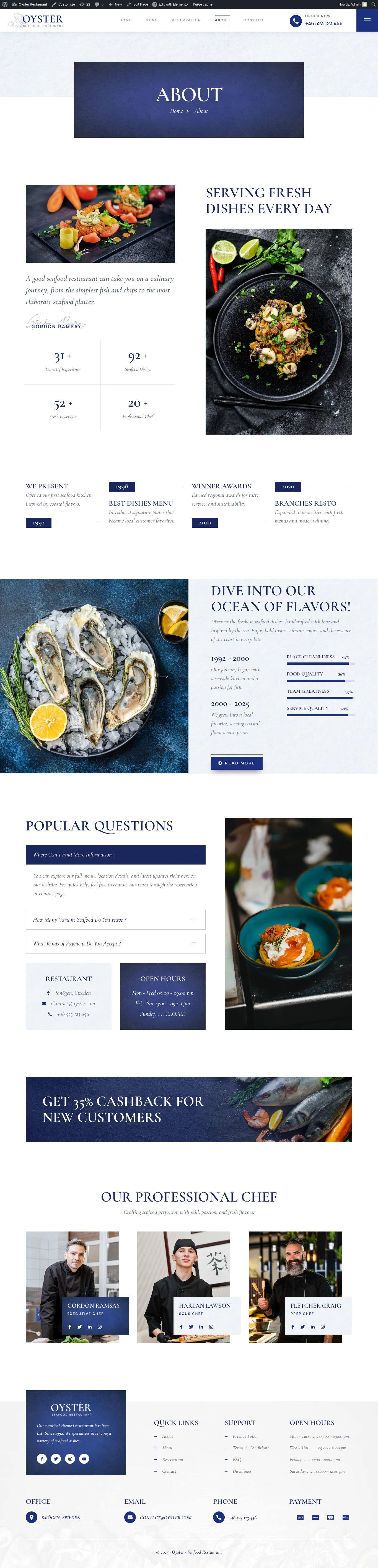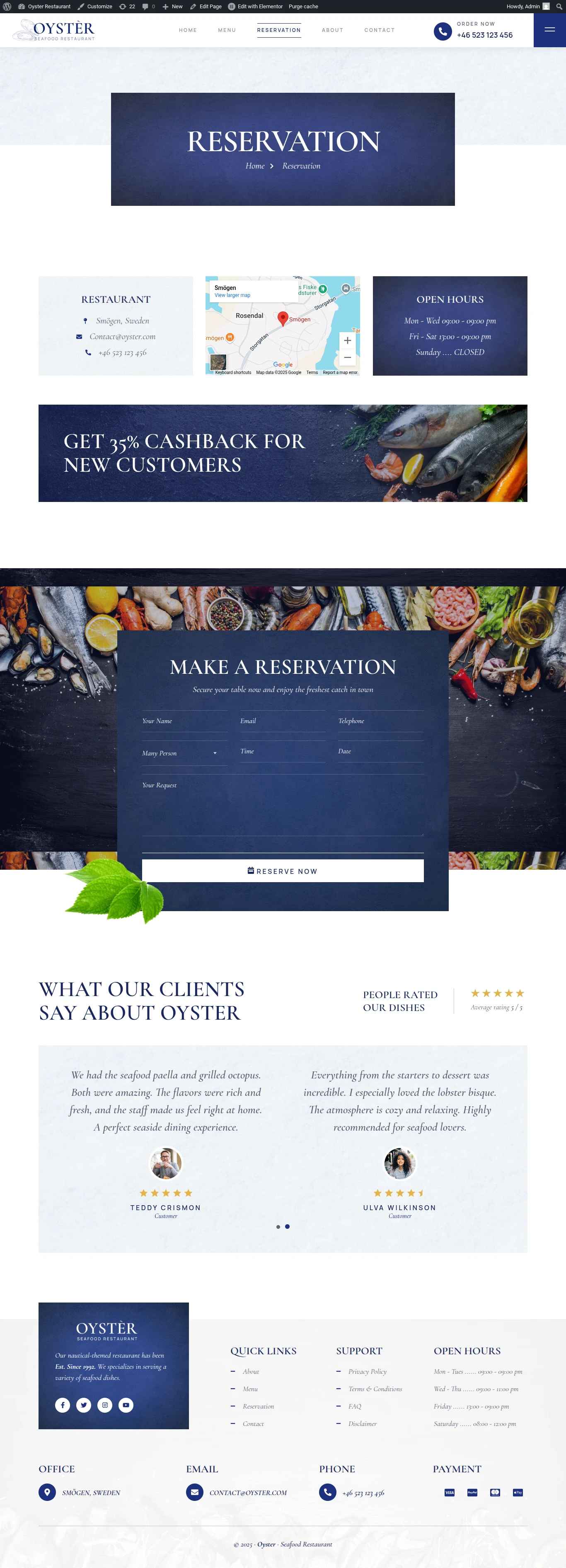 Oyster Seafood Restaurant website built with WordPress & Elementor. Fresh, elegant design featuring menus, reservations & testimonials.