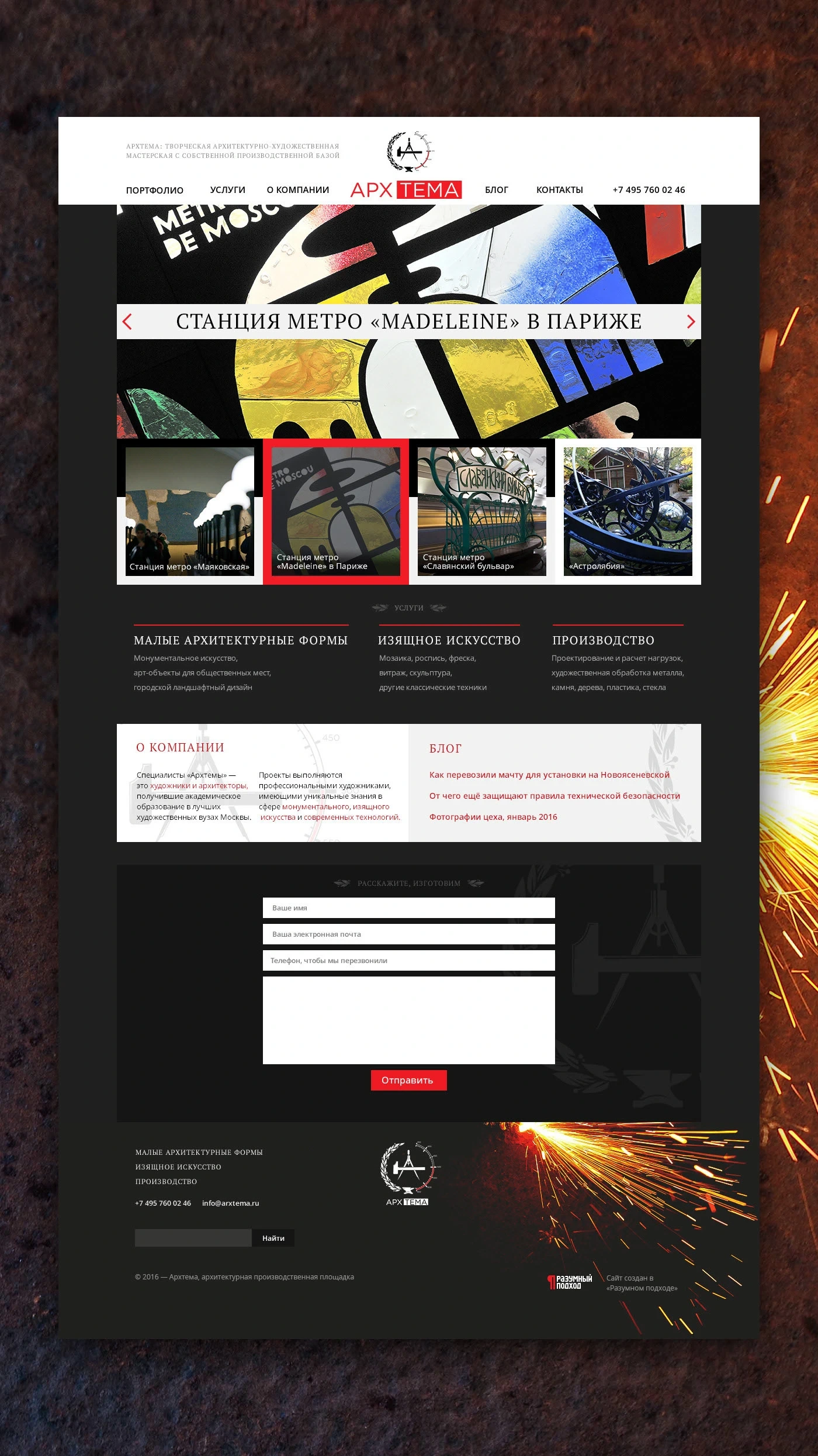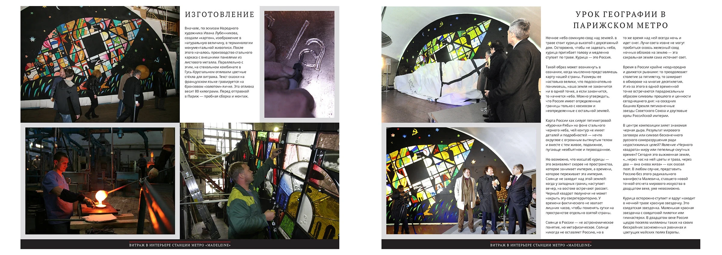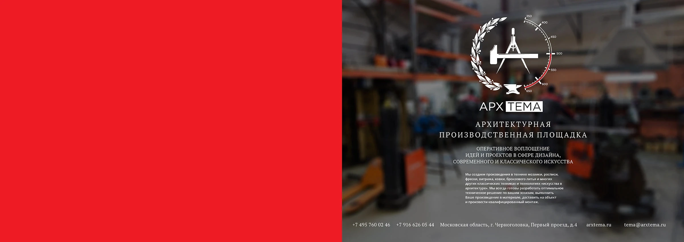 The workshop specializes in creating works in the technique of mosaic, painting, murals, stained glass, forging, bronze casting and many other classic techniques and technologies of "art in architecture". The workshop created the design of several metro stations and several major architectural structures in Moscow and Paris.