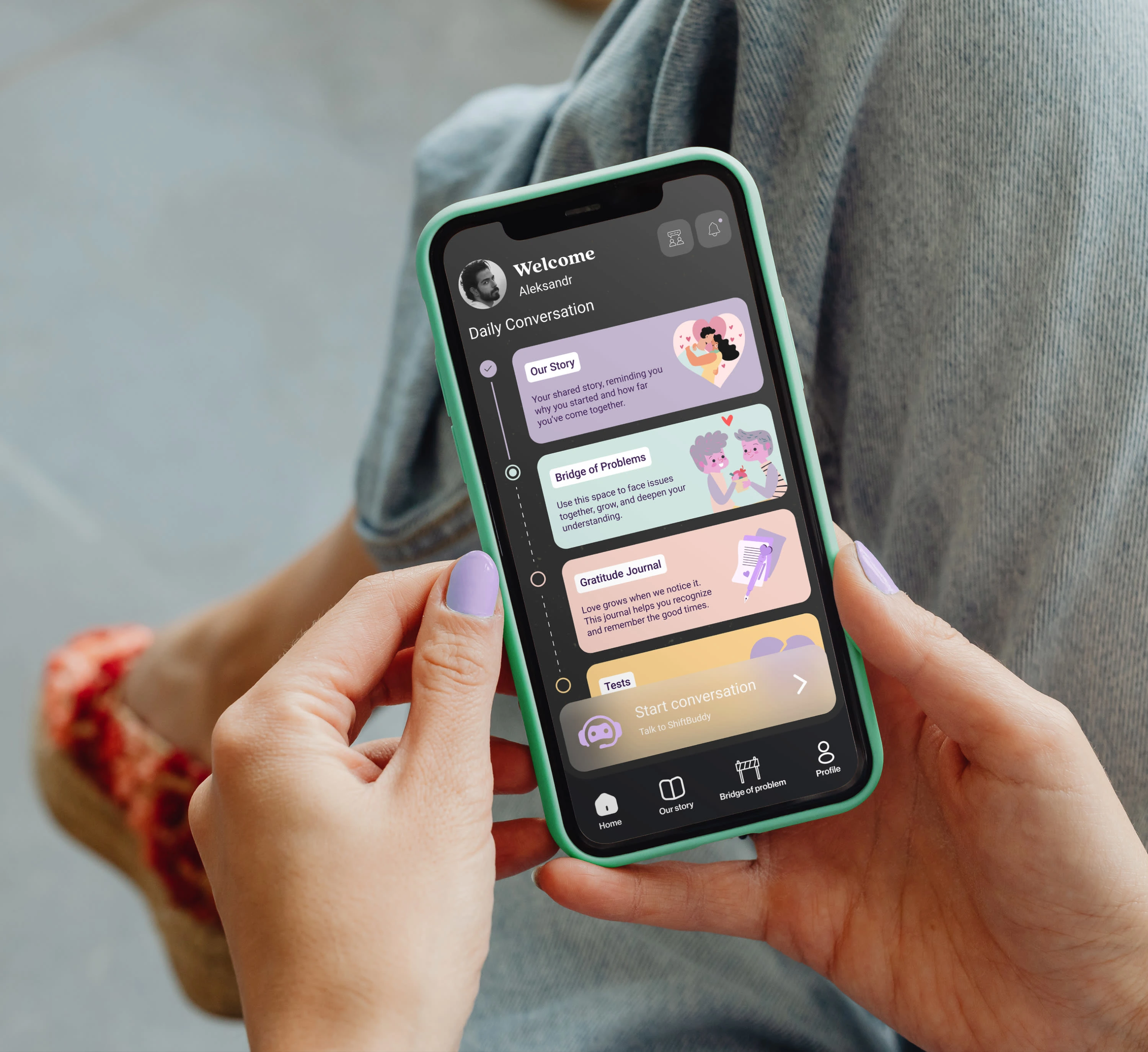 A guided communication tool that helps couples resolve conflicts constructively using reflective prompts and emotional mapping.