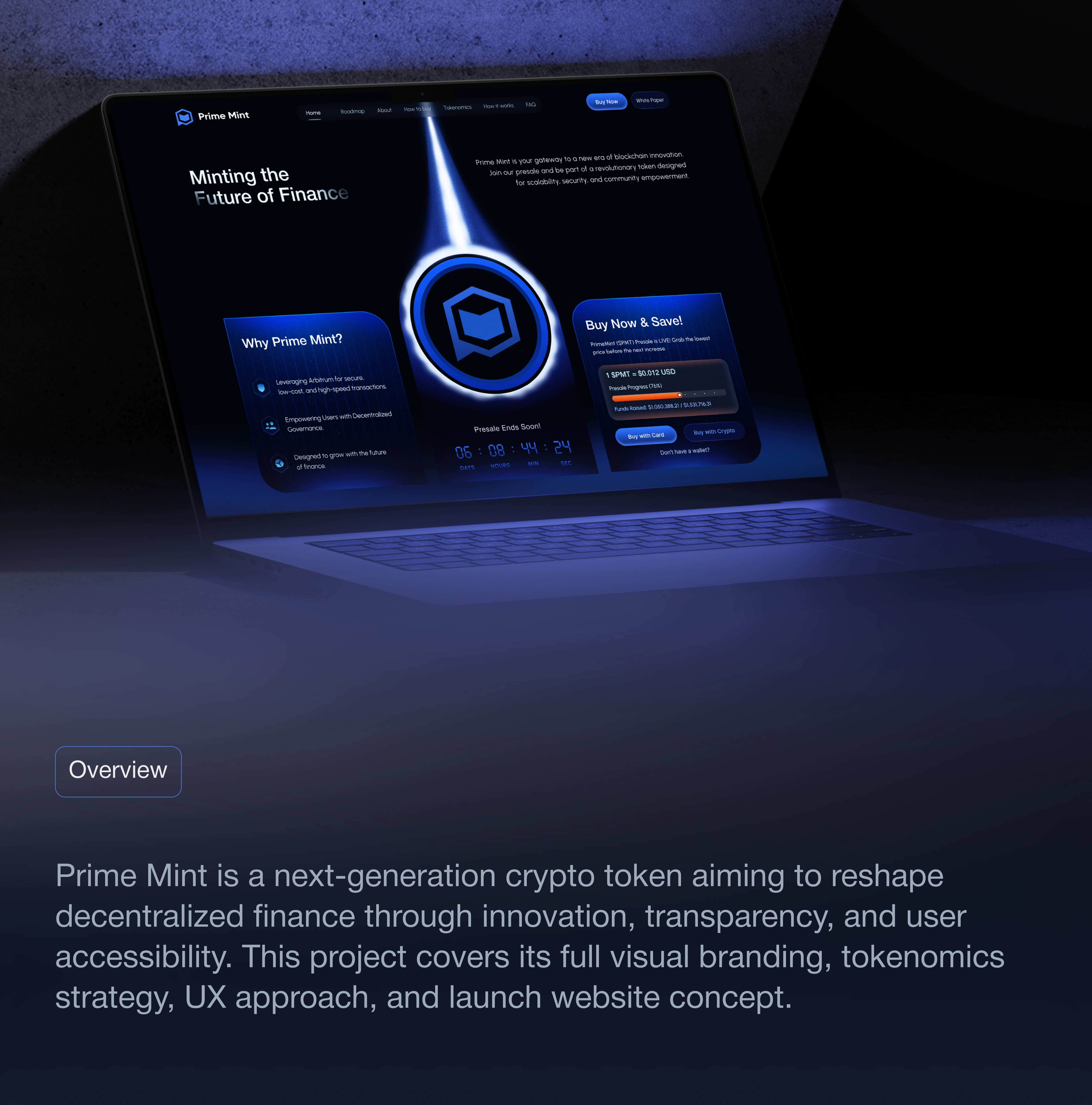 Prime Mint is a sleek token presale UI with real-time progress, simple buy options, and intuitive flow for seamless Web3 onboarding.